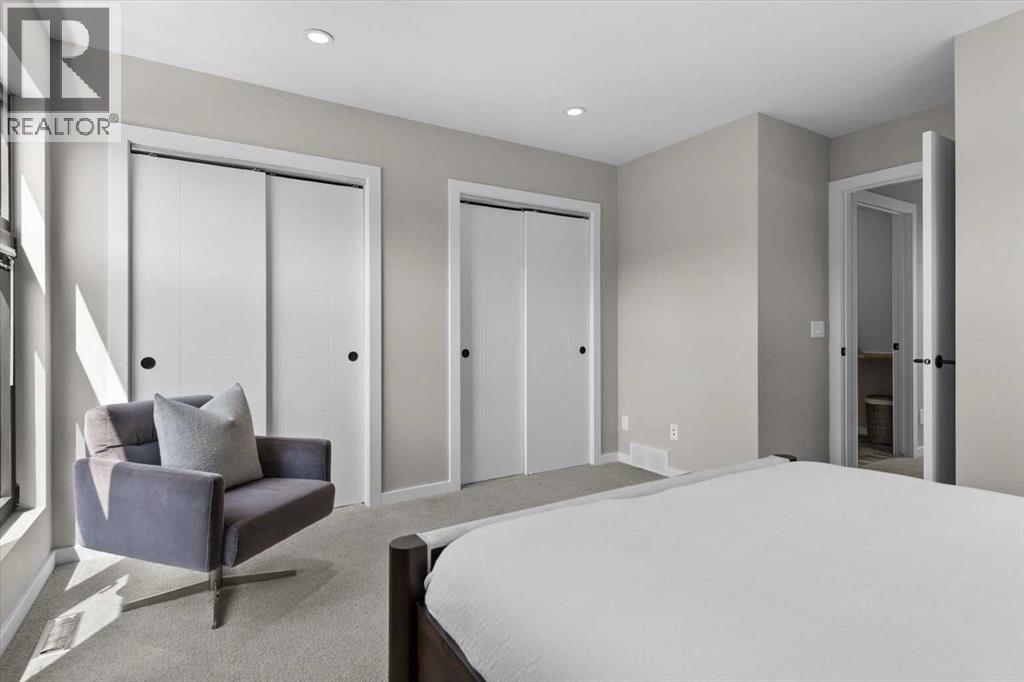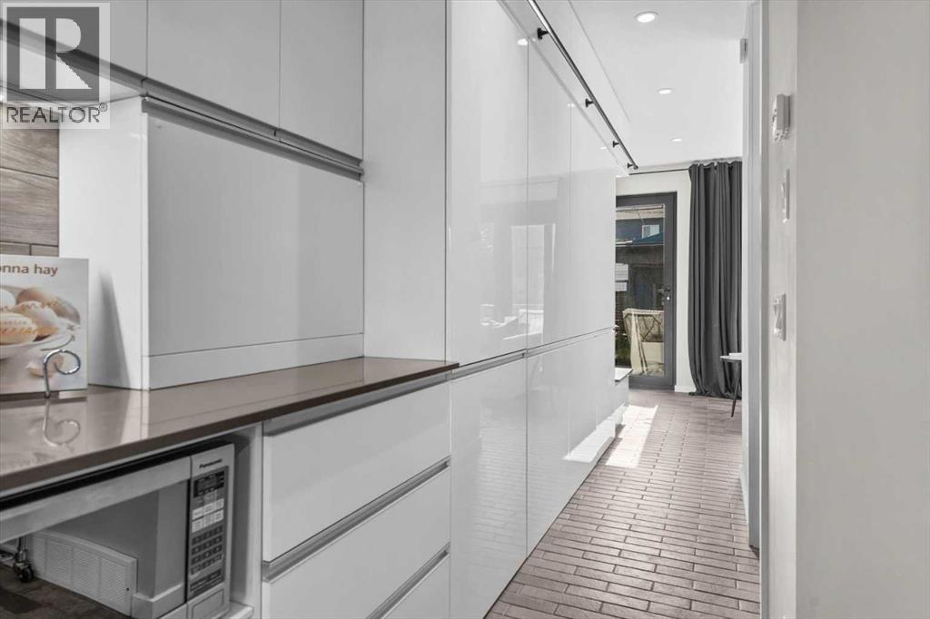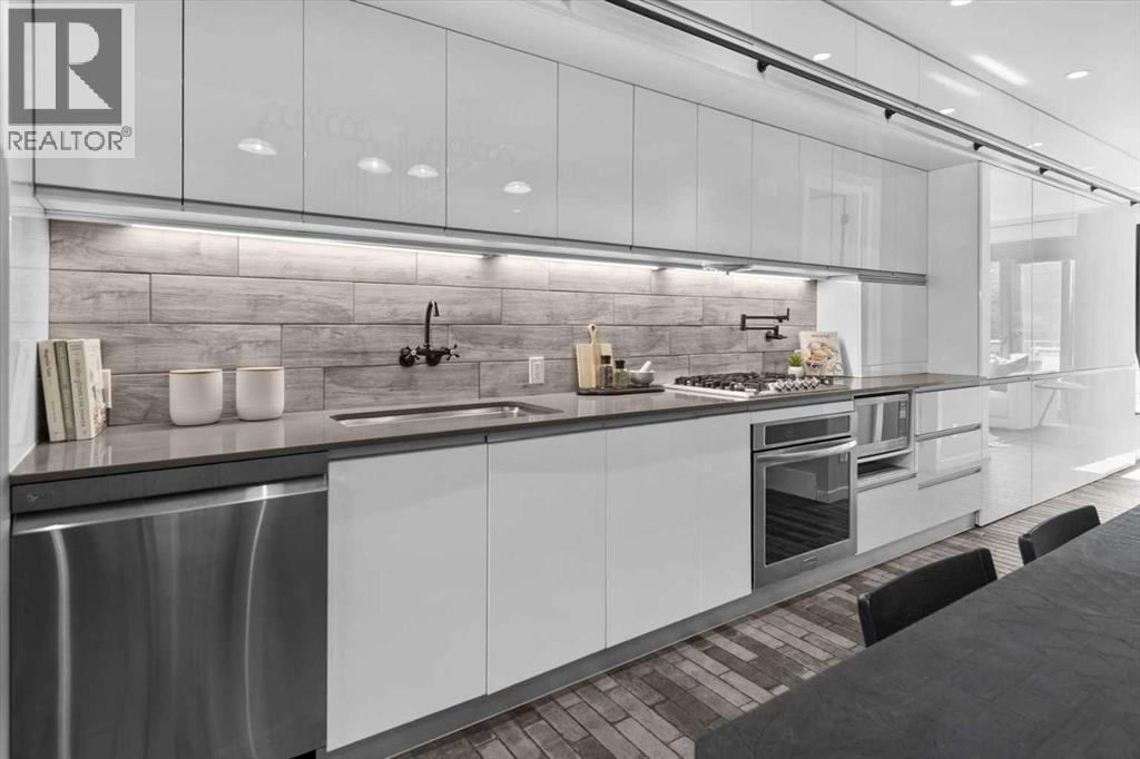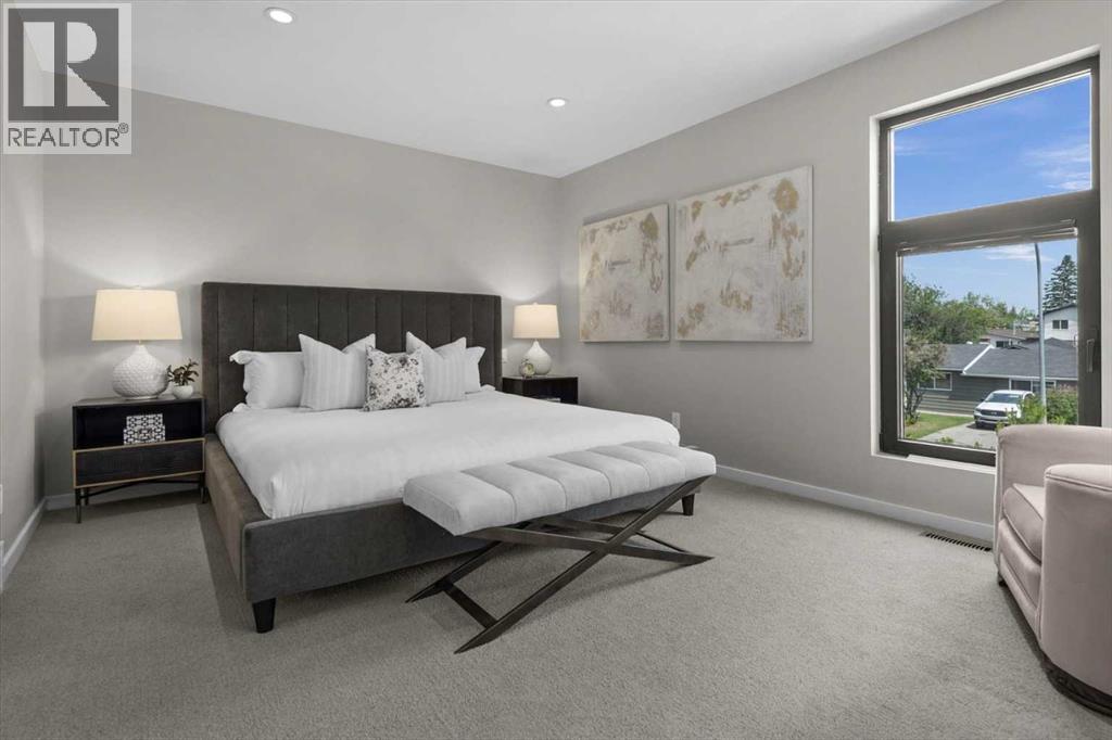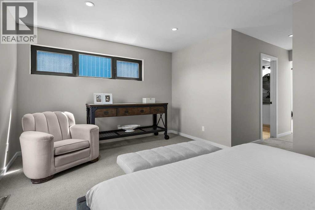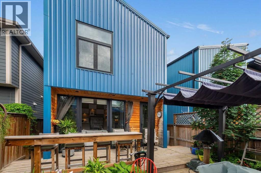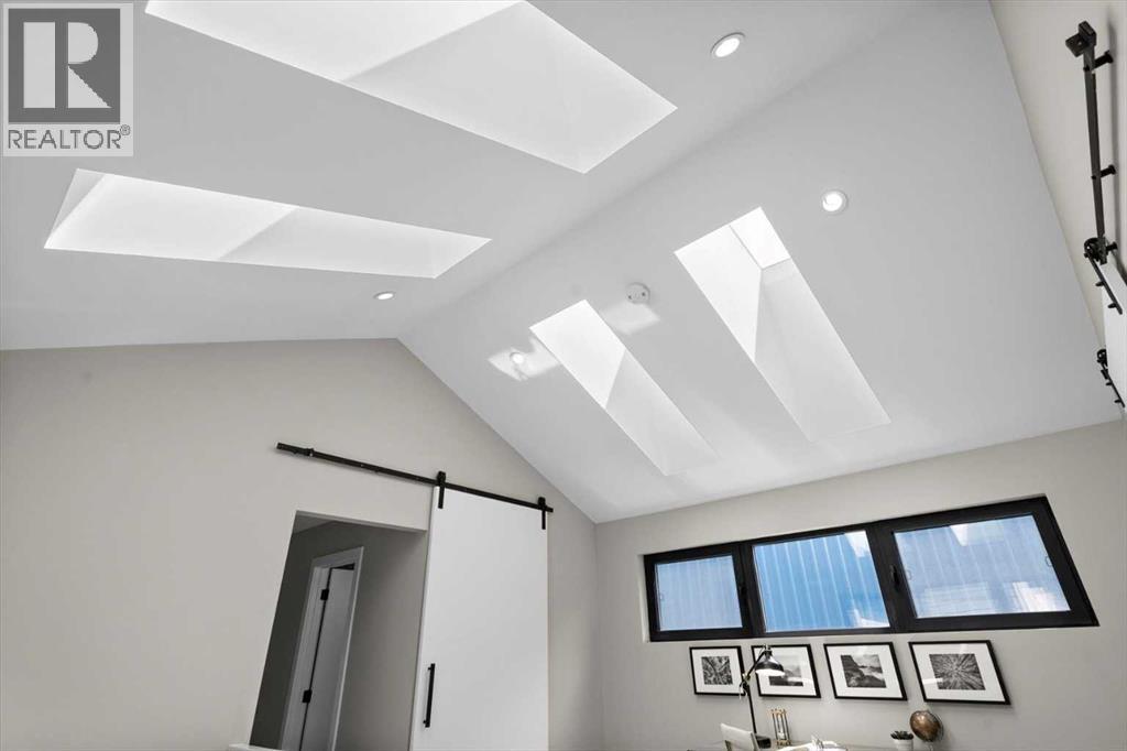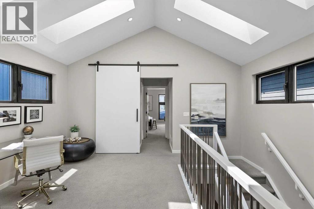 Distinctive Design in the Heart of BownessThis one-of-a-kind Bowness home showcases exceptional attention to design and detail throughout. The open-concept main floor features soaring ceilings, tilt-and-turn windows, and a cozy living area with an electric fireplace (convertible to gas). The chef-inspired kitchen offers full-height German custom cabinetry, a library ladder for upper storage, a gas cooktop with pot filler, convection oven, and pull-out pantry—perfect for seamless entertaining.A versatile main floor room (ideal as an office, den, or guest room) opens to a charming “bijou courtyard” garden. A sleek European-style wet room bath completes the level.Upstairs, skylights flood the landing with light, leading to two spacious primary suites—each with its own ensuite—and convenient upper laundry.The fully developed basement offers heated concrete floors, a third bedroom, full bath, second laundry, and a large flexible space pre-plumbed for a kitchen and gas fireplace—ideal for a guest suite or recreation area.Outdoors, enjoy a beautifully landscaped multi-level garden with stylish planters, a bar area, and a unique entertaining nook within the double garage. An outdoor shower adds convenience after gardening—or for pampered pets! Too many features to list—this extraordinary home must be seen to be fully appreciated. Book your private showing today! (id:53676)