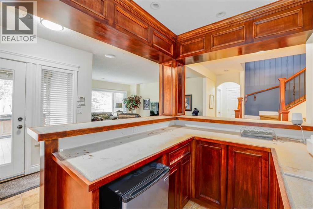 WELCOME TO YOUR DREAM BUNGALOW LOADED WITH A TON OF GOODIES, BACKING ON TO BEAUTIFUL CRYSTAL RIDGE GOLF COURSE IN OKOTOKS, ONLY A QUICK DRIVE FROM THE BUSY CITY OF CALGARY'. An exquisite custom built walkout bungalow nestled on an exquisite, landscaped lot, in a quiet long cul-de-sac backing west onto a parklike golf course. The home has been lovingly updated and maintained by the original owners. The 1617 square foot main floor features an open, spacious design with vaulted ceilings, tigerwood hardwood floors, and picture windows. The living/family room enjoys a marvelous stone fireplace for cozy evenings, a lovely dining area for formal times, the gourmet kitchen is a chef's dream come true, with a gas range, a built-in oven, warming drawer, loads of cupboards, granite counters, walk in pantry, plus a fantastic huge island perfect for entertaining. The primary bedroom features a walk-in closet and five piece ensuite complete with a therapeutic air bathtub. Eating area has access to the wrap around deck to enjoy the privacy, lovely landscaping, and the evening sun. For convenience, the laundry and powder room are on main floor. Lower walkout level features a family/games/theatre room for enjoyable fun times. There are an additional two bedrooms, an office/den, three-piece bathroom, as well as space for a gym. The patio area is magnificent with a hot tub, and a few steps away, a cozy firepit. THE NUMEROUS EXTRAS INCLUDE UNDERGROUND SPRINKLER SYSTEM, ALLURE OUTDOOR LIGHTING, WATER LINES IN GARAGE AND ON DECK, CENTRAL AIR, ALL CLOSETS WITH AUTO LIGHTS, SURROUND SYSTEM UPSTAIRS IN LIVING & DINING ROOM, KITCHEN, ENSUITE, AND UPPER & LOWER DECK, MOVIE SYSTEM DOWNSTAIRS WITH SUB-WOOFER, AND NATURAL GAS OUTLETS ON BOTH UPPER & LOWER DECKS. RECENT UPGRADES INCLUDE, ROOF SHINGLES (2017), FRIDGE WITH WATER & ICE (2023), DISHWASHER (2024), MICROWAVE (2024), VACU FLO (2023), NEW IN-SLAB HEATING PUMP (2024), 75 GALLON HOT WATER TANK (2024), NEW BLINDS (2023). THE ANN UAL HOA GIVES ACCESS TO CRYSTAL SHORES LAKE JUST BLOCKS AWAY. DO NOT MISS VIEWING THIS LOVELY HOME, IT IS PRECIOUS!!! (id:53676)