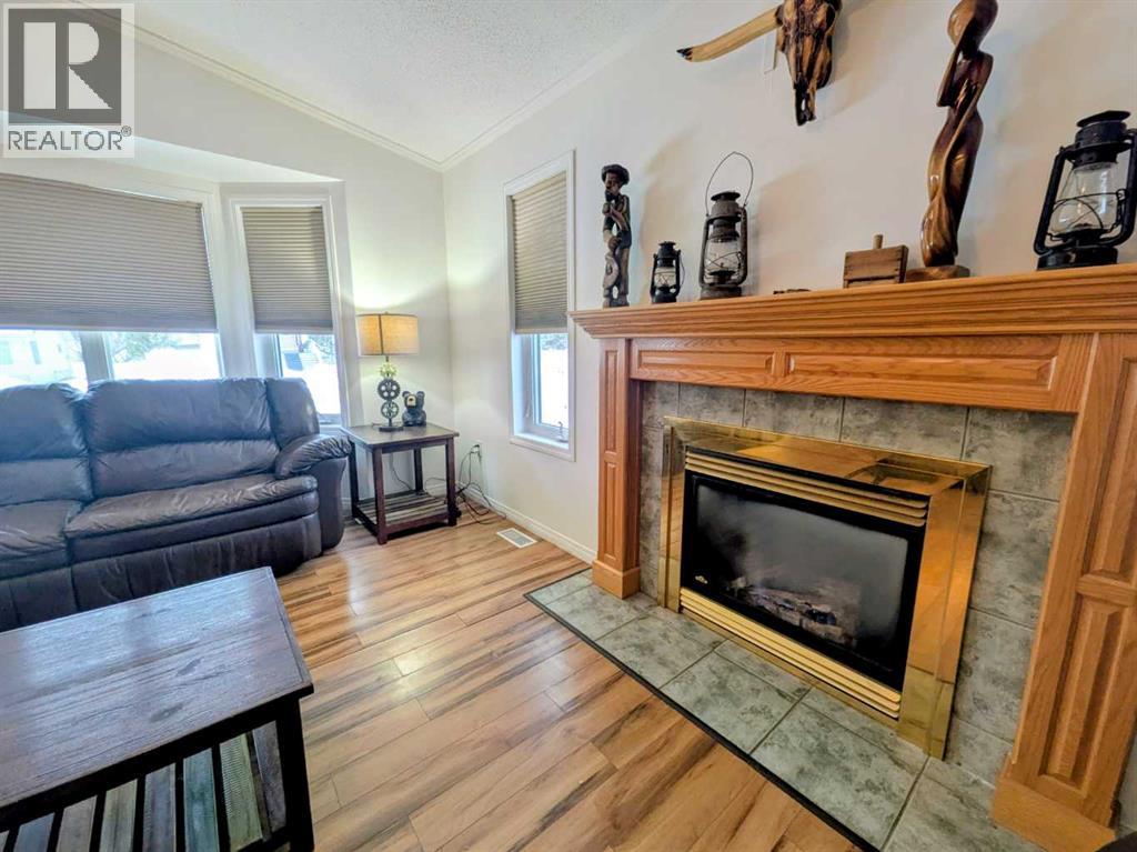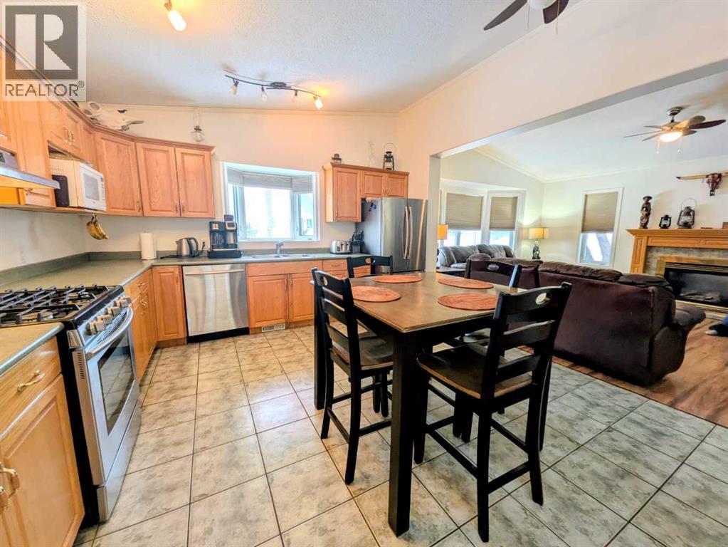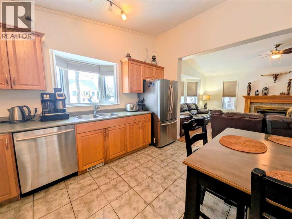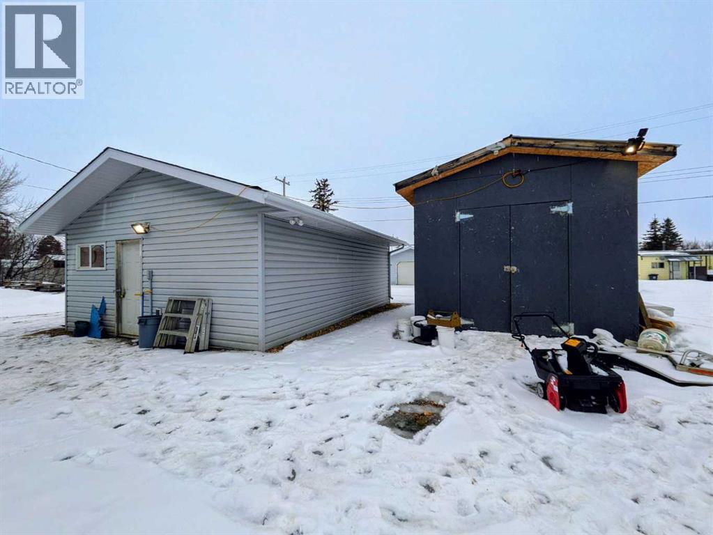 Welcome home to this beautifully maintained bungalow in the heart of Rycroft. This inviting home offers 3 bedrooms and 2 bathrooms, including a private primary suite with ensuite, providing comfort and functionality for families or downsizers alike. The open-concept living space is filled with natural light and showcases soaring ceilings, large bay windows, and a cozy gas fireplace, perfect for both everyday living and entertaining. The kitchen is thoughtfully designed with ample oak cabinetry, stainless steel appliances, and a gas stove, making it as practical as it is charming. Recent updates add peace of mind and value, including a shingled roof replaced just 2 years ago, a hot water tank replaced 3 years ago, and a newly paved driveway completed 2 years ago. Situated on a beautifully landscaped double lot, this property offers plenty of outdoor space to enjoy. Additional features include a 12’ x 16’ shed and a 20’ x 24’ powered garage, ideal for storage, hobbies, or parking. This is a wonderful opportunity to own a move-in-ready home with space, updates, and small-town charm. A must see property in a community you’ll love to call home. (id:53676)