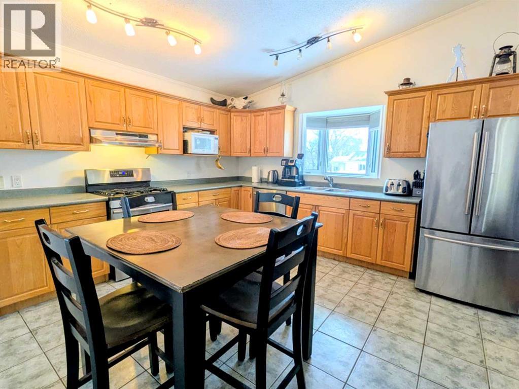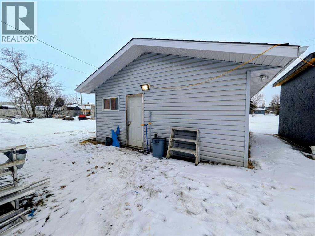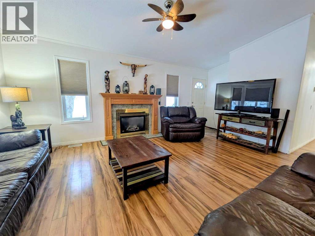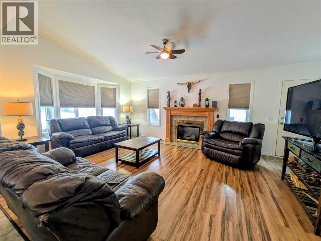 Welcome home to this beautifully maintained bungalow in the heart of Rycroft. This inviting home offers 3 bedrooms and 2 bathrooms, including a private primary suite with ensuite, providing comfort and functionality for families or downsizers alike. The open-concept living space is filled with natural light and showcases soaring ceilings, large bay windows, and a cozy gas fireplace, perfect for both everyday living and entertaining. The kitchen is thoughtfully designed with ample oak cabinetry, stainless steel appliances, and a gas stove, making it as practical as it is charming. Recent updates add peace of mind and value, including a shingled roof replaced just 2 years ago, a hot water tank replaced 3 years ago, and a newly paved driveway completed 2 years ago. Situated on a beautifully landscaped double lot, this property offers plenty of outdoor space to enjoy. Additional features include a 12’ x 16’ shed and a 20’ x 24’ powered garage, ideal for storage, hobbies, or parking. This is a wonderful opportunity to own a move-in-ready home with space, updates, and small-town charm. A must see property in a community you’ll love to call home. (id:53676)