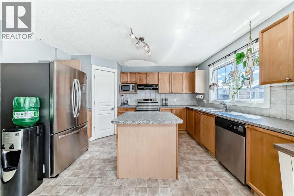 Welcome to this beautiful 2-storey family home, ideally located on a quiet street just steps from schools, transit, and shopping amenities. This home offers a thoughtful layout with both comfort and style in mind. The main floor features a warm and inviting living room anchored by an upgraded 3-sided gas fireplace shared with the bright dining area—perfect for cozy evenings or entertaining guests. The extended kitchen is functional and sunlit, boasting ample cabinetry, a central island, walk-in pantry, and a spacious nook ideal for everyday meals. Upstairs, you'll find a large primary bedroom complete with a unique 4-piece ensuite featuring a soaker tub, separate shower, and walk-in closet. Two additional generously sized bedrooms and a full main bathroom complete the upper level. The fully finished basement includes a large family room with laminate hardwood flooring, an extra bedroom, and large windows providing natural light—great for extended family, guests, or a home office setup. Enjoy the west-facing back deck and fully fenced yard, and a charming front veranda for morning coffee or evening relaxation. A double detached garage offers secure parking and extra storage. This home truly has it all—space, comfort, and location. Don’t miss your opportunity to make it yours! (id:53676)