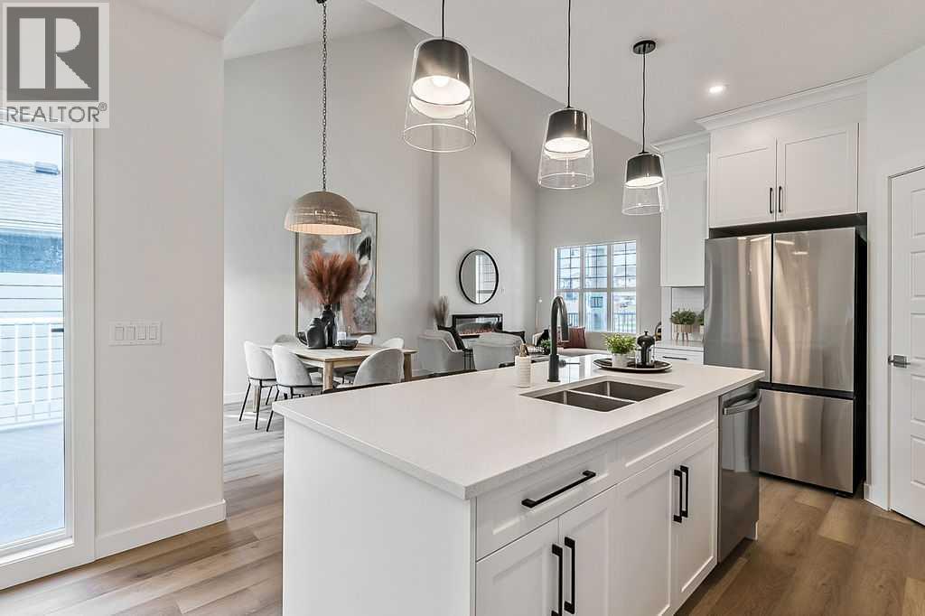 *** Brand New Villa-Style Home in Drake Landing***Discover modern living at its finest in this beautifully constructed villa-style home located in the sought-after community of Drake Landing. Key Features:Inviting Great Room: Step into an airy great room featuring soaring vaulted ceilings and luxury vinyl plank flooring. Large windows flood the space with natural light, creating a warm and welcoming atmosphere.Gourmet Kitchen: The stylish kitchen is a chef's dream, complete with white cabinetry, stunning quartz countertops, a huge island perfect for food prep and gathering, and a convenient walk-in pantry. Top-of-the-line stainless steel appliances are included, making it perfect for entertaining.Outdoor Living: A patio door leads from the kitchen to a private deck, complete with fencing for added seclusion, ideal for summer barbecues or morning coffee.Primary Suite Retreat: The spacious primary bedroom comfortably fits a king-sized bed and features a spa-like ensuite. Enjoy a luxurious large walk-in shower and an expansive closet with built-in shelves for optimal organization.Functional Layout: The second bedroom, ideally located near the front entrance, can easily serve as a den or home office. Adjacent is a well-appointed four-piece bathroom, as well as the laundry area conveniently situated on the main level.Completed Lower Level: Access the professionally developed lower level via a turned central stairwell. Here, you'll find a massive rec room, two generously sized bedrooms, and a full bath, offering plenty of space for family or guests.Garage and Additional Features: Enjoy the convenience of a double attached garage, providing ample storage and protection from the elements. The unique front covered deck offers serene views facing a nearby park, perfect for relaxation.This remarkable home combines stylish design with practical living, making it a must-see in the vibrant Drake Landing community. Don’t miss the opportunity to make this beautiful villa- style home your own! (Photos are representative) (id:53676)