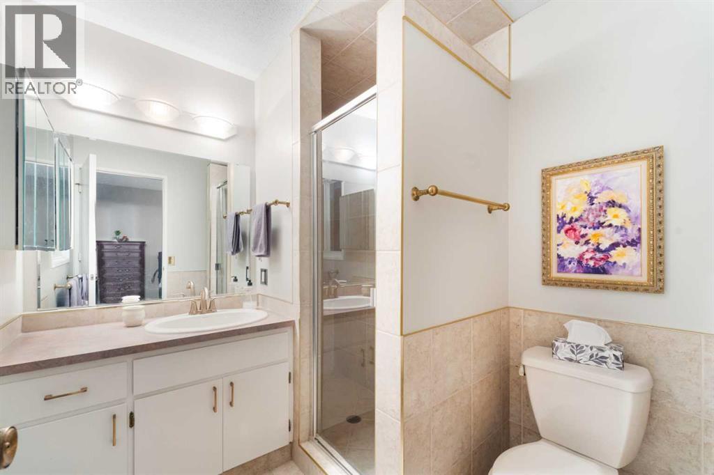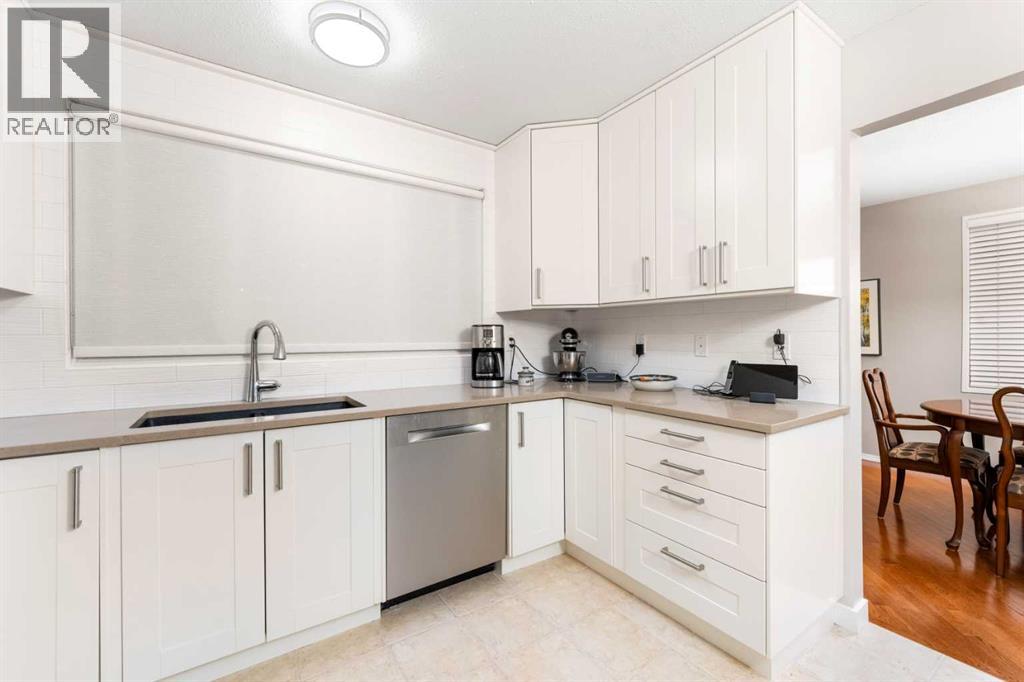 Look no further; this wonderful fully updated home has been meticulously maintained over the years; shows pride of ownership throughout. The home is fully developed with a total of four generous size bedroom with 2.5 baths, two wood burning fireplaces, and best of all Central Air Conditioning for year round comfort. This home sits on a massive hillside lot (0.26 acres) with views of Nose Hill Park and close to many greenspaces and pathways within the neighborhood, a spacious patio and manicured landscaping. This family oriented community has all levels of schools and offers quick and easy access in and out of the community; only 10 minutes into downtown and 10 minutes to the airport. As you enter this home the foyer is generous in size; unlike the traditional foyer of a bi-level that you are cramped for space. The main floor has wonderful original hardwood throughout, three bedrooms and the primary bedroom has a wonderful three piece ensuite. There is also laundry room on the main floor for your convenience. The living room and dining area is very spacious; ideal for hosting large family gatherings. The kitchen is fully updated with a large center island featuring Caesarstone Quartz counter tops. and is complimented with gorgeous stainless steel appliances that includes a gas stove and two built-in ovens with the abundance of custom made cabinets. Entering the lower level there is a cozy family room with a wood burning fireplace. The lower level features a fourth bedroom and there is also a two piece bathroom. Two entrances to the heated oversized double garage which you will absolutely love. Don't miss out on this fabulous opportunity to live in one of Calgary's best community; call for your private viewing today. (id:53676)