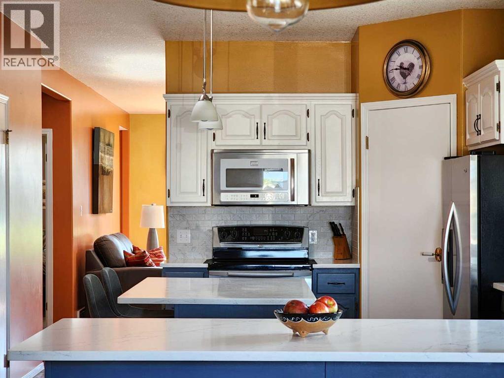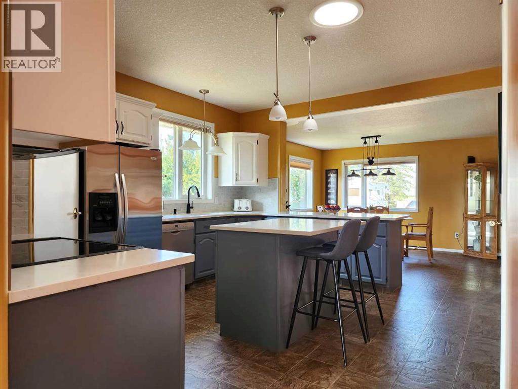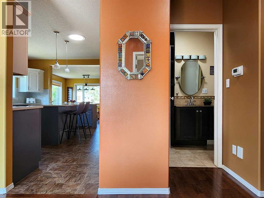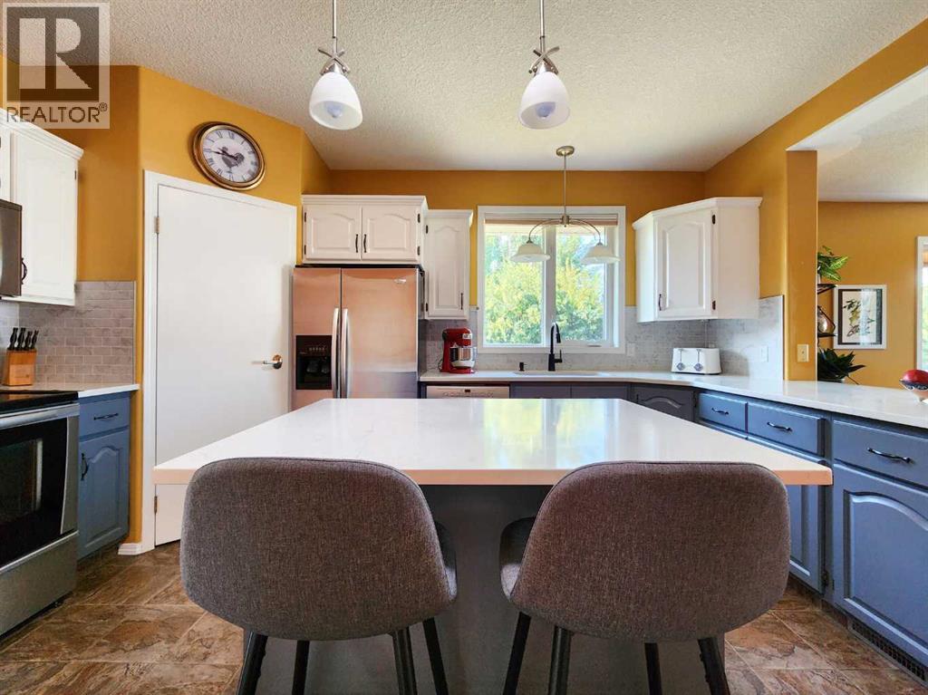 Rare Opportunity to Own Nearly Half an Acre Within Town Limits!Discover your own slice of heaven in this beautifully updated 3-bedroom, 2-bath split-level home, offering approximately 2,200 sq ft of comfortable living space on a generous 0.48-acre lot—a rare opportunity that combines space, privacy, and the convenience of town water and sewer.Extensively renovated in 1997, this home features a newly constructed upper level and basement, a completely redone exterior, and full re-insulation with energy-efficient 2x6 walls. Major systems—including plumbing and electrical—were also upgraded, offering peace of mind for years to come. The majority of windows have been updated for energy efficiency and natural light—along with the added benefit of three solar tube skylights that fill the home with soft, natural light.Step onto the covered front deck and enter a welcoming foyer that leads into a sun-drenched living room with hardwood floors and warm, inviting character.The kitchen was fully renovated in 2020, showcasing quartz countertops, upgraded appliances, stylish hardware and fixtures, a center island, tile backsplash, and a large walk-in pantry—blending modern functionality with elegant design.The bright dining area connects seamlessly to an office space, followed by a flexible hobby room —perfect for a sewing , craft space, kids playroom, workshop, additional office, or bedroom . A convenient main-floor laundry area leads to the backyard patio, making everyday living and entertaining effortless.A bedroom and a 3-piece bathroom complete the main floor.Upstairs, you'll find a private primary suite and an additional spacious bedroom, along with a beautifully updated 4-piece bathroom (2017) featuring a jetted tub for your end-of-day retreat.The lower level offers a spacious 480 sq ft recreation room with a cozy gas fireplace—ideal for family gatherings, movie nights, or game-day hosting. This area also provides the potential for a fourth bedroom, if ne eded.Outside, the home features a 31' x 23' oversized double garage that’s heated, insulated, and drywalled—perfect for vehicles, storage, or a workshop. The expansive yard includes a green house , large garden area, underground sprinklers, and abundant room for kids, pets, and outdoor living.The back patio is a true private retreat—enhanced with privacy screens and surrounded by established perennial plants, creating a tranquil, low-maintenance oasis.This is a rare opportunity to enjoy space, comfort, thoughtful updates, and municipal services—all in a prime in-town location. (id:53676)