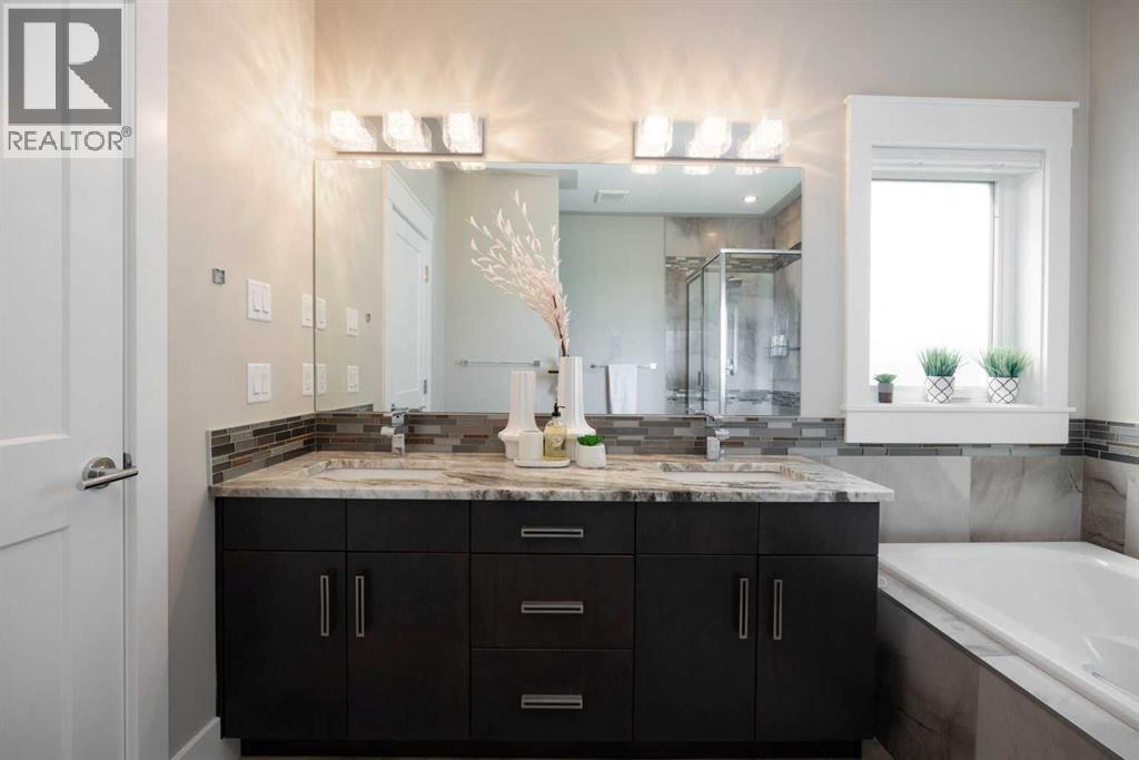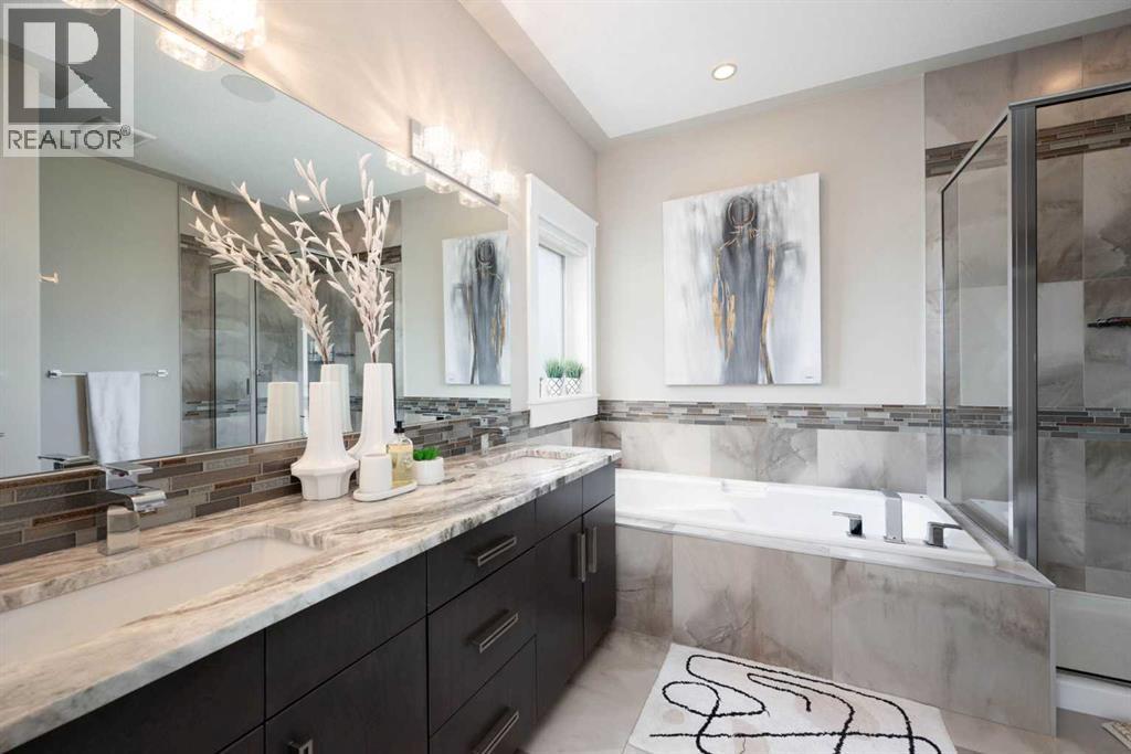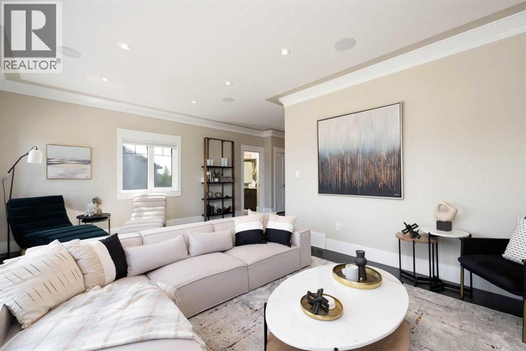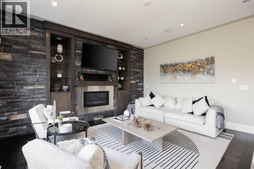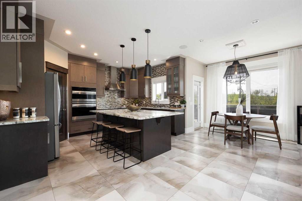 THE ULTIMATE DREAM HOME AWAITS YOU - Imagine pulling into your driveway - the sunset is casting a golden glow on this former Oil Barons Dream Home — this home is STUNNING! The Design is curated by the Melissa Hartigan Design Team, ready for you to simply pack your bags and move right in. Tucked against a lush greenbelt and boasting 4,293 square feet of exquisitely appointed living space, this residence is the epitome of luxury, elegance and seamless functionality at every turn. Step through the grand front doors into a soaring foyer, where rich hardwood floors and custom ceiling details set the tone for sophisticated gatherings. To your left lies a formal dining room, its dramatic trim and designer modern lighting inviting your closest friends to unforgettable dinner parties. Ahead, the chef’s dream kitchen awaits: a sprawling granite-topped island, floor-to-ceiling cabinetry, stainless steel appliances and a corner pantry, all bathed in natural light from expansive windows. The adjoining breakfast nook overlooks the serene backyard —- a perfect stage for morning coffees or afternoon homework sessions. The main level unfolds effortlessly. French doors reveal a dedicated home office, finished in built-in millwork and warmed by pot lighting — ideal for remote work or creative pursuits. A full bathroom, thoughtfully placed off the hallway, serves both home and guests, while a stylish laundry room boasts custom cabinetry, a utility sink and elegant tile floors. Glide up the sleek glass-railed staircase to find four spacious upstairs bedrooms. Your Primary bedroom suite is nothing short of an oasis: panoramic greenbelt views from your private balcony, a spa-inspired ensuite with dual vanities, a tile-surround soaking tub, a walk-in shower and an organizer’s dream walk-in closet. A second 5-piece bathroom and a stunning bonus room — a stone-accent gas fireplace and oversized windows — complete this level, offering flexibility for movie nights, yoga practice, or c hildren’s play. The fully legal basement suite redefines mortgage help. With its own chef-worthy kitchen, open family room, two large bedrooms and a chic bathroom, this space promises rental income or multi-generational living without compromise. Every detail has been considered: a heated double-car garage, central air, built-in speaker system, nine-foot ceilings, pot lights, night lighting in staircase and designer features that elevate each room. Function blends with opulence here, delivering a home that feels effortless yet extraordinary. This is more than a house — it’s your dream come to life. Call today for your private tour and step into a world where luxury meets livability, and every corner tells a story of impeccable taste and timeless design. Pack your bags—your new life begins now. (id:53676)