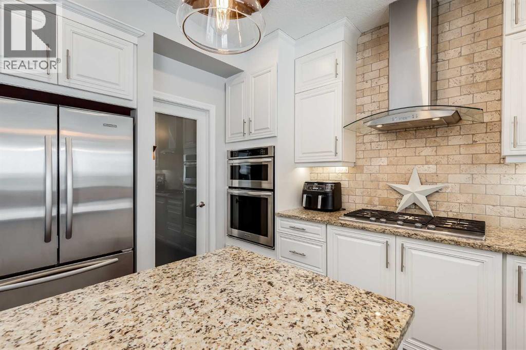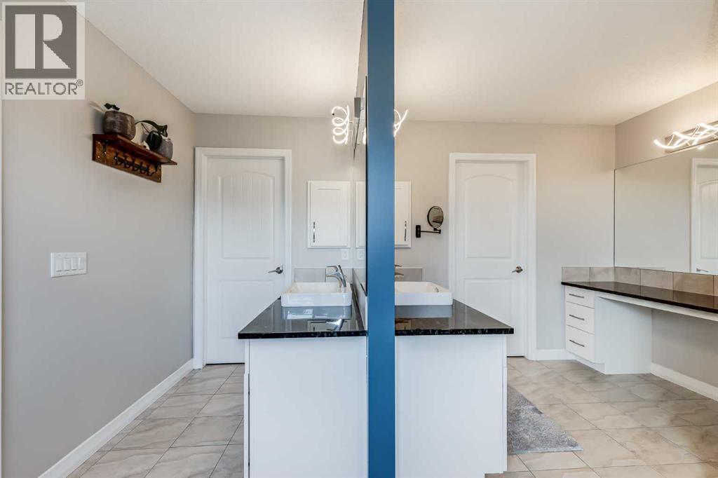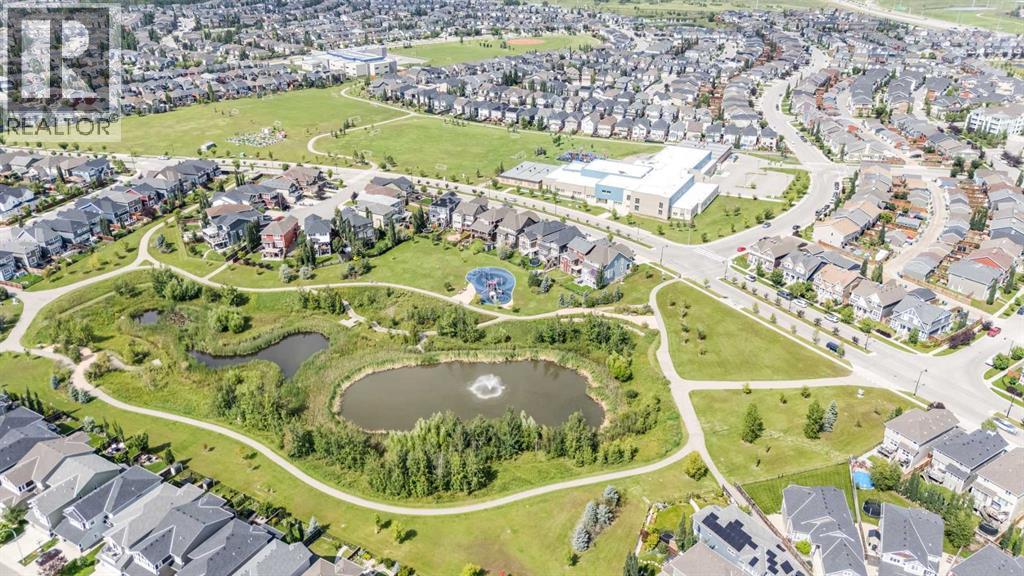Set on a quiet cul-de-sac in the sought-after lake community of Auburn Bay, this stunning walkout home is perfectly positioned on a huge pie lot with a sunny south-facing backyard that backs onto greenspace and walking paths with beautiful mountain views. The location places you within a 10-minute walk to Auburn Bay Lake, plus just a quick drive to the South Health Campus, the world’s largest YMCA, and abundant shopping and dining options. Step inside to 9’ ceilings, oversized windows, built-in speakers and central air conditioning that create an inviting main level filled with comfort and natural light. The chef’s kitchen inspires culinary creativity with a centre prep island, a peninsula island with casual seating, stone countertops, stainless steel appliances, a gas cooktop, full-height cabinetry and a walk-in pantry for extra storage. A designer dining room flows seamlessly to the massive upper deck where you can easily entertain with beautiful mountain views as the backdrop. The living room combines warmth and style with its wood feature wall and gas fireplace, creating a relaxing setting for quiet evenings. A tucked-away powder room completes this level. Upstairs, a central bonus room sets the stage for family movie nights and separates the primary suite from the secondary bedrooms for ultimate privacy. The primary occupies its own wing and provides a serene retreat with space to unwind, a large walk-in closet and a luxurious five-piece ensuite featuring dual vanities, a makeup station, a deep soaker tub and a separate rain shower. Two additional spacious bedrooms, a full four-piece bath and the convenience of upper-level laundry complete this floor. The fully finished walkout basement extends the living space with a modern aesthetic and wide-open versatility for a home gym, media setup, games, hobbies and more. Then easily refill drinks and snacks at the sleek wet bar. This level also offers a guest bedroom and a contemporary three-piece bath with an indulgen t multi-head shower. Outdoors, enjoy a rare yard size thanks to the pie lot, providing endless room for children and pets to play. A full-width upper deck with glass railings and stairs connects to a lower covered patio set on stamped concrete, ensuring comfortable outdoor living in every season. The yard is fenced, treed and private, making it ideal for both relaxation and play. Additional features include an oversized double attached garage with dual overhead doors. This home blends family functionality with executive finishes, all in a premier lake community where year-round activities and exceptional amenities are right at your doorstep! (id:53676)