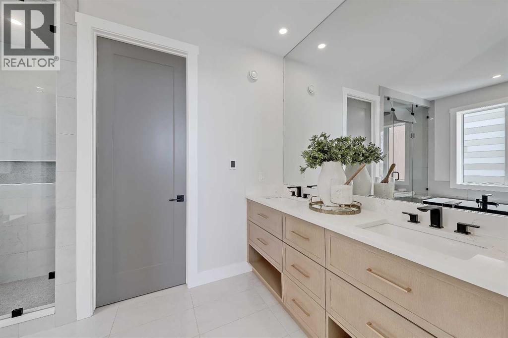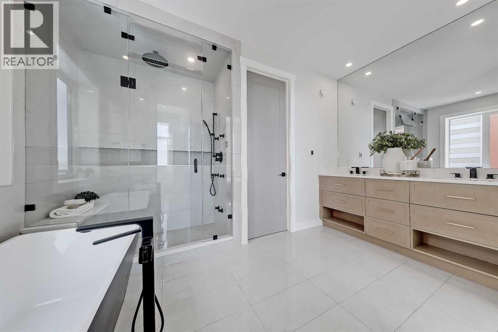 This is the kind of home that feels different from the moment you step inside. A 2024 CUSTOM ECO-BUILD set in Rocky Ridge’s exclusive ECO HAVEN ENCLAVE, it pairs true ZERO-CARBON CONSTRUCTION with refined, high-end design.Located on a quiet CUL-DE-SAC with SOUTH EXPOSURE and a unique open-corner feel, the home stands out immediately with its modern architecture, metal roofing, and black aluminum-clad Low-E windows. Inside, wide-plank hardwood, custom millwork, and expansive windows create an atmosphere of quiet luxury. Light pours in from every direction, bringing warmth to the oak accents and a sense of calm to the home’s airy, open layout.Built as a true ALL-ELECTRIC RESIDENCE WITH NO GAS LINE TO THE PROPERTY, this home is designed for long-term sustainability and year-round comfort. 28 fully registered SOLAR PANELS produce more energy annually than the home consumes, per the EnerGuide report. A MITSUBISHI ELECTRIC HEAT PUMP provides efficient heating & cooling, supported by an upgraded Lifebreath HRV system for continuous fresh air circulation. Advanced insulation, airtight construction, TRIPLE PANE LUX windows, smart LED lighting, and high-efficiency appliances work together to create a whisper-quiet interior that stays warm in winter, cool in summer, and operates at roughly half the utility cost of a comparable home!The main floor is designed for connection & function. The showpiece kitchen features a waterfall quartz island, warm oak cabinetry, induction cooktop, wall oven, French door fridge, wine fridge, and POT FILLER. A hidden PREP KITCHEN keeps the main space streamlined and clutter-free. The dining area flows seamlessly into the bright living room with a modern fireplace & access to the South-facing balcony. A designer powder room completes the level.Upstairs, a central bonus room anchors the bedrooms. The primary retreat offers an 11-ft ceiling, private balcony with DOWNTOWN VIEWS, boutique-style walk-in closet, and a spa-inspired ensuite with h eated floors, dual vanities, freestanding soaker tub, and STEAM shower. Two additional bedrooms include walk-in closets and private 4-pc ensuites. A fully appointed laundry room adds practical convenience.The lower level expands the home with 9-ft ceilings and large windows that keep the space bright and welcoming. A spacious rec room with custom built-ins & wet bar creates the perfect setting for entertaining. A full bedroom and bathroom provide flexibility for guests, older children, or multigenerational living. Direct access to the FINISHED attached garage with EPOXY FLOORING & EV CHARGER enhances daily ease.Located across from a private pocket park with a picnic area and basketball court, and close to pathways, playgrounds, green space, and community gardens. Quick access to Crowchild Trail, Stoney Trail, the Rocky Ridge YMCA, and Tuscany LRT station makes commuting simple.This is modern luxury designed for the future: energy independent, architecturally refined, and built to stand apart. (id:53676)