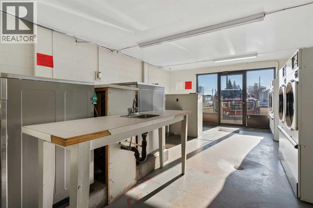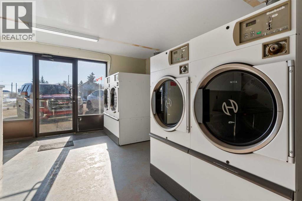 This unique and versatile commercial property offers a fantastic opportunity for investors, business owners, or developers. Situated on a 50’ x 120’ lot, the 2500 square foot building features a diverse mix of income generating spaces, including a fully operational laundromat, a mechanical bay (previously a wash bay), a cafe space, and upper level living quarters. The laundromat has an established customer base with multiple washers and dryers. The mechanical bay (Former Wash Bay) has a high ceiling bay with overhead door. Ideal for auto repair, detailing, or light industrial use. Could easily convert back to a wash bay. The cafe space has a charming cafe setup with seating area for 35 patrons, kitchen space for food prep and a dry storage area with delivery door. Potential for coffee shop, deli, or take out restaurant. The upper level living quarters has 2 spacious bedrooms each with their own baths and a bonus room for entertaining. This is perfect for a owner/operator or rental income. There is ample parking in a prime location on main street with multiple revenue streams. Add this commercial property to your portfolio. (id:53676)