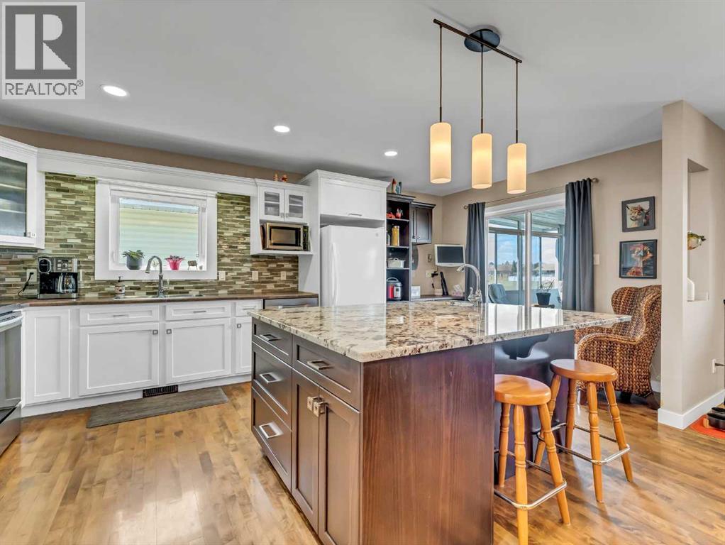 This beautifully updated two bedroom, two-and-a-half bathroom home is located in the quiet and highly desirable Horizon Village Adult Living Community. Offering pet friendly peaceful surroundings and a stunning coulee view, this home is perfect for those seeking comfort and low-maintenance living. The main floor features a bright, open layout with an abundance of natural light. The beautifully renovated kitchen is the heart of the home, complete with a large granite island, ample cabinetry and plenty of space for entertaining. You'll also appreciate the convenience main floor laundry and an updated two-piece powder room The spacious primary bedroom serves as a private retreat, featuring a full walk-in closet/dressing room and a tastefully updated four-piece ensuite. Backing directly onto the coulee, you'll enjoy added privacy and serene views right from your bedroom. Downstairs, the fully developed walkout basement offers a generous family room, a second bedroom, a full four piece bathroom - ideal for guests or additional living space. Step outside to the private patio area and take in the tranquil setting. Completing the lower level you will find tons of storage space and a workshop area. Upstairs, the enclosed sunroom and dedicated BBQ area provide the perfect space to relax or entertain while overlooking the coulee. The attached double garage provides added convenience of sheltered parking as well as more storage options. Residents of Horizon Village enjoy access to the clubhouse and a peaceful, well maintained adult community. This is a rare opportunity to own a move-in ready home in this quiet, scenic location. Don't miss your opportunity, call to book your private viewing today! (id:53676)