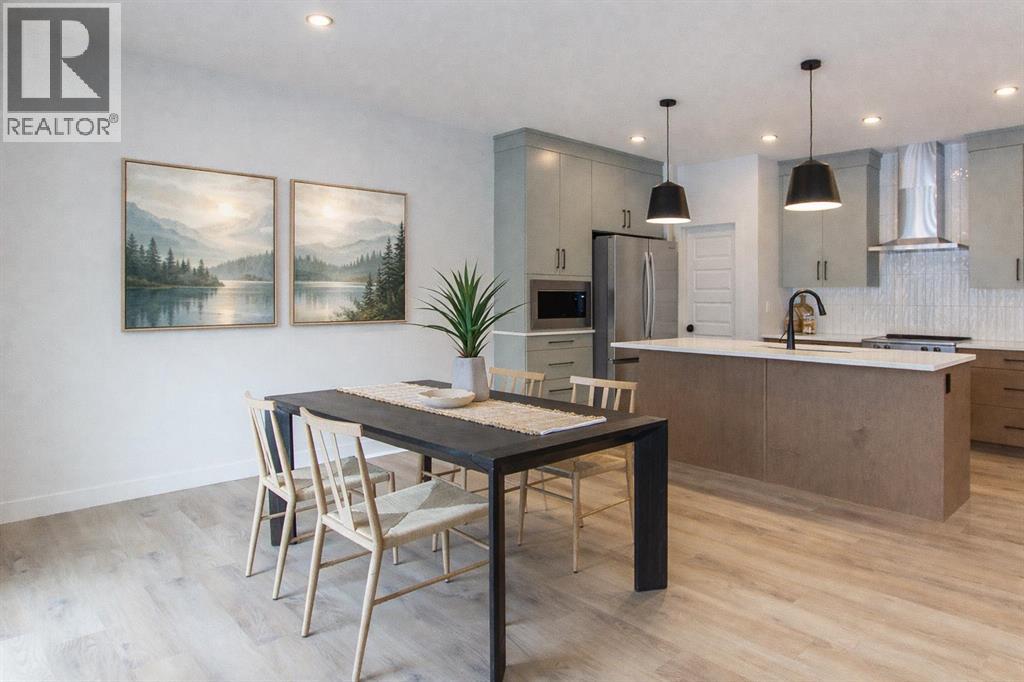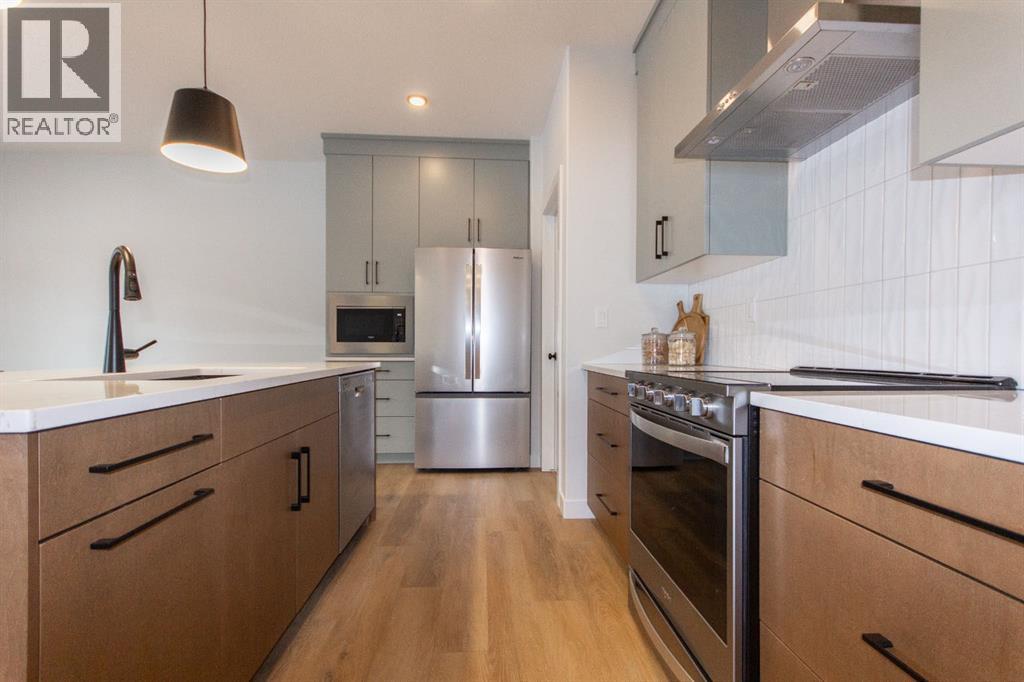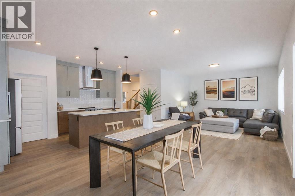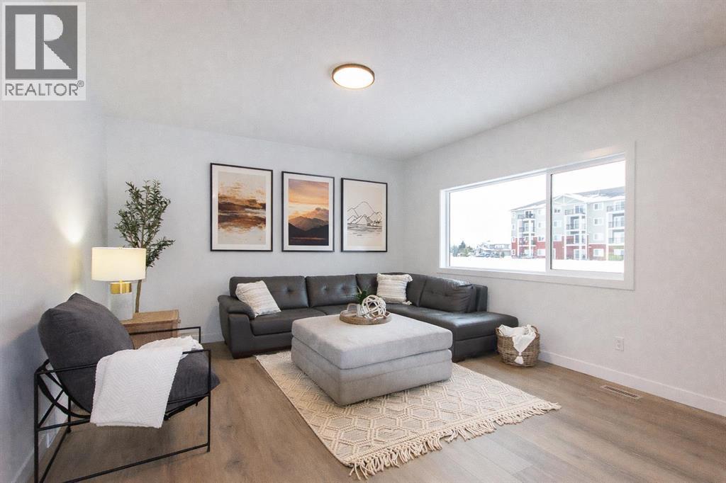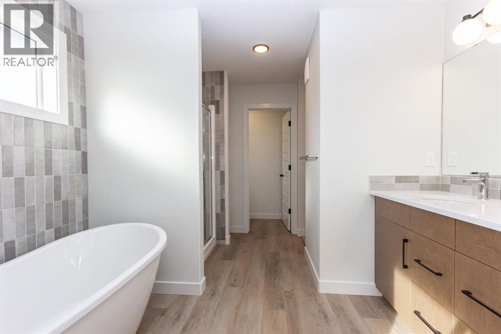 Situated close to the numerous amenities of Timberlands and Clearview Market, a school, and numerous parks and playgrounds, this brand new Laebon home is the perfect place to grow your family! This best selling floor plan offers 9' ceilings on the main floor, pot lighting, large windows, and a spacious open living space that is perfect for entertaining. Luxury vinyl plank runs throughout the main floor for the best in low maintenance and durability. This spacious kitchen offers raised two tone cabinetry, quartz counter tops, stainless steel appliances, island with eating bar and under mount granite sink, and a walk in pantry, while the adjacent eating area is large enough to accommodate the whole family. The living room and dining space enjoy views over the yard, and a sliding glass patio door provides access to the rear deck. The second floor offers a spacious and bright bonus room, two generously sized kids rooms that share a 4 pce bath, and convenient upper floor laundry. The primary suite is large, and the ensuite is a great place to start and end your day, with dual sinks, a freestanding soaker tub, oversized shower, water closet, and spacious walk in closet. The attached garage offers a floor sump and is insulated, drywalled, and taped. If you need more space, the builder can complete the basement development for you, and allowances can also be provided for blinds, and a washer and dryer to make this a completely move in ready package. 1 year builder warranty and 10 year Alberta New Home Warranty are included. Immediate possession is available, and GST is already included in the purchase price. Taxes have yet to be assessed. (id:53676)