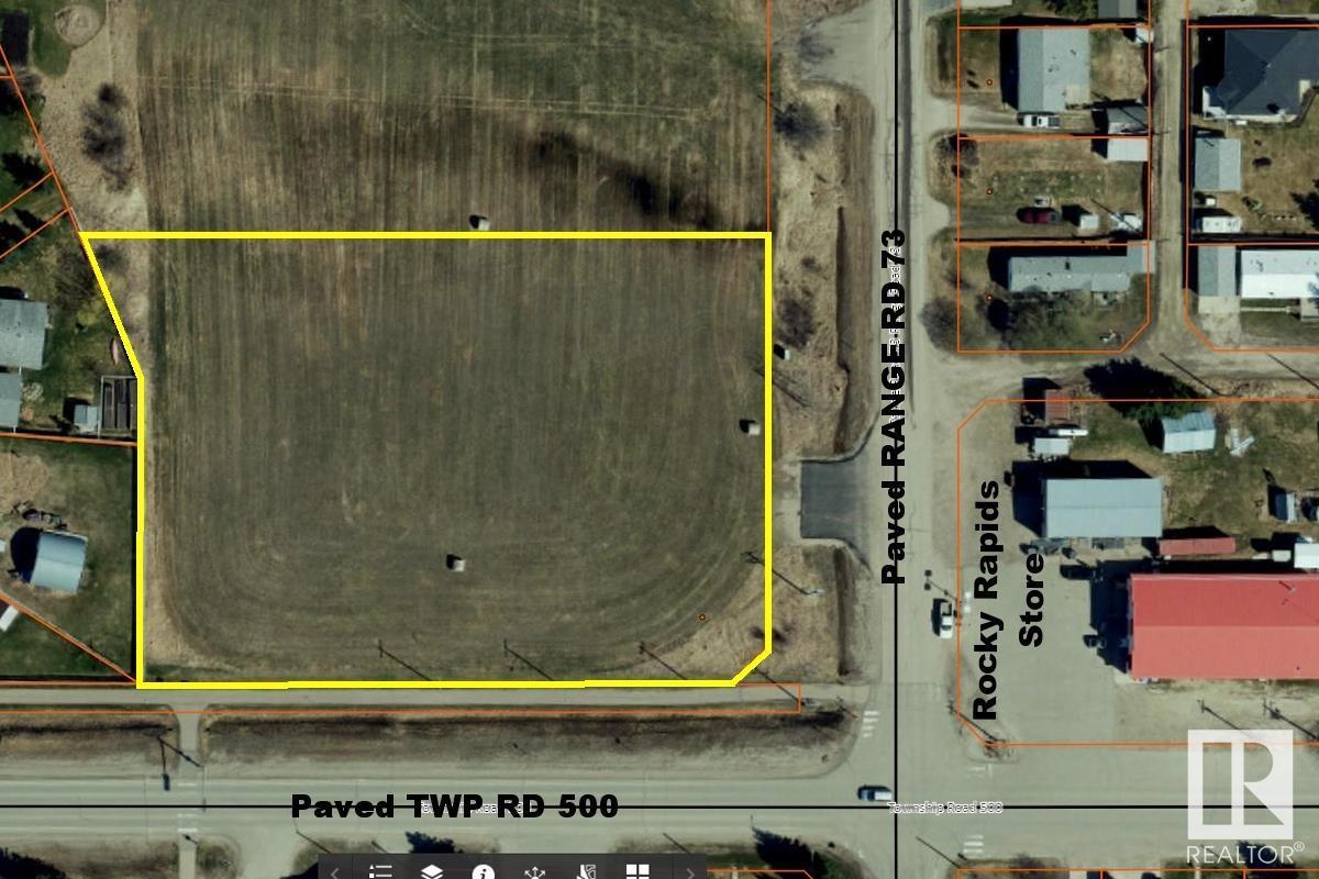 Ready for your development - 1.8 acre lot at the corner of paved Twp Rd 500 and paved Range Road 73. Located across the street from Rocky Rapids General Store. It’s land use zoning - Commercial District. Another commercial zoned lot lies directly north. It is bordered by a residential area on the west. Has power transformer. (id:53676)