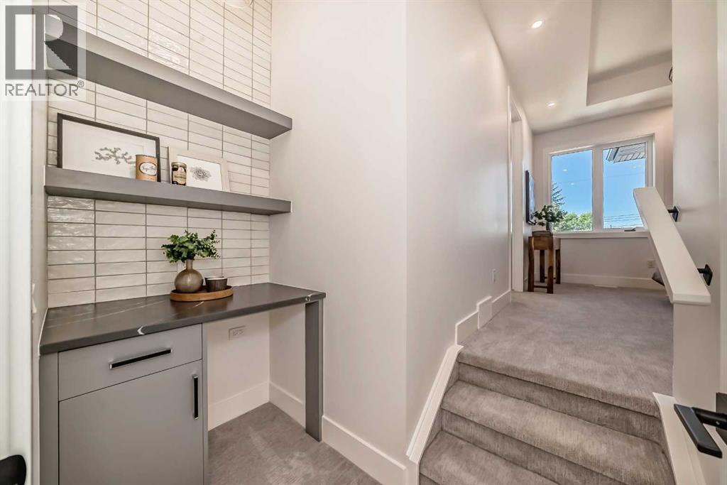 ** OPEN HOUSE: Friday, September 19th 1-3pm ** Welcome to 5005 21A Street—a beautifully designed modern family home featuring 5 bedrooms and 3.5 bathrooms. From the moment you step inside, you're welcomed by a bright and airy dining area that seamlessly flows into the open-concept main floor.The gourmet kitchen is a chef’s dream, complete with high-end appliances, quartz countertops, full-height cabinetry, a spacious island, and a coffee bar for added convenience. The living room boasts soaring ceilings, a cozy gas fireplace, and built-in shelving with a desk, perfect for work or study. Double patio doors open onto the back deck, extending your living space outdoors. A mudroom and a chic powder room complete the main level.Upstairs, the primary suite is a true retreat, featuring a private coffee bar, his and hers walk-in closets, and a luxurious 5-piece ensuite with a soaking tub, double vanity, and walk-in shower. Two additional bedrooms, a full bathroom, and a dedicated laundry room round out the upper floor.Outside, the home’s timeless brick façade exudes curb appeal, while the fully fenced and landscaped backyard offers a private oasis. A double-car garage adds to the home’s practicality.Located just minutes from Marda Loop’s vibrant shops, restaurants, and amenities, this home effortlessly combines style, comfort, and functionality. Don’t miss out—schedule your showing today! Please note that the photos shown are from the other side of the duplex. While there may be slight variations, the layout, finishes, and design are nearly identical, offering the same modern style and high-end features. (id:53676)