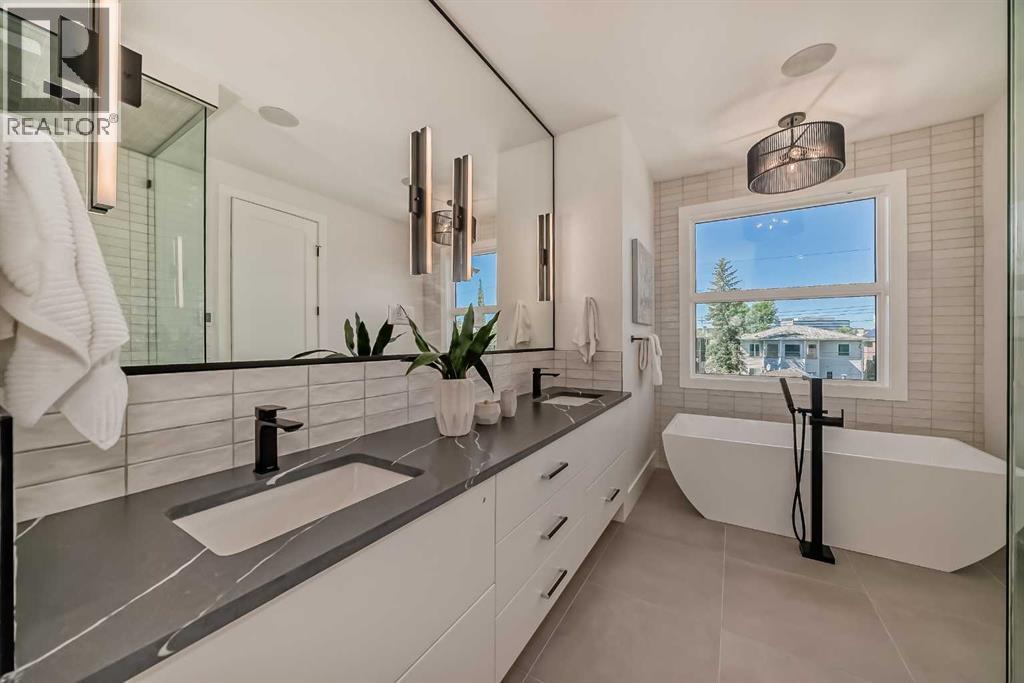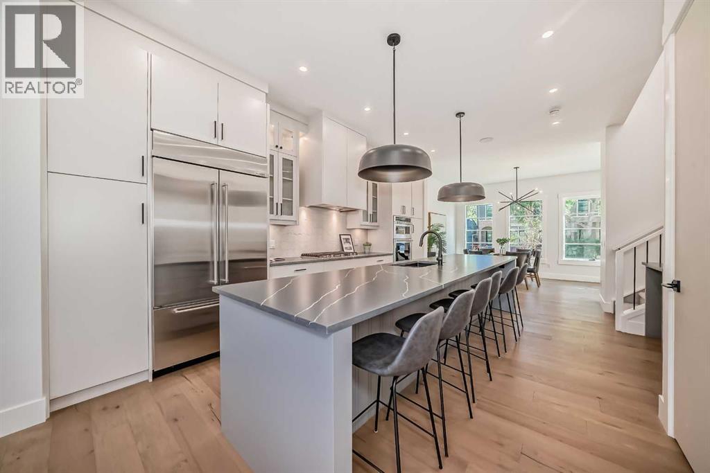 ** OPEN HOUSE: Thursday, October 16th 4-6pm, Friday, October 17th 2-4pm and Saturday, October 18th 12-2pm ** Welcome to 5005 21A Street—a beautifully designed modern family home featuring 5 bedrooms and 3.5 bathrooms. From the moment you step inside, you're welcomed by a bright and airy dining area that seamlessly flows into the open-concept main floor.The gourmet kitchen is a chef’s dream, complete with high-end appliances, quartz countertops, full-height cabinetry, a spacious island, and a coffee bar for added convenience. The living room boasts soaring ceilings, a cozy gas fireplace, and built-in shelving with a desk, perfect for work or study. Double patio doors open onto the back deck, extending your living space outdoors. A mudroom and a chic powder room complete the main level.Upstairs, the primary suite is a true retreat, featuring a private coffee bar, his and hers walk-in closets, and a luxurious 5-piece ensuite with a soaking tub, double vanity, and walk-in shower. Two additional bedrooms, a full bathroom, and a dedicated laundry room round out the upper floor.Outside, the home’s timeless brick façade exudes curb appeal, while the fully fenced and landscaped backyard offers a private oasis. A double-car garage adds to the home’s practicality.Located just minutes from Marda Loop’s vibrant shops, restaurants, and amenities, this home effortlessly combines style, comfort, and functionality. Don’t miss out—schedule your showing today! Please note that the photos shown are from the other side of the duplex. While there may be slight variations, the layout, finishes, and design are nearly identical, offering the same modern style and high-end features. (id:53676)