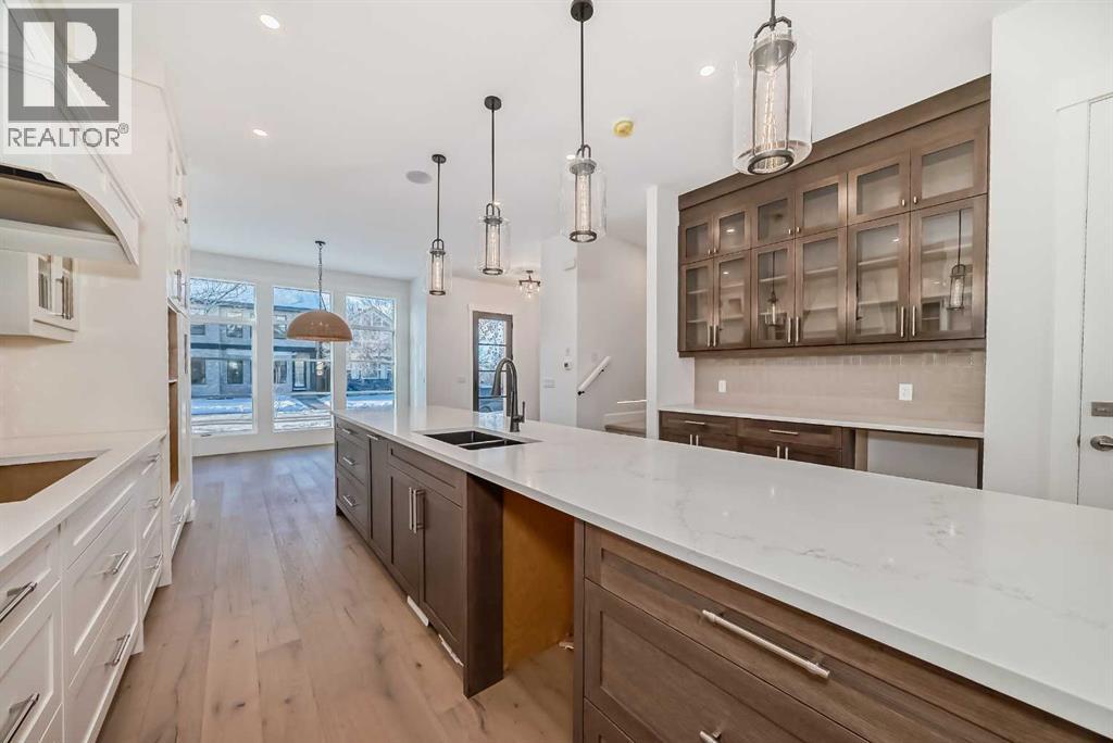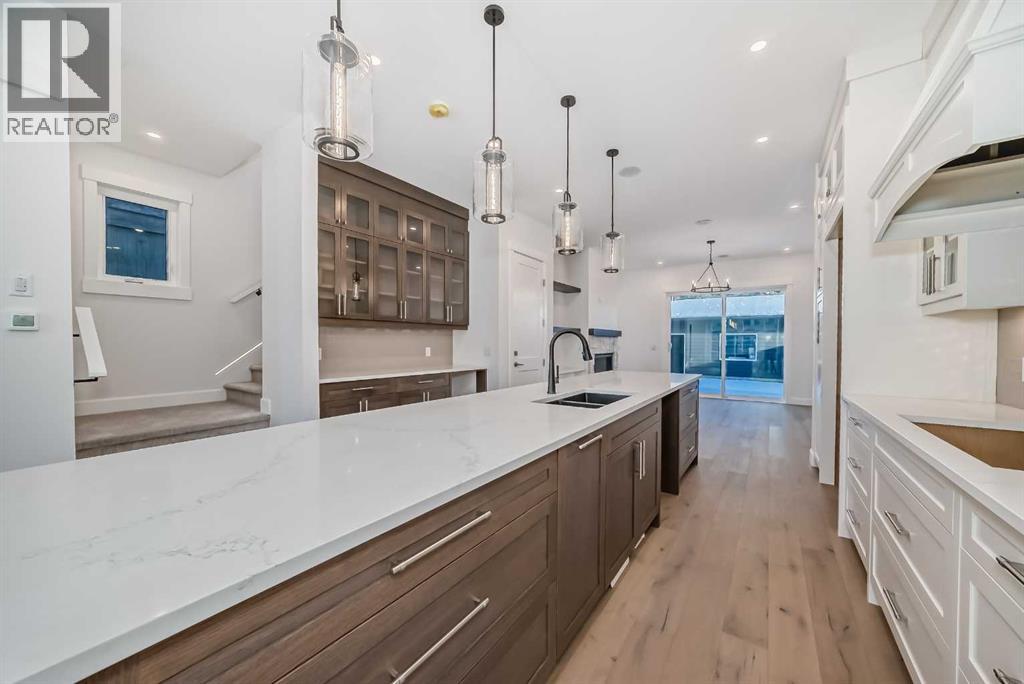 Welcome to 5006 21A Street, a stunning modern family home with 5 bedrooms and 3.5 bathrooms. As you enter, you’re greeted by a bright dining room and an open-concept floor plan that effortlessly connects to the gourmet kitchen. This chef’s paradise boasts high-end appliances, quartz countertops, full-height cabinetry, a full-sized island, and a convenient coffee bar with built-ins. The spacious living room, complete with high ceilings and a cozy gas fireplace, offers an inviting atmosphere, while built-ins with a desk provide practical workspace. Double patio doors lead to the back deck, enhancing indoor-outdoor living. The main floor also includes a mudroom and a stylish powder room. Upstairs, the luxurious primary bedroom features his and hers walk-in closets, and a spa like 5-piece ensuite with a soaking tub, double vanity, and walk-in shower, offering a relaxing sanctuary. Two additional bedrooms, a full bathroom, and a dedicated laundry room complete this level. The basement includes two bedrooms with its own walk-in closets, a full bathroom, and a living room. The home’s exterior showcases a timeless brick façade, and the fully fenced and landscaped backyard offers a private retreat for outdoor activities. A double car garage adds to the home’s convenience and practicality. Situated close to the trendy amenities, restaurants, and shops of Marda Loop, this property harmoniously blends elegance with functionality, offering a stylish and comfortable living environment for every lifestyle. Book your showing today! (id:53676)