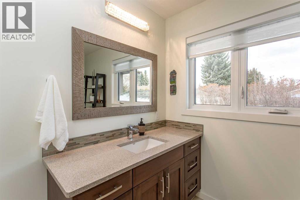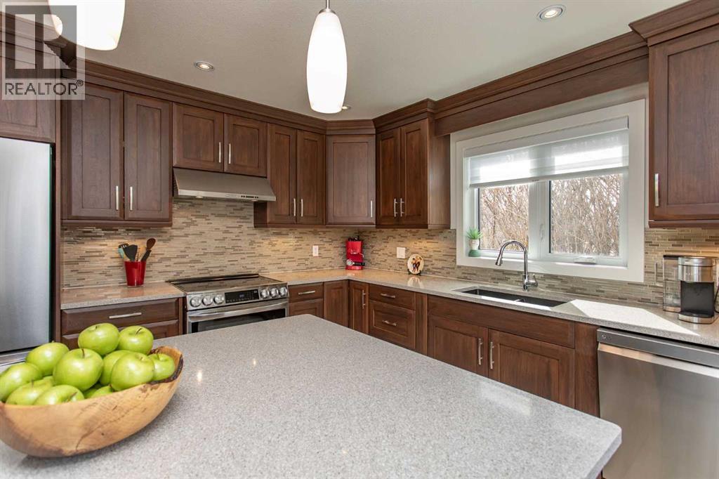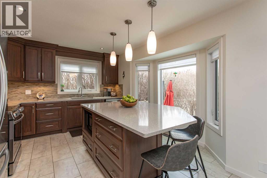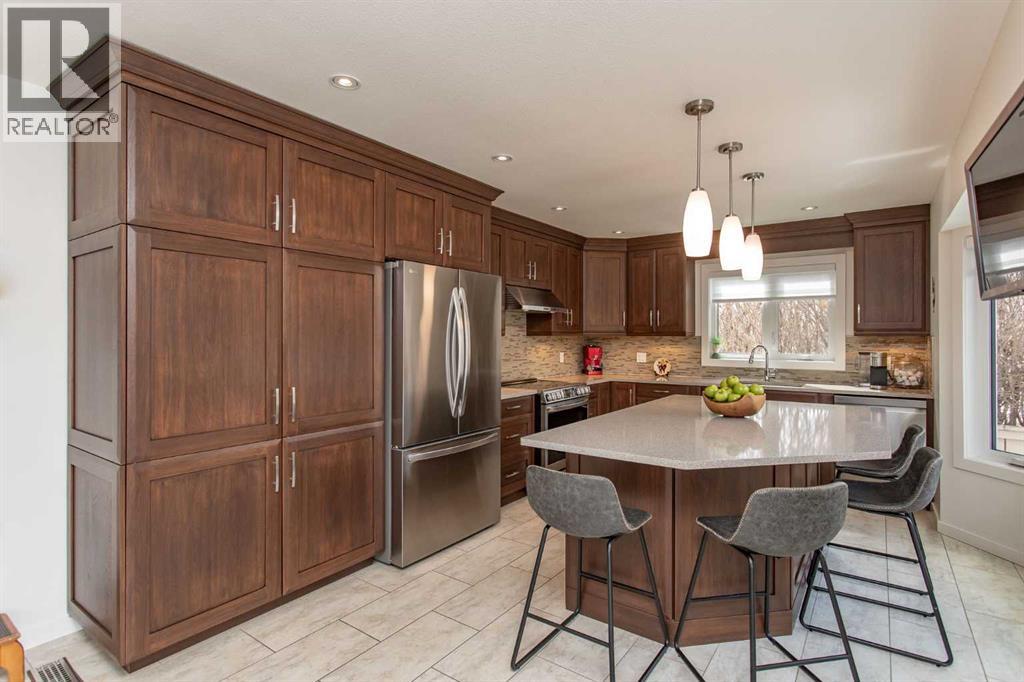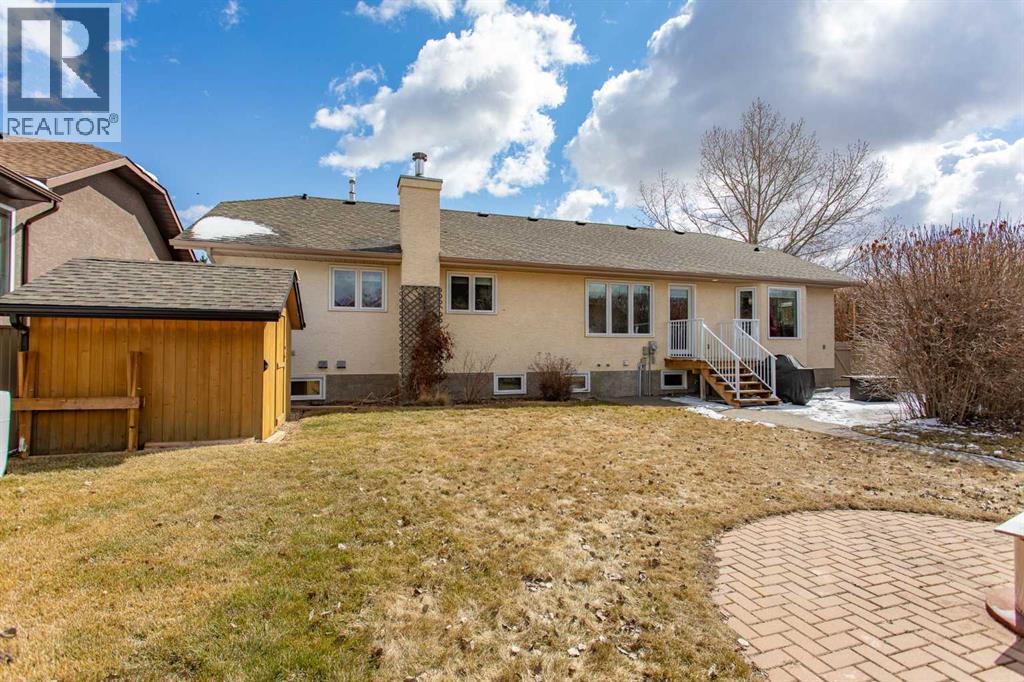 This pristine, fully finished bungalow is a rare find and ready for its next family! Offering an attached garage plus a heated detached garage, this property combines functionality with exceptional pride of ownership and shows like new. Extensively upgraded over the past few years, highlights include triple pane windows, a beautifully renovated kitchen with granite countertops, large island, pull-out cabinetry, and newer stainless steel appliances (approx. 3 years old), cork flooring, refaced gas fireplace, updated railings, and new blinds throughout. The main level also features convenient laundry, a spacious living room, and an oversized kitchen and dining area—perfect for entertaining. The primary bedroom offers a walk-through closet and 3-piece ensuite, while a second bedroom and full bathroom complete the main floor. The fully developed basement features 3rd and 4th bedrooms, a large family room with a cozy wood-burning stove—perfect for relaxing evenings—along with a laundry area and a versatile den/playroom. The basement bathroom boasts a stunning tile and glass walk-in shower. Enjoy outdoor living with stone patios at both the front and back—ideal for morning coffee and soaking up the west-facing sun in the beautifully landscaped backyard. Additional features include back alley access, RV parking, a storage shed, and space for a garden. A rare opportunity offering exceptional value—this home is a must-see! (id:53676)