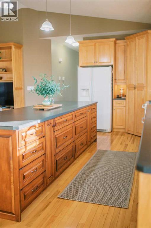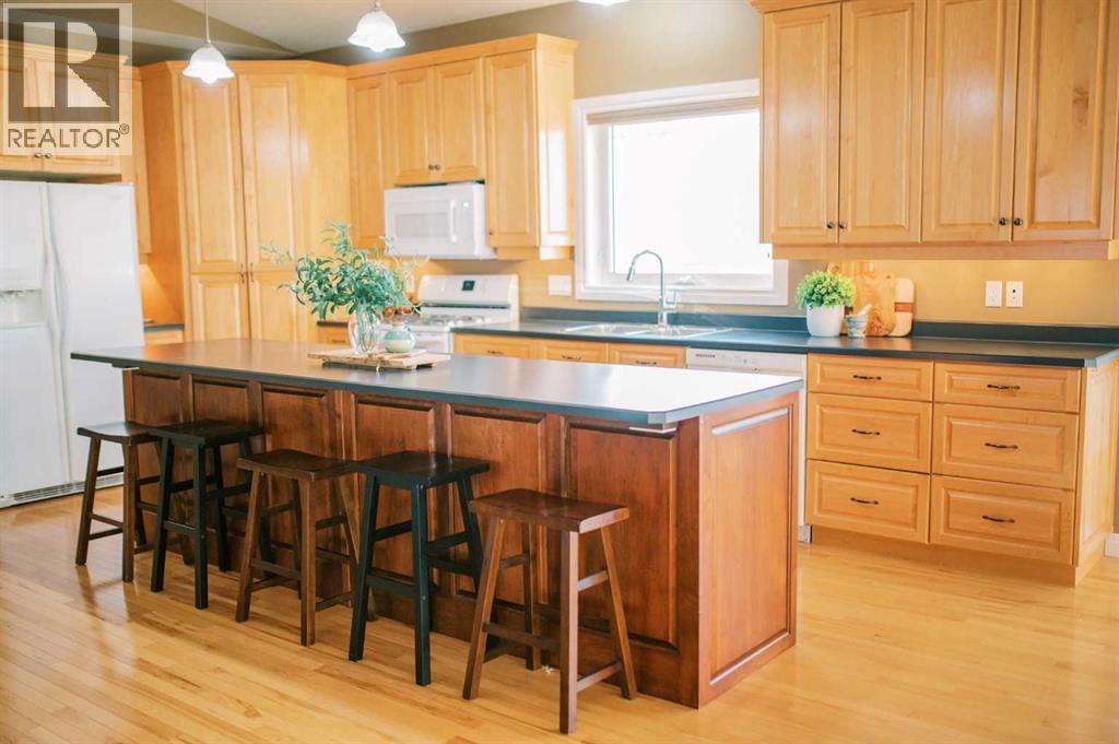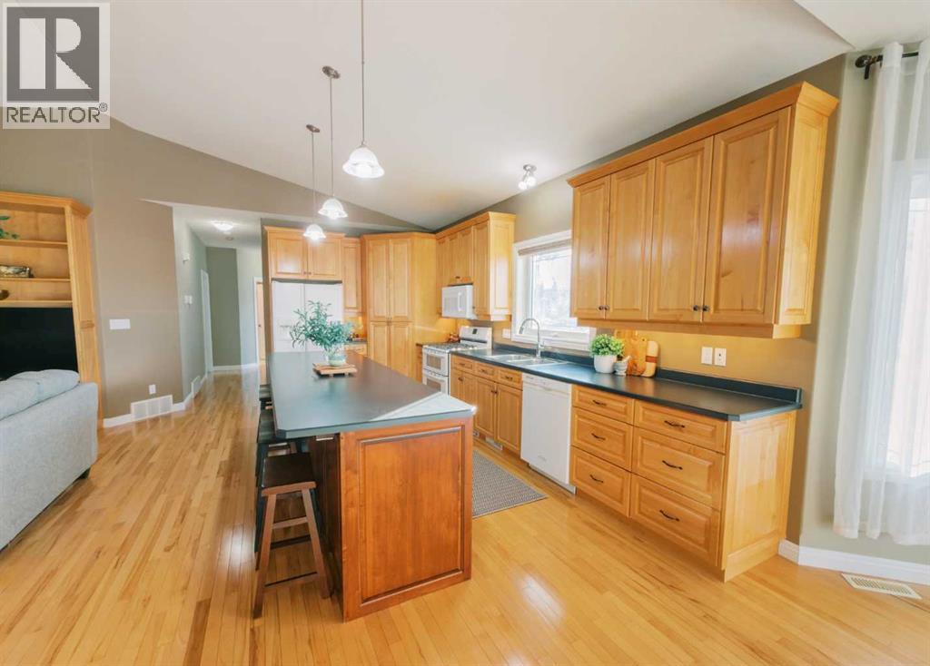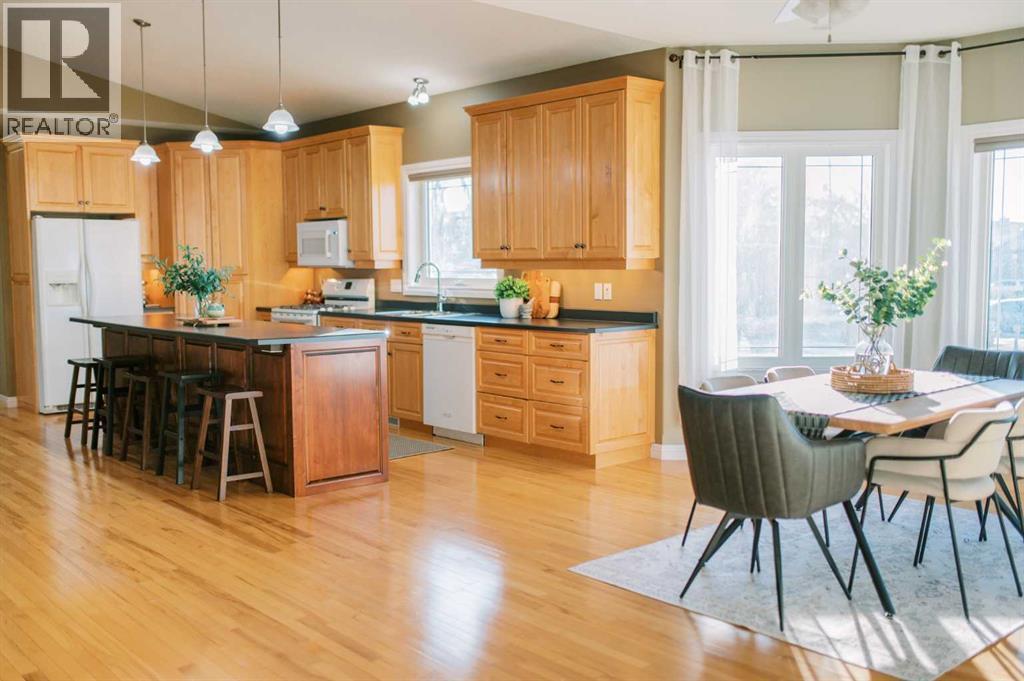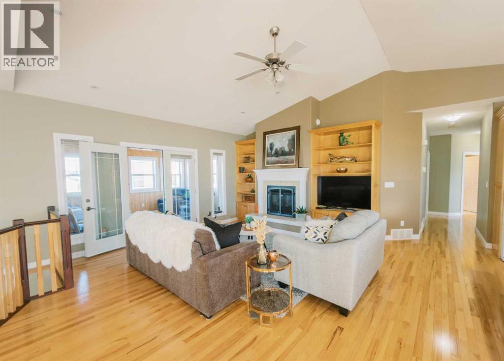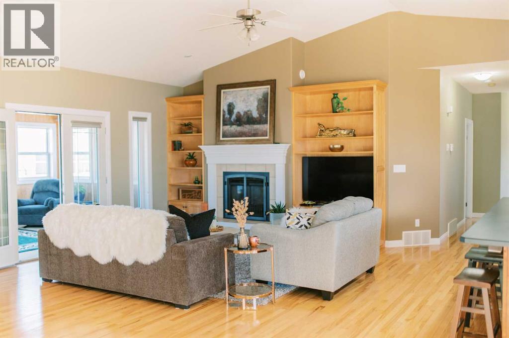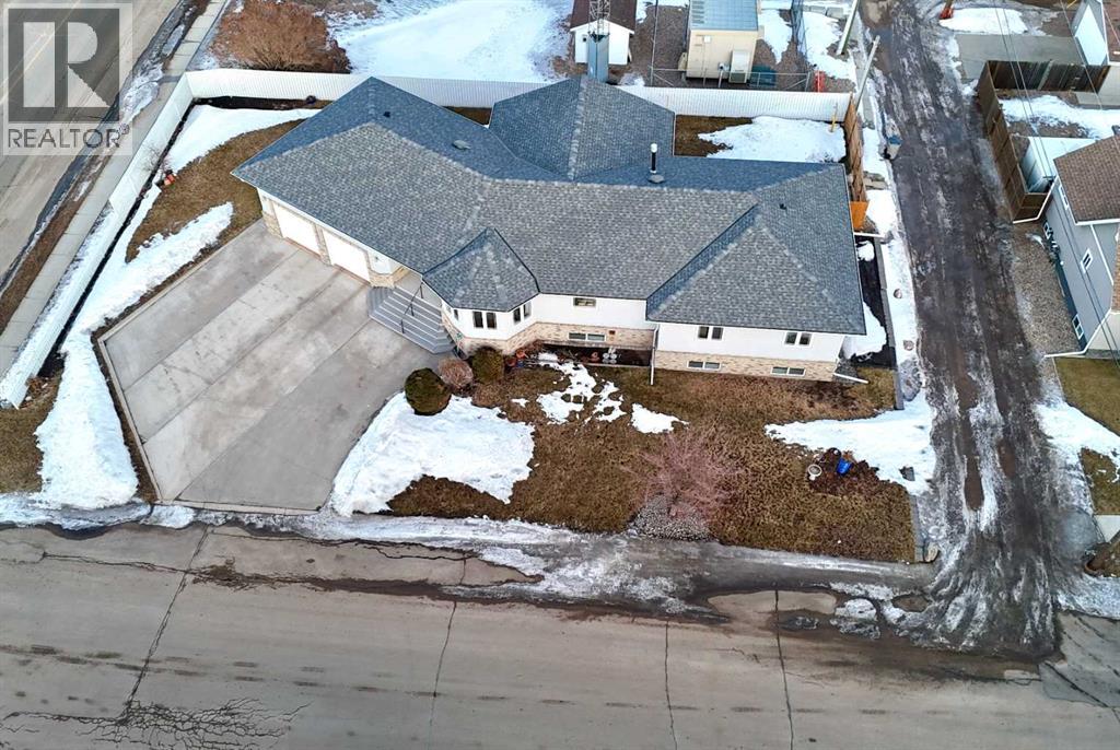 A RARE OPPORTUNITY TO OWN A TRULY EXPANSIVE, BEAUTIFULLY FINISHED BUNGALOW OFFERING FULLY DEVELOPED LIVING SPACE.From the moment you step inside, the sense of space is undeniable. SOARING 9-FOOT CEILINGS on both main and lower levels along with additionally VAULTED CEILINGS IN THE KITCHEN AND LIVING ROOM, and large, bright windows create an airy, welcoming atmosphere throughout. Rich HARDWOOD FLOORING, PORCELAIN TILE, and plush carpet blend warmth with durability in every room.The heart of the home is the stunning kitchen, anchored by an EXTRA-LARGE CENTRE ISLAND with seating for six or more. You’ll also appreciate the GAS STOVE WITH DOUBLE OVENS, brand-new EXTERIOR VENTED OVER THE RANGE MICROWAVE, large corner pantry, and an abundance of CUSTOM CABINETRY that continues throughout the home.The living room offers a cozy yet refined feel with a GAS FIREPLACE, while the layout flows seamlessly into the FULLY INSULATED, HEATED SUNROOM, allowing you to enjoy this bright space comfortably year-round.With SIX SPACIOUS BEDROOMS, including a generous primary suite featuring a WALK-IN CLOSET and FULL ENSUITE, there’s room for families, guests, and home offices alike. The fully finished basement is equally impressive, offering IN-FLOOR HEAT, a large open recreation area ideal for entertaining or kids’ hangouts, and EXTENSIVE STORAGE. Plumbing for laundry BOTH UPSTAIRS AND DOWN.A high quality build, this home sits on an ICF FOUNDATION and includes ON-DEMAND HOT WATER (installed 2022), central air conditioning, central vac, a high-efficiency furnace (cleaned 2025), and ample fully finished storage spaces throughout.The exterior is just as thoughtful, featuring DURABLE STUCCO SIDING, a 28’ X 28’ FULLY FINISHED, HEATED GARAGE, and a large front driveway. ALL OF THIS IS SET ON OVER A 10,000 SQ FT LOT (originally 3 lots), offering exceptional space, privacy, and flexibility. Out back, enjoy a COVERED DECK WITH GAS LINE FOR YOUR BBQ, substantial under-deck st orage, RV PARKING, and a FULLY FENCED YARD WITH NO NEIGHBOURS BEHIND—offering both privacy and functionality.All of this is set in a HIGHLY WALKABLE LOCATION, close to downtown, schools, the post office, coffee shops, shopping, and everyday amenities.A METICULOUSLY MAINTAINED, NON-SMOKING AND PET-FREE HOME, offering space, quality, and lifestyle—this is Stettler living at its best. (id:53676)