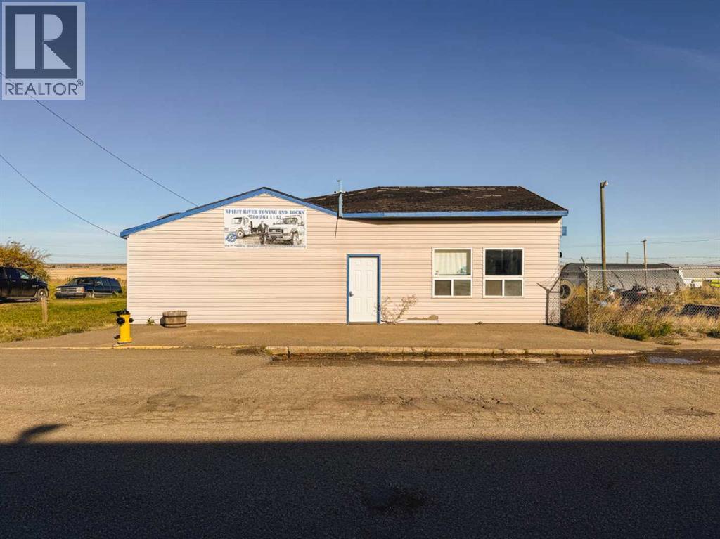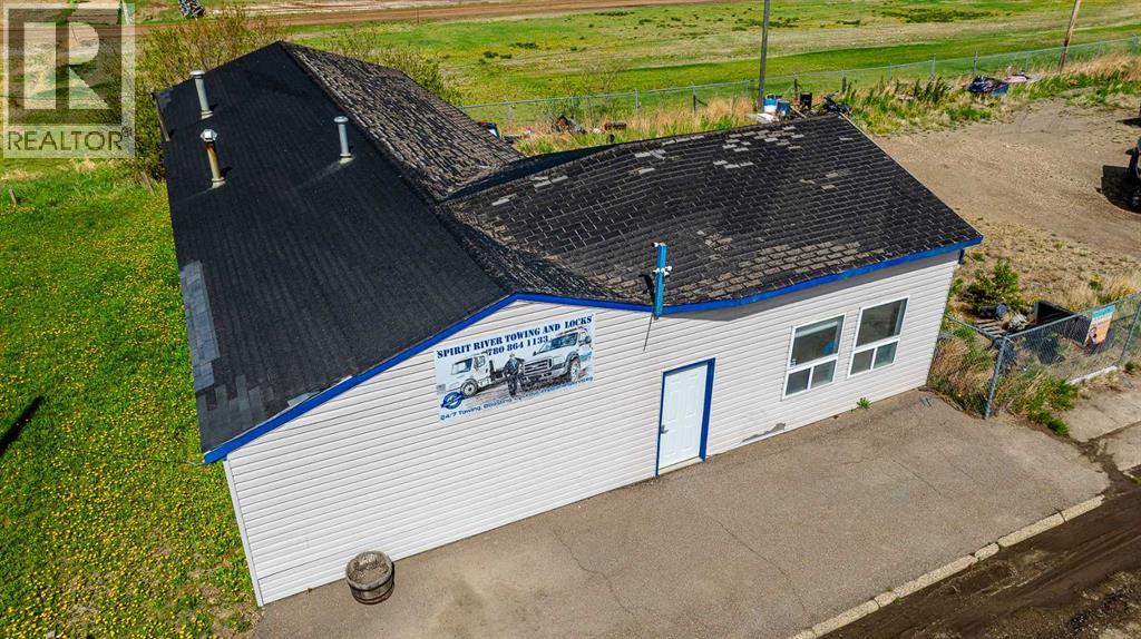 Land and heated shop/office with two large service bays, overhead doors, cement floor, heated storage area (for motorcycles or toys), front desk and office areas, 2 pc bathroom, all within a huge fenced compound in Spirit River! Closed caption cameras and security system included. Ideal location for your business, conveniently an hour north of Grande Prairie and an hour from Dawson Creek, B.C., in the heart of the Peace Region. Building used to be Spirit River Towing, in its previous life. Interior pictures available upon request. (id:53676)