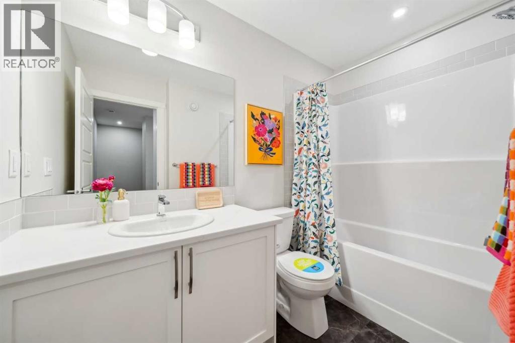 Discover modern comfort and style in this beautifully designed 3-bedroom, 2.5-bath stacked townhome located in the sought-after community of ZEN Greystone South in Cochrane.The open-concept main floor features a bright, spacious kitchen with stainless steel appliances, quartz countertops, and an oversized island that seamlessly connects to the dining and living areas—perfect for entertaining or family gatherings.Upstairs, the primary bedroom offers a generous walk-in closet and a private ensuite. Two additional bedrooms, a full bathroom, and upper-level laundry provide everyday convenience and flexibility.Located just steps from downtown Cochrane, scenic pathways, shops, parks, and natural green spaces, this home offers the perfect blend of modern living and small-town charm. Additional features include a Fresh Air System (HRV) for improved indoor air quality. (id:53676)