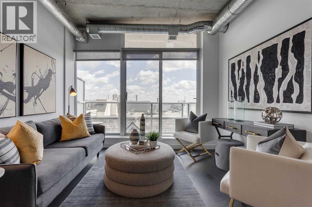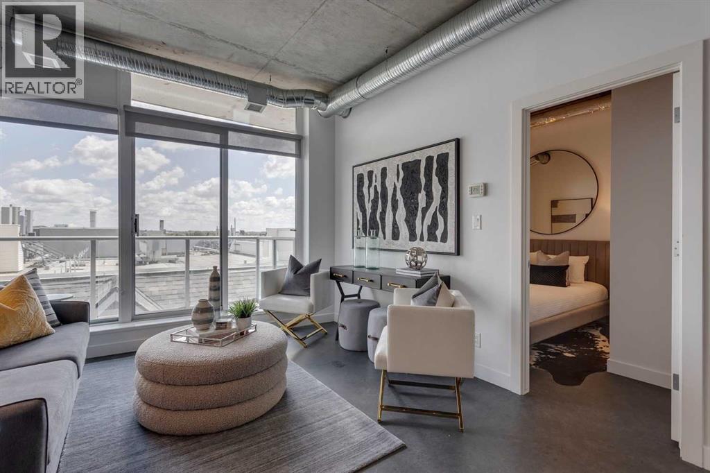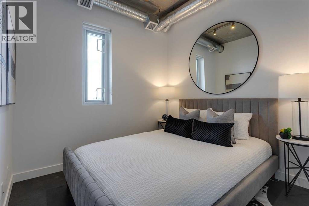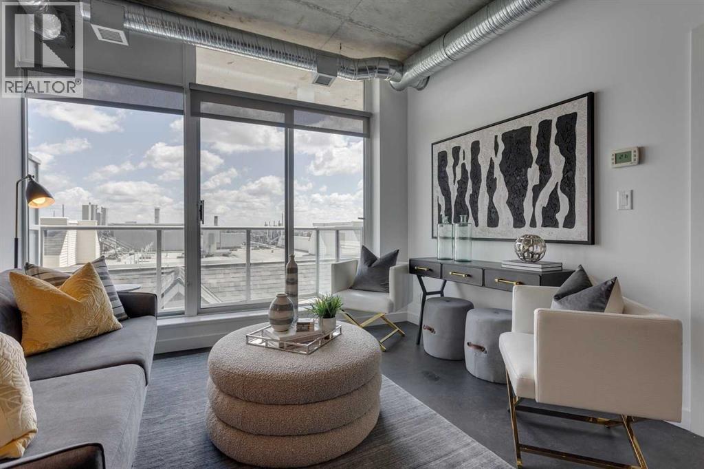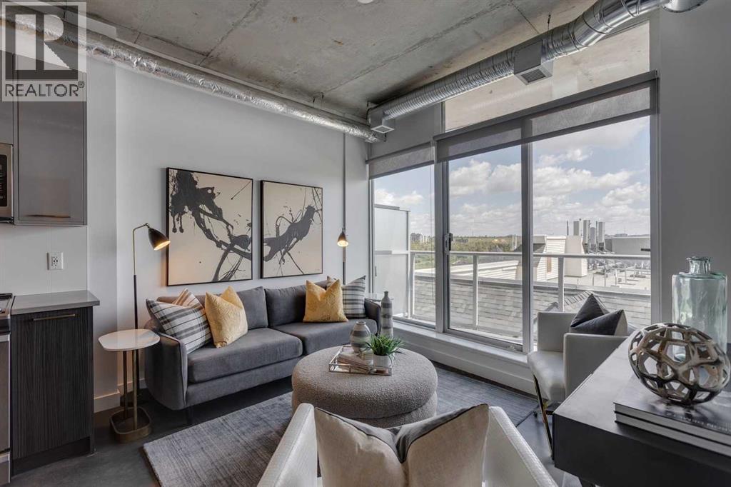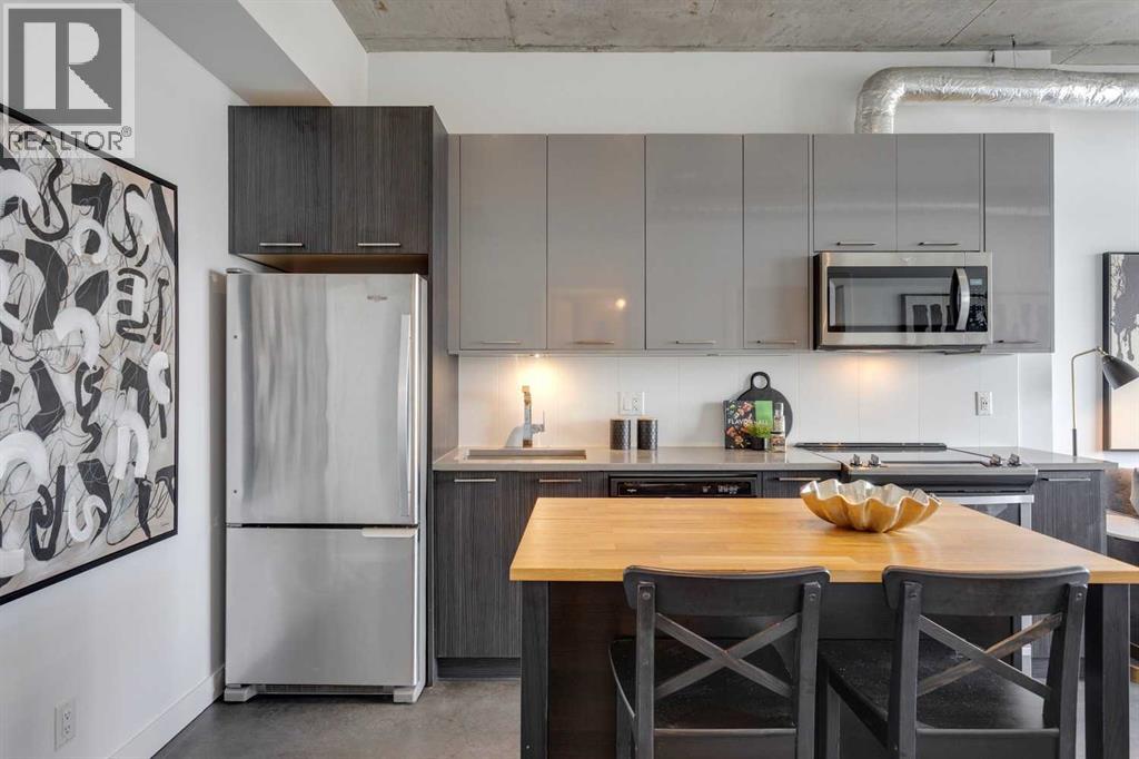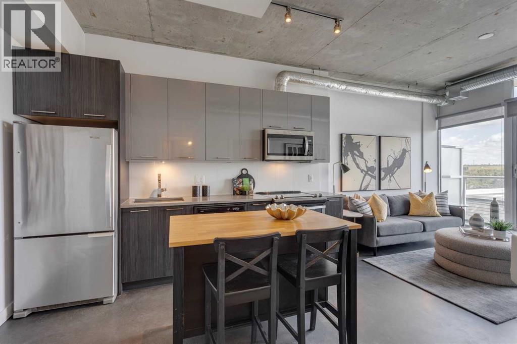 INK! Your inner-city adventure begins here in this trendy upscale building built by award-winning Battistella developments! This stunning 1-bedroom condo is situated in the heart of downtown, located on the 5th floor with breathtaking views of the Bow River, Fort Calgary, and the urban landscape. This east-facing unit is drenched in light and blends industrial chic with modern comfort. Unique polished concrete floors and ceilings add a stylish edge, while the thoughtfully selected finishes create a warm and inviting atmosphere. Step out onto the expansive balcony to soak in the downtown energy, whether you're sipping your morning coffee or entertaining friends. Convenience is at your fingertips to explore the city's top restaurants, shops, and parks—all within walking distance. The INK building is designed to elevate your lifestyle with features such as a spacious common amenities area, a ping pong table, and a large rooftop patio featuring cozy fireplaces and ample seating for large gatherings. Whether you're a professional seeking the dynamic downtown lifestyle or an investor , this condo checks all the boxes. Bicycle storage is complete with an air pump and repair rack. This pet-friendly building also has a dog wash, underground visitor parking, and parking stalls available for rent, subject to availability. This is a very affordable opportunity to own or to hold as a great investment. Price inc a titled storage unit in the parkade and a rented underground parking stall is $200.00/mth. Can be kept or cancelled (id:53676)