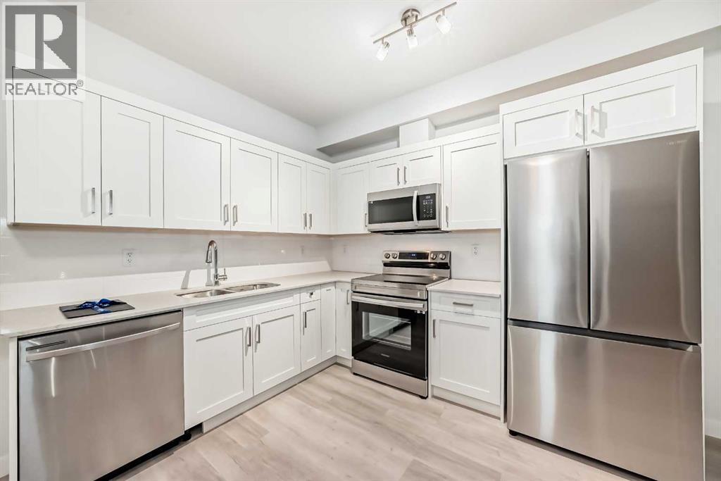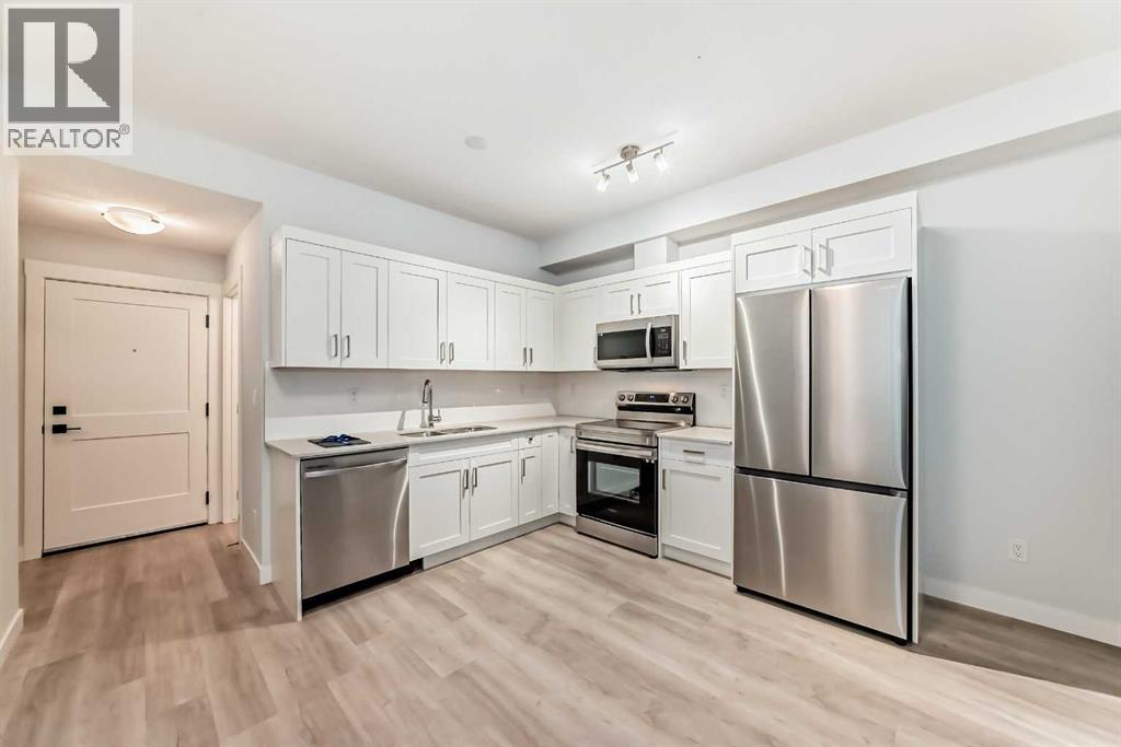 Beautiful 2-Bedroom Top-Floor Condo in Sage HillWelcome to this bright and private top-floor condo featuring 2 bedrooms and 1 bathroom. Enjoy stunning panoramic views and an open-concept layout perfect for modern living. The kitchen boasts quartz countertops, sleek cabinetry, and stainless-steel appliances.Relax or entertain on your private balcony. The spacious primary bedroom includes a 4-piece ensuite, and the second bedroom offers ample closet space. Additional features include in-suite laundry, titled underground parking, and an assigned storage locker.Located close to shopping, parks, walking paths, and transit, this nearly new unit offers both comfort and convenience.Book your showing today! (id:53676)