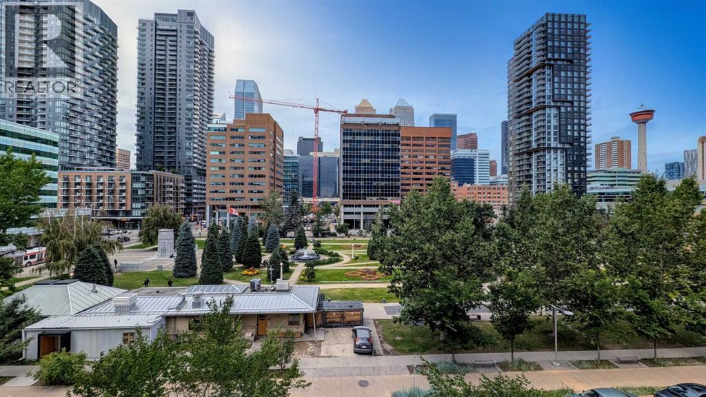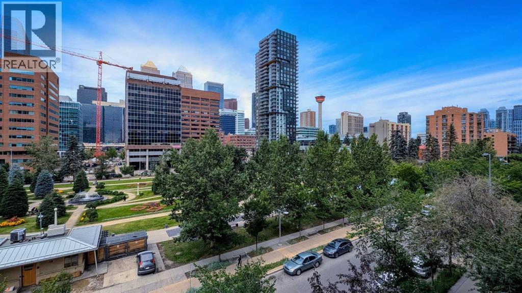Welcome to Park 300 Palisades—a concrete landmark where urban convenience meets postcard-worthy views. From your covered balcony you’ll take in the downtown skyline by day and the Stampede fireworks by night, all while overlooking the treetops of Central Memorial Park. Inside, the intelligently laid-out 1-bed/1-bath suite (approx.501 sq ft) feels larger than its footprint: an open living–dining area that easily fits a work-from-home desk, a crisp galley kitchen, and a generous bedroom with double closets. All utilities (water, electricity, heat etc) are included in the low condo fee. The building is meticulously managed and fully loaded: Heated underground parking (assigned stall plus ample visitor spaces); Indoor salt-water pool, fitness room & dry sauna for year-round wellness; Modern laundry lounge, secure bike storage and on-site property management. Step outside and you’re 30 seconds to the park, 3 minutes to the C-Train, and 5 minutes to 17th Ave or Stephen Ave for Calgary’s best cafés, dining and shopping. Walk or cycle to work, catch a Flames game at the future Event Centre, or simply stay home and enjoy the nightly city lights show from your private perch.Whether you’re a first-time buyer, downsizer or investor, this is turn-key Beltline living with a view—and a front-row seat to every downtown celebration. (id:53676)