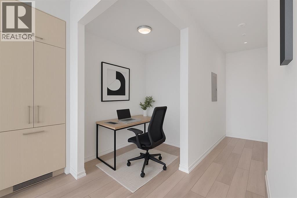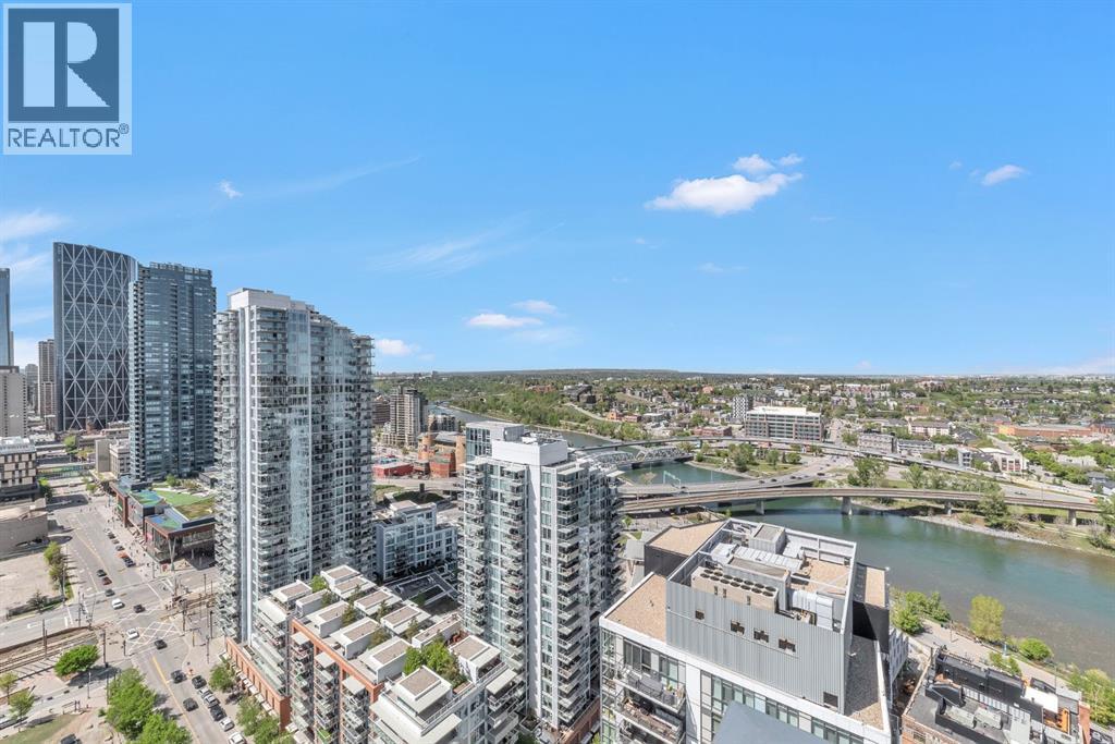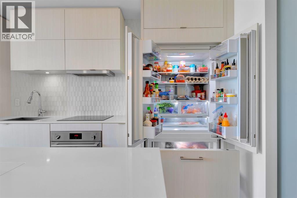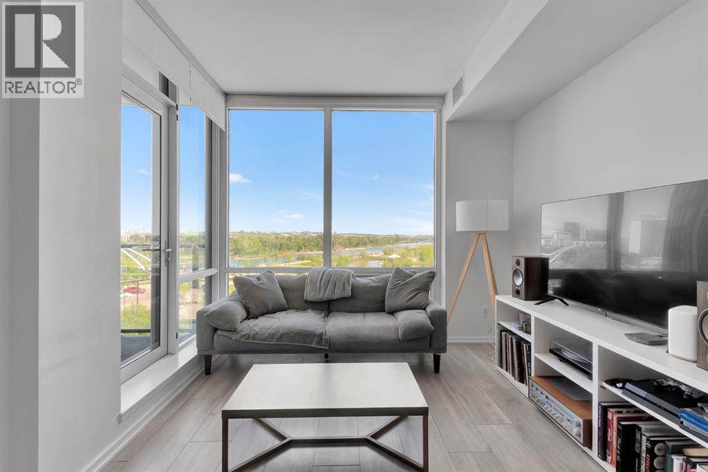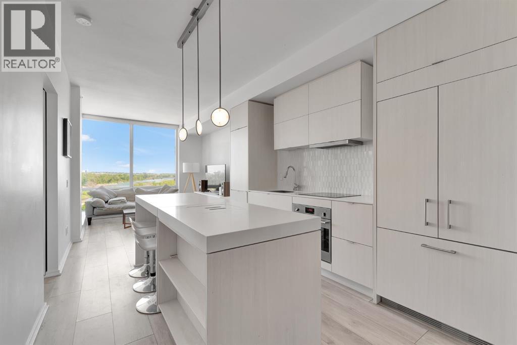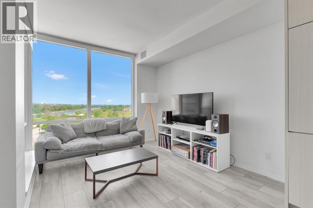 Welcome to this beautifully designed East-facing residence in the sought-after Verve tower, where you’ll enjoy unobstructed views of the Bow River and breathtaking sunrises every morning. With 684 square feet of thoughtfully utilized space, this home offers two bedrooms and two bathrooms, making it ideal for both comfortable living and versatile use. The second bedroom is perfectly suited as a guest room, home office, or den to suit your lifestyle needs.The bright and airy layout is enhanced by contemporary finishes, creating a sleek and modern atmosphere throughout. The kitchen is both stylish and functional, featuring a spacious island, built-in refrigerator and dishwasher, and streamlined cabinetry. Floor-to-ceiling windows bathe the interior in natural light and frame stunning river views, while the East-facing balcony offers a tranquil spot to relax outdoors. Additional interior features include in-suite laundry and air conditioning for year-round comfort. A titled underground parking stall and a separate assigned storage locker are also included for your convenience.As a resident of Verve, you’ll enjoy access to an impressive selection of amenities, including a state-of-the-art fitness center, bookable guest suites, a rooftop boardroom with panoramic views, and generous indoor and outdoor entertainment spaces complete with kitchens and BBQs. The building also offers concierge and security services, visitor parking, bike storage, and is pet friendly.Situated in the heart of Calgary’s dynamic East Village, this location is second to none. World-renowned attractions such as the Central Library, Studio Bell, and the Calgary Stampede grounds are just steps away, along with trendy cafes, restaurants, and convenient retail options. For those who love the outdoors, the nearby off-leash dog park and Bow River Pathway system are less than 200 meters from your doorstep. (id:53676)