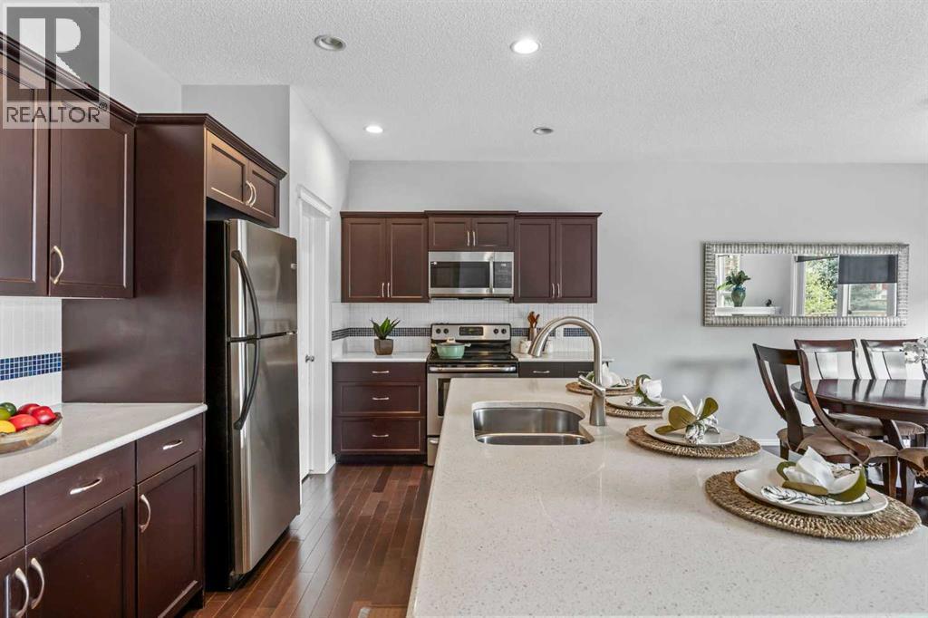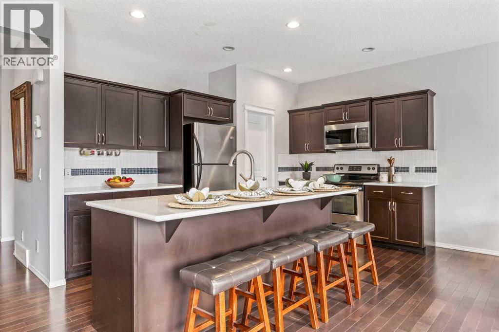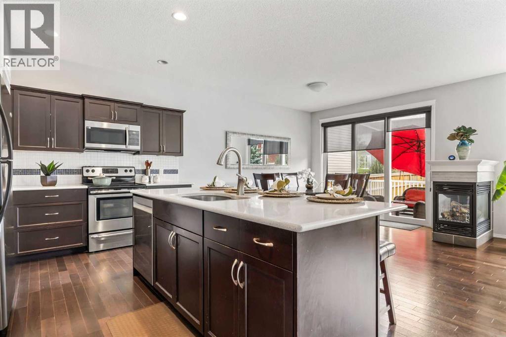 Welcome to your new home in the highly sought-after lake community of Auburn Bay, where lifestyle and comfort come together in perfect harmony. This beautifully maintained detached home with a double attached garage offers more than 3,000 sqft of thoughtfully designed living space, perfect for families! Step inside to discover 9-foot ceilings and hardwood flooring throughout the sun-soaked main level. At the front of the home, a dedicated office space features a built-in double desk with ample storage cabinets and drawers—ideal for remote work or study. The open-concept kitchen, living, and dining areas are bathed in natural southwest light from large windows that create a warm, inviting atmosphere. The kitchen boasts stainless steel appliances—including a brand-new microwave and dishwasher—quartz countertops, a central island, ample cabinetry, and a walk-through pantry connecting to the main floor laundry room with side-by-side washer and dryer and access to the garage. The three-sided fireplace serves as a stylish focal point, beautifully separating the living and dining spaces—perfect for entertaining guests or enjoying cozy family evenings. You’ll also appreciate the built-in speakers on the main floor, elevating your everyday living and hosting experiences. Step outside to a spectacular backyard oasis featuring an oversized, low-maintenance composite deck with built-in outdoor speakers. Situated on a generous lot, this sunny retreat offers all-day enjoyment and is ideal for summer barbecues, relaxing, or watching the kids play. Upstairs, the spacious primary suite overlooks the backyard and features a spa-inspired ensuite with a soaker tub, glass-enclosed shower, private water closet, large vanity, and a walk-in closet. Two additional bedrooms—one with its own walk-in closet—share a 3-piece bathroom. At the front of the home, the bonus room provides panoramic views of the green space and playground across the street and includes built-in ceiling speakers for a dded comfort and style. The fully finished basement offers incredible flexibility with a fourth bedroom and a large recreation room, currently would be a great set up as the ultimate home gym—but easily adaptable for a media room, play space, or guest retreat. Living in Auburn Bay means enjoying one of Calgary's premier lake communities, complete with exclusive resident access to the private lake, sandy beach, tennis courts, parks, and year-round recreational opportunities. With proximity to schools, South Health Campus, shopping, and Seton Urban District, you'll enjoy both tranquility and convenience. (id:53676)