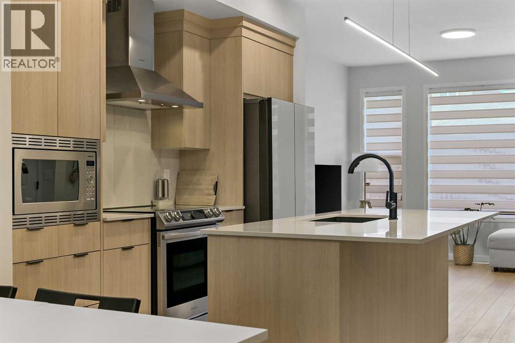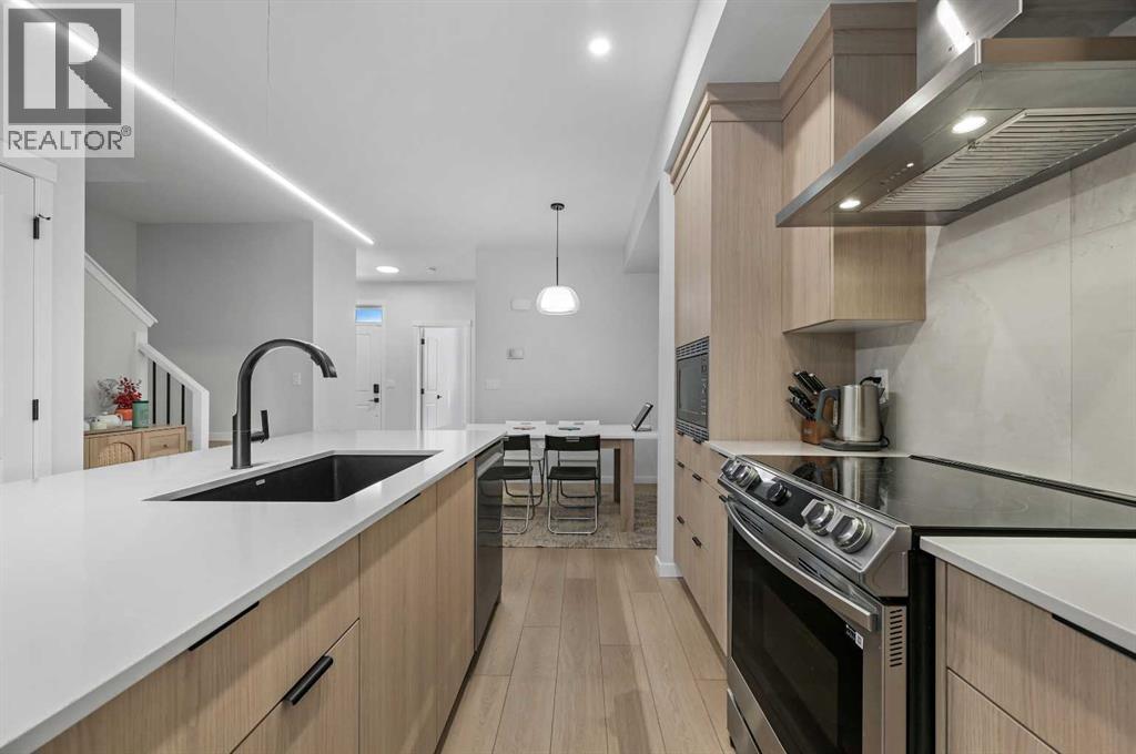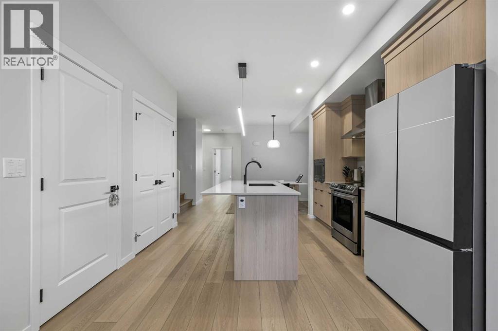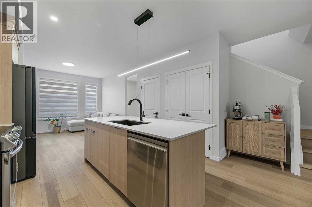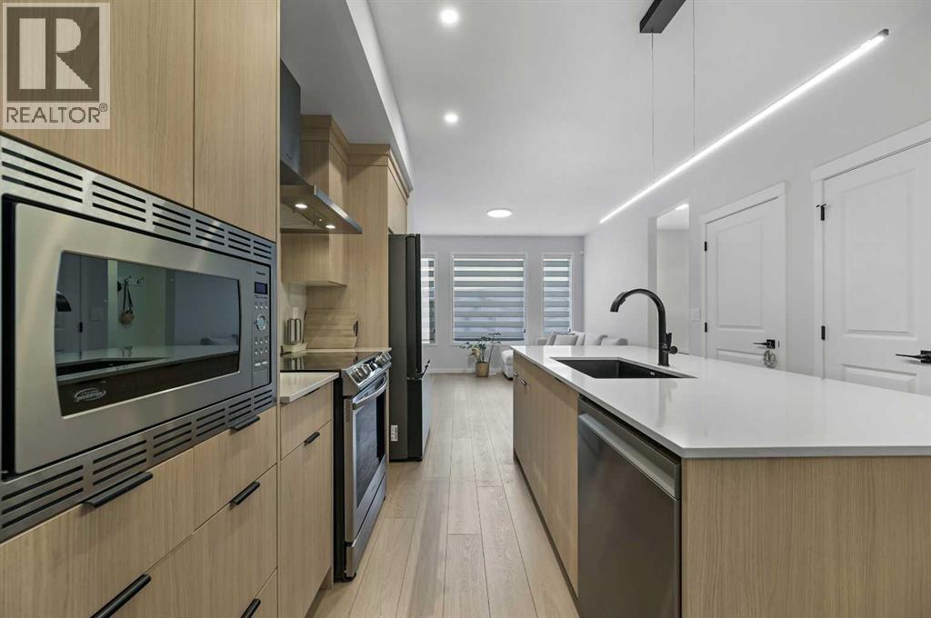 ** Great Value - $80K in upgrades - list available ** Side Entry ** Double Garage ** 1777+ Sq Ft ** 4 Bedroom home ** Immaculately maintained, almost brand new, bright and open plan. Modern design 2-story home in the heart of the vibrant Livingston community. Located on a fully paved lane with well-maintained double garages, offering a clean and organized rear access rarely found. GOURMET KITCHEN - CHEF'S DELIGHT! Custom features include upgraded classic wood-style cabinet doors, an efficient family-approved layout with stainless steel appliances (including a smooth-top stove), a glass panel front fridge, a central island with a flush eating bar, an undermount black granite sink, quartz countertops, custom full-height backsplash tile, and a stainless steel hood fan. The spacious dining room and great room bookend the open design, all of which feature 9-foot ceilings. The larger floor plan features a front main floor bedroom/office/den, an oversized front foyer, a back mudroom, a staircase with railings, and a landing. Super bright design!! All flooring is upgraded with wide-plank LVP hardwood flooring on the main floor and tile floors in the upper bathrooms- no carpet! BONUS: The upstairs bonus room is perfect for a home office, spare bedroom, or extra TV room. Three generously sized bedrooms & 2.5 bathrooms. NOTE: The primary bedroom features a private 3-piece en-suite with an upgraded sink basin, quartz countertops, and a spacious walk-in tiled shower with glass doors. Other upgrades include custom window coverings, an unspoiled basement with high 9' ceilings, side entry, oversized windows, a rough-in bathroom, and a 22' x 22' double-car garage with room for extra street parking out front. Excellent curb appeal with a covered front porch, fully landscaped with a walkway and fencing, all complete. Available for a 30/60 day possession date. Please feel free to call your friendly REALTOR(R) to view. (id:53676)
