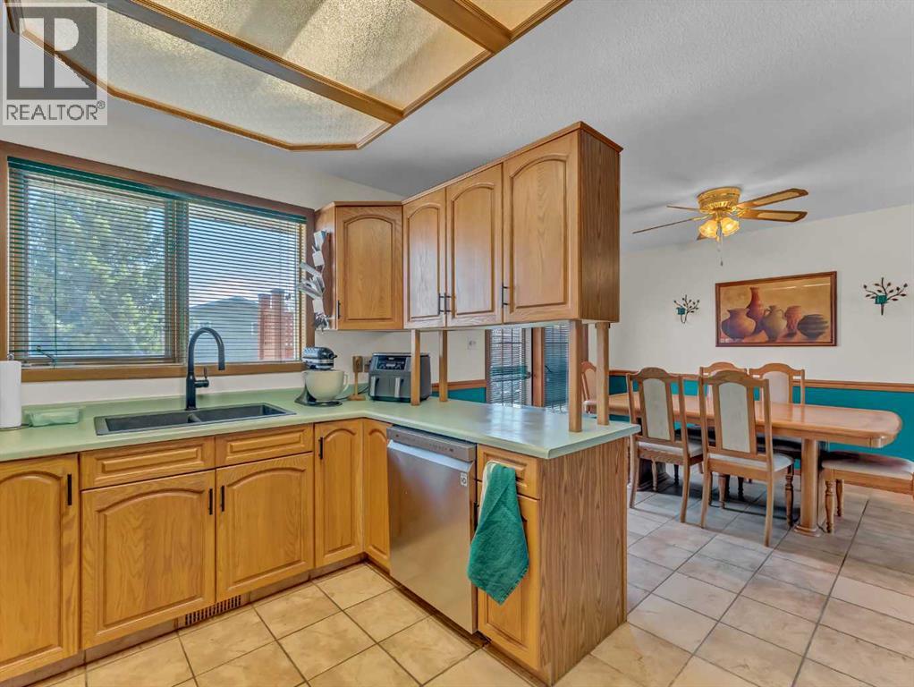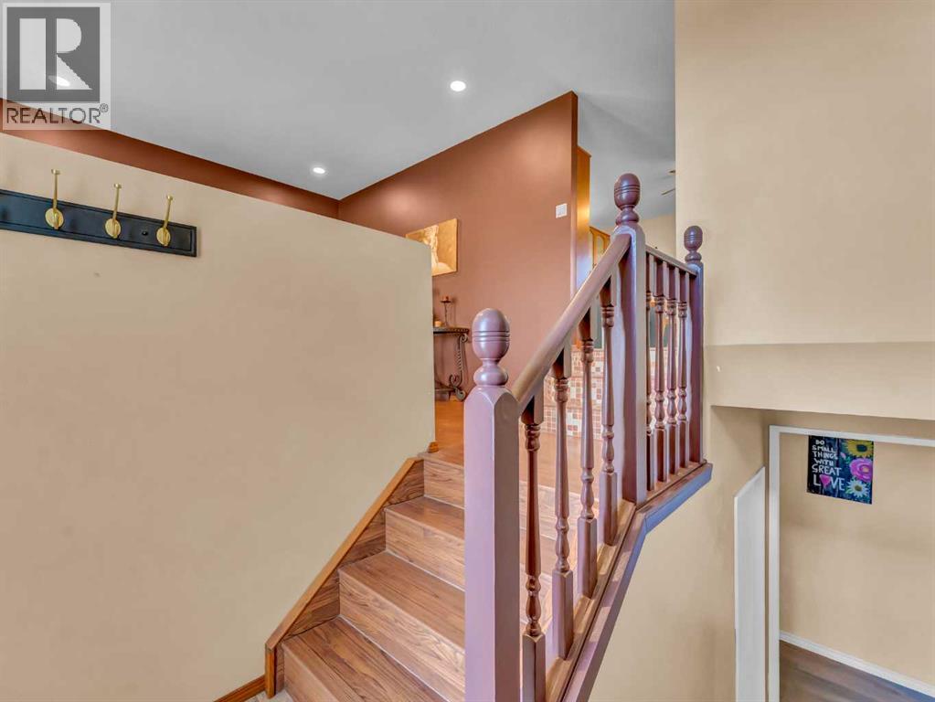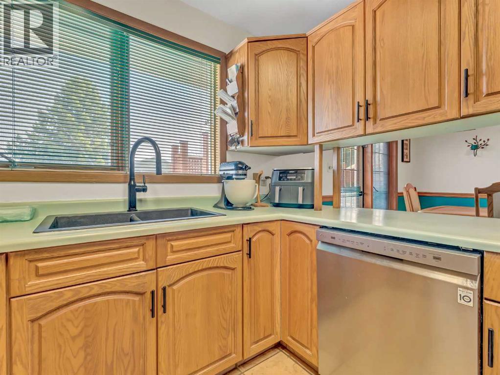 Welcome to this one-owner, custom-built home in the heart of Southridge—perfectly situated in SE Southridge and just a short walk to parks, schools, playgrounds, and scenic walking paths. This is a location that truly supports everyday living. This home offers 4 bedrooms (3 up, 1 down) and a layout that stands out from the rest. The main floor features a sunken living room with impressive ceiling height and beautiful natural light that fills the space and flows effortlessly into the rest of the home. Just a few steps up, you’ll find the open-concept kitchen and dining area—designed for both function and connection. The kitchen showcases oak cabinetry with updated modern hardware, a smart, usable layout, and a granite sink. The dining area is spacious and positioned at the back of the home, with direct access to your private upper deck—ideal for hosting or simply unwinding. Down the hall, you’ll find a full 4-piece bathroom, two well-sized secondary bedrooms, and a comfortable primary retreat complete with a walk-in closet and its own 3-piece ensuite. The fully developed basement adds even more versatility, featuring newly installed vinyl plank flooring, a large family room with rough-in for a future wet bar, and a fourth bedroom. One of the standout features down here is the spa-inspired relaxation space with a massive jetted tub—your own private escape at the end of the day. There’s also a 2-piece bathroom, dedicated laundry room, utility space with extra storage, and a unique bonus area tucked beneath the sunken living room—perfect as a kids’ playroom, extra storage, or flex space to suit your needs. Outside, the fully fenced yard is set up for both privacy and enjoyment. The upper deck features low-maintenance composite decking, a gas line for your BBQ (included—bonus), and access down to the landscaped yard with underground sprinklers. The front of the home offers great curb appeal, with a double attached garage and the added benefit of a corner lot. A solid, we ll-cared-for home in a highly desirable neighborhood—this one is easy to love. Furnace and HWT are two years old, vinyl flooring in the basement is a year and half. (id:53676)