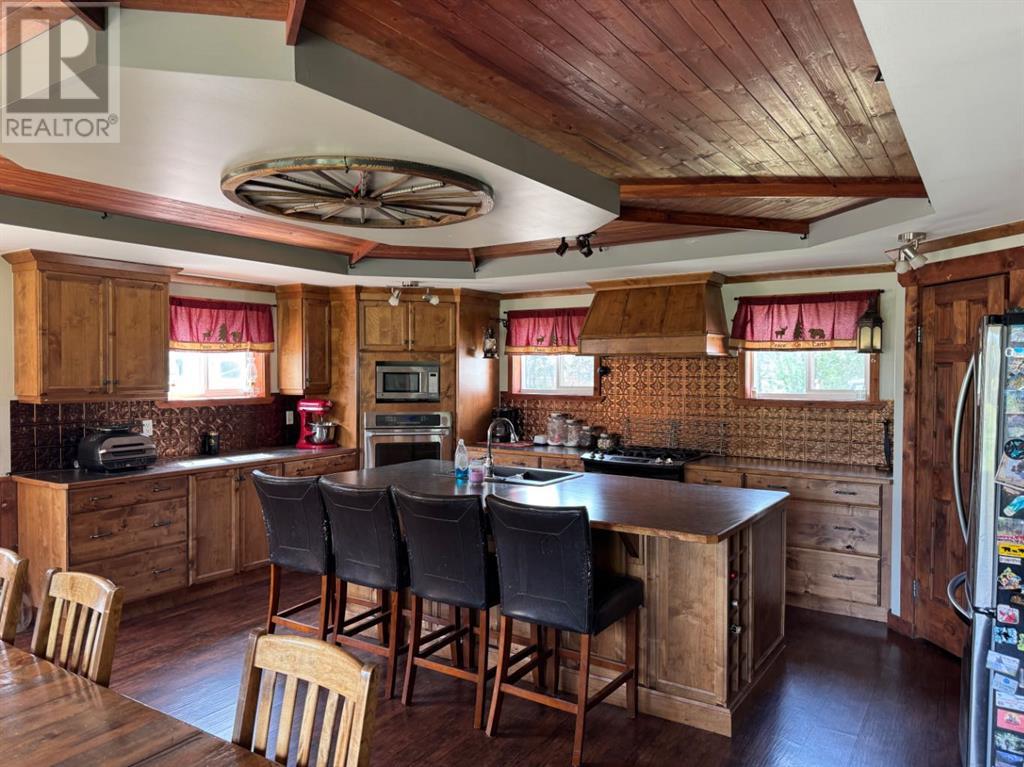Rare Opportunity – 160 Acre Turnkey Farm Property with Home, Hay, Tree Nursery & More!Welcome to this exceptional 160-acre farm, perfectly set up for a thriving agricultural or ranching operation with all the comforts of country living. This well-rounded property features 120 acres of productive hay land and an additional 25 acres home to a lucrative tree nursery, boasting over 2,000 mature blue spruce trees (4–8 feet tall) planted in 2012—ready for harvest and profit.Fully fenced and cross-fenced, the land is ideal for horses or cattle and includes six dugouts to ensure ample water supply year-round. The 24x48 barn is ready for livestock with seven stalls, a heated tack room, calving room, and a rolling mill to process your own feed. Three additional horse shelters complete the setup.At the heart of the property sits a stunning 2,946 sq ft home built in 2018. This spacious residence offers 6 bedrooms, 3 bathrooms, 2 inviting living rooms, and a custom kitchen with a massive island, perfect for hosting and everyday living. The home features 10’ ceilings on the main floor, a heated attached garage, laundry on both levels, a wet bar, and a luxurious master ensuite with a jetted tub.Outside, you’ll find a collection of useful outbuildings including multiple sheds, an older garage, a chicken coop, and a greenhouse. A beautifully treed area with mature spruce includes scenic trails and a private campground—perfect for peaceful getaways or guest enjoyment.Whether you’re expanding your farming operation or looking for a self-sustaining lifestyle in a serene setting, this property offers incredible value and versatility. Don’t miss your chance to own this private, income-producing oasis! (id:53676)