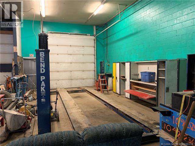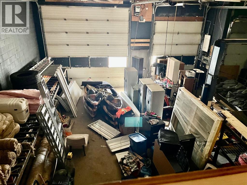 Commercial building on main street in Caroline. Lots of opportunity here with the front being all retail space and windows visible to main street. The back of the building houses 3 big bays 17X59, 12X43, 19X34 with over head doors being 12 and 14 feet. This building has a mezzanine with room for storage, office space and accommodations. The front half is currently set-up as office space, kitchen and washroom. Beautiful updated board-room or office space with gas fireplace is an ideal space. In the loft area there is a bedroom space, 3 office spaces and 2 lounging areas. Some recent improvements include; paint, laminate flooring, furnace, a/c, electrical panel, updated washrooms (3-pce. w. shower & 2-pce.), sound proof insulation above the board room. Lots of room for many types of businesses. The building was used for a delivery business and mechanics shop. (id:53676)