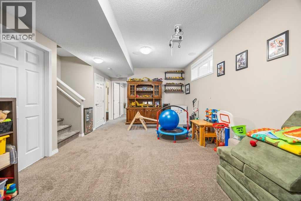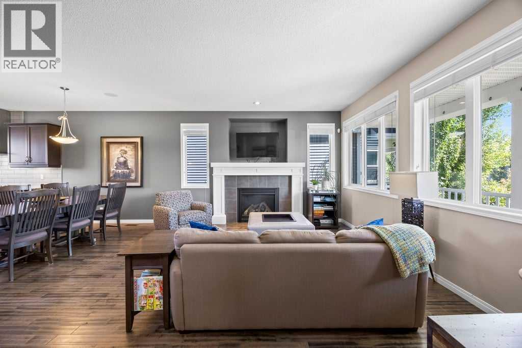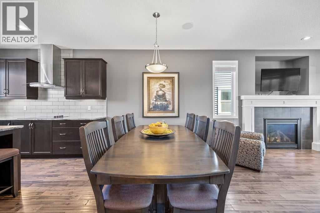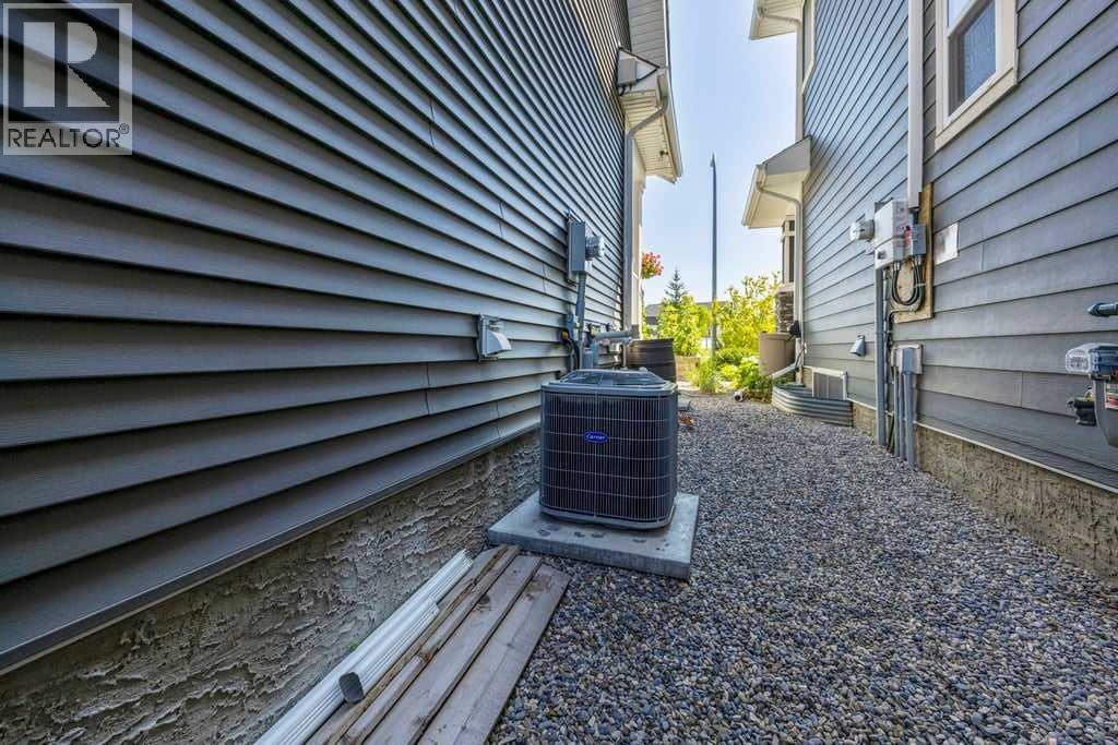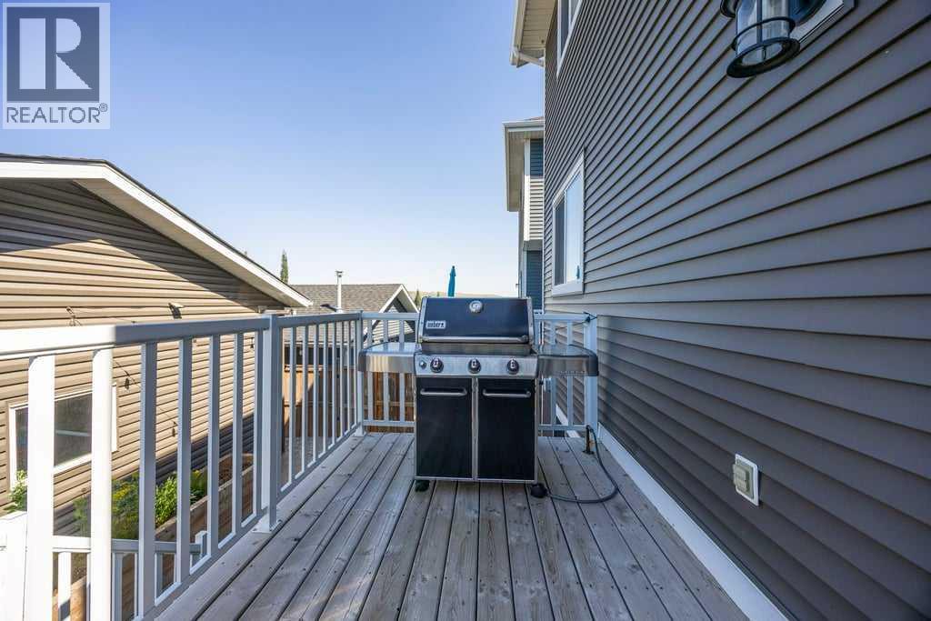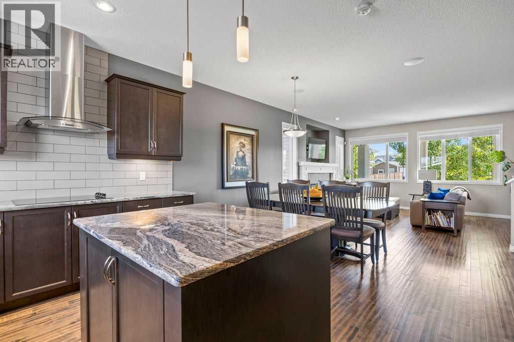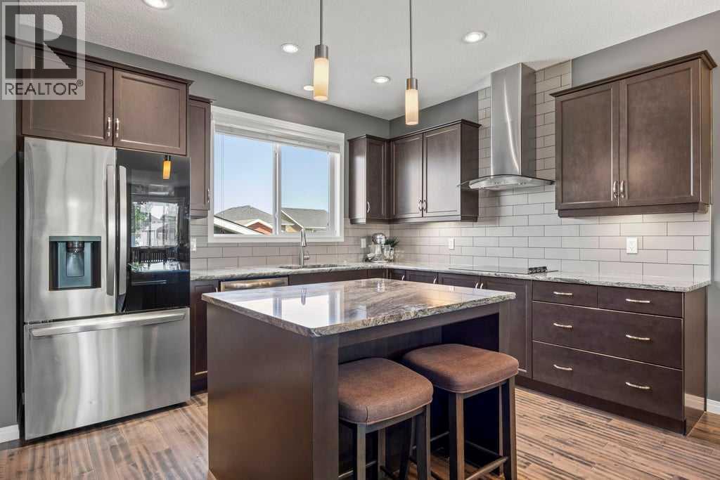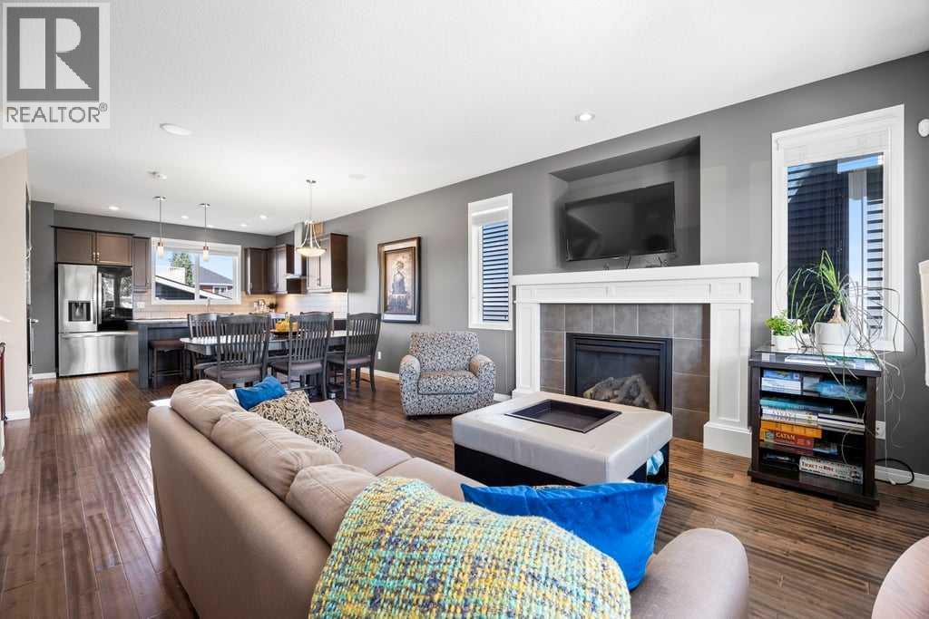 This pristine Jayman-built "Opus" offers 4 bedrooms, 3.5 bathrooms, and a bonus room, all wrapped in thoughtful upgrades and a prime location in the scenic community of Riversong.Enjoy privacy with a park right across the street, plus southern exposure that fills the backyard with warm evening sunshine. Outdoor living is effortless with low-maintenance landscaping, Gemstone Soffit exterior lighting, a gas BBQ hookup, an elevated deck, and a lower patio—perfect for relaxing or entertaining. An oversized 24' × 24' garage—insulated, drywalled, heated, wired for 220 V, and complete with an 8' × 18' door—adds incredible functionality for vehicles, hobbies, or storage.Inside, the open-concept main level impresses with 9' ceilings, built-in speakers, and a top of the line kitchen featuring stainless steel appliances, ample counter space, and a sink overlooking the backyard. A separated dining space offers flexibility for casual family dinners or more formal gatherings.Upstairs, three bedrooms include a bright primary retreat with ensuite, complemented by a spacious bonus room perfect for family movie nights or a play area. A full bathroom serves the additional bedrooms, while a half bath on the main level adds convenience.The fully finished builder-developed basement extends your living space with 9' ceilings, wiring for a projection TV and surround sound, a large rec room, fourth bedroom, and another full bathroom—ideal for guests or growing families.Steps from pathways, the Bow River, and rolling hills, Riversong blends small-town charm with natural beauty and easy access to Calgary, schools, and local amenities. (id:53676)