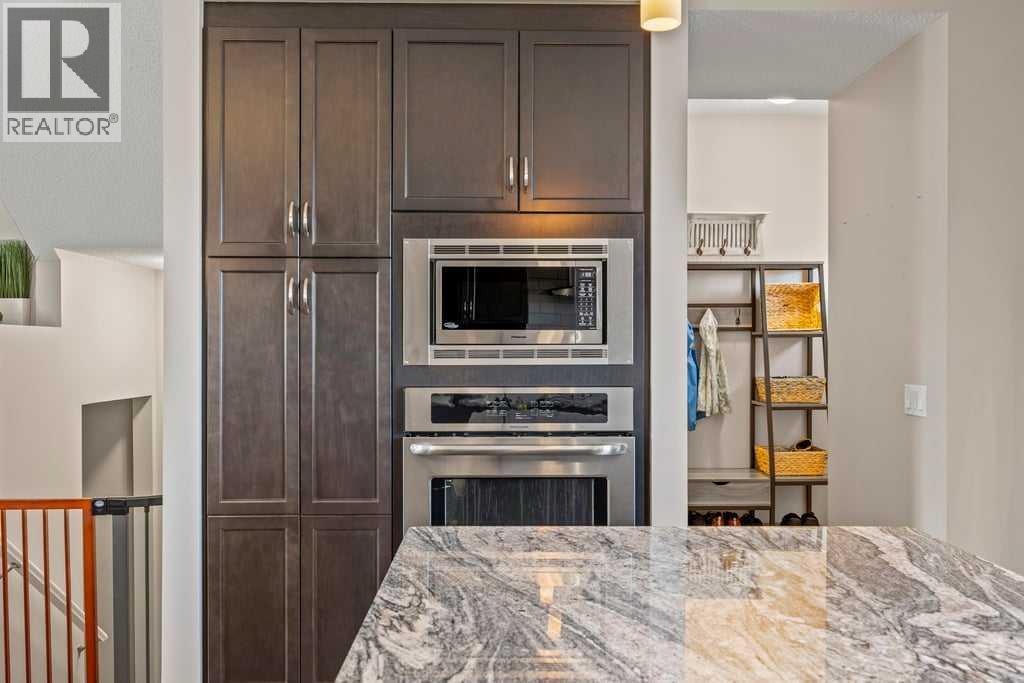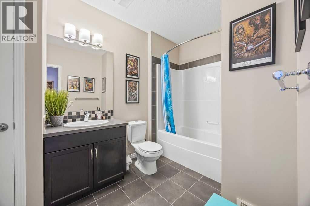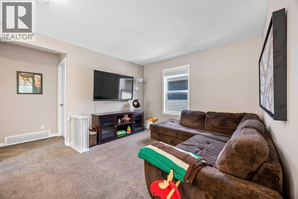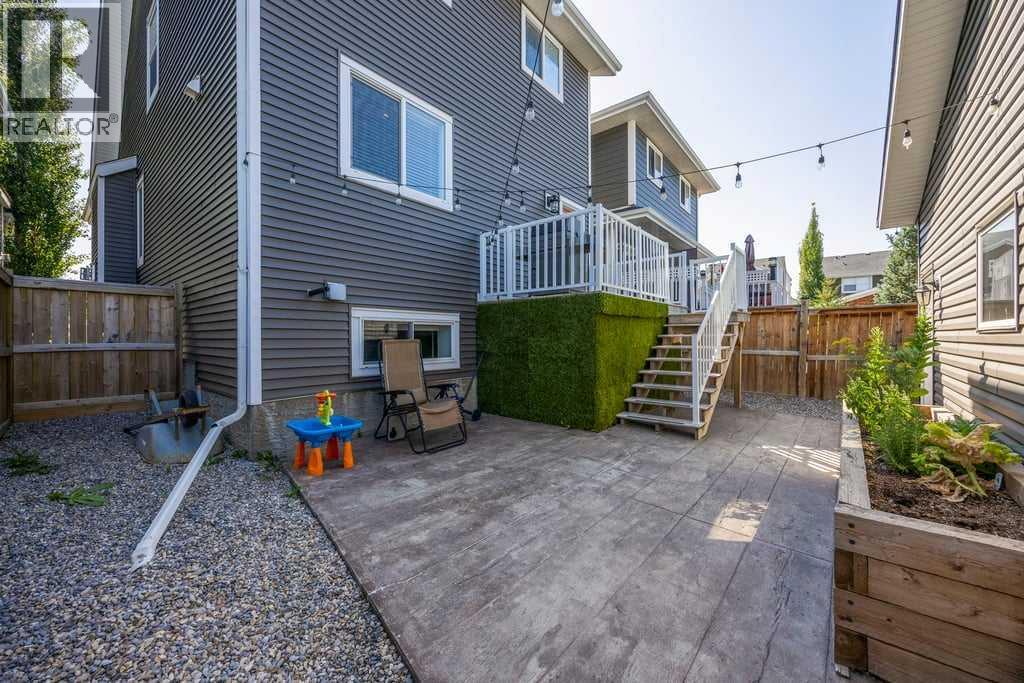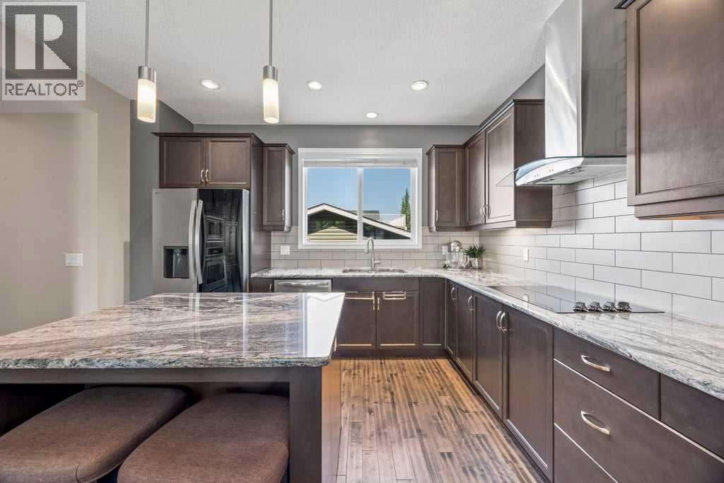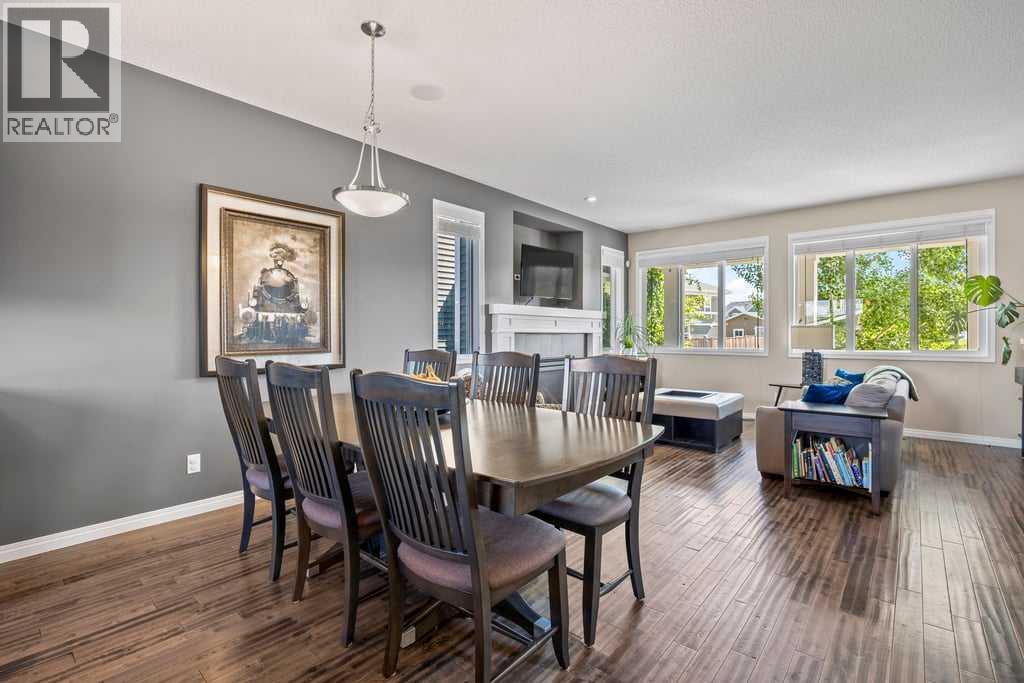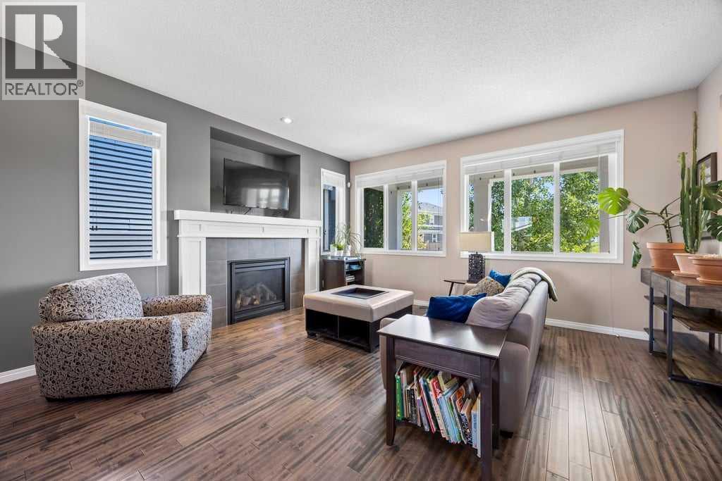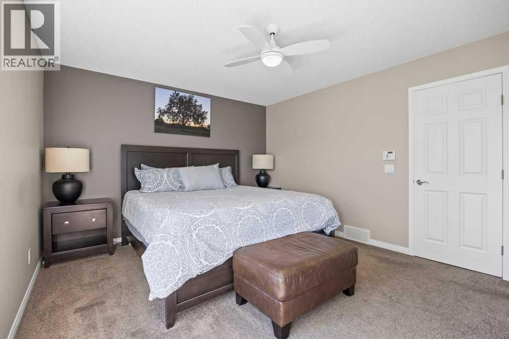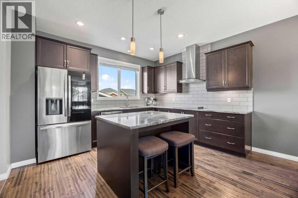 This pristine Jayman-built "Opus" offers 4 bedrooms, 3.5 bathrooms, and a bonus room, all wrapped in thoughtful upgrades and a prime location in the scenic community of Riversong.Enjoy privacy with a park right across the street, plus southern exposure that fills the backyard with warm evening sunshine. Outdoor living is effortless with low-maintenance landscaping, Gemstone Soffit exterior lighting, a gas BBQ hookup, an elevated deck, and a lower patio—perfect for relaxing or entertaining. An oversized 24' × 24' garage—insulated, drywalled, heated, wired for 220 V, and complete with an 8' × 18' door—adds incredible functionality for vehicles, hobbies, or storage.Inside, the open-concept main level impresses with 9' ceilings, built-in speakers, and a top of the line kitchen featuring stainless steel appliances, ample counter space, and a sink overlooking the backyard. A separated dining space offers flexibility for casual family dinners or more formal gatherings.Upstairs, three bedrooms include a bright primary retreat with ensuite, complemented by a spacious bonus room perfect for family movie nights or a play area. A full bathroom serves the additional bedrooms, while a half bath on the main level adds convenience.The fully finished builder-developed basement extends your living space with 9' ceilings, wiring for a projection TV and surround sound, a large rec room, fourth bedroom, and another full bathroom—ideal for guests or growing families.Steps from pathways, the Bow River, and rolling hills, Riversong blends small-town charm with natural beauty and easy access to Calgary, schools, and local amenities. (id:53676)