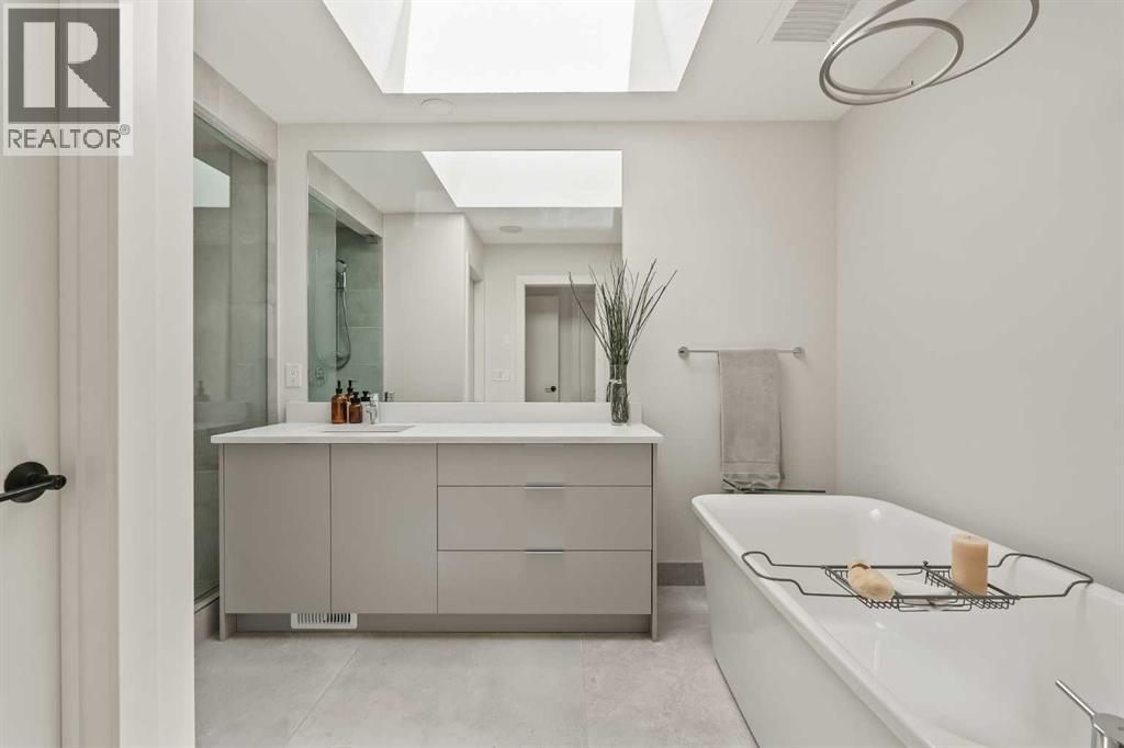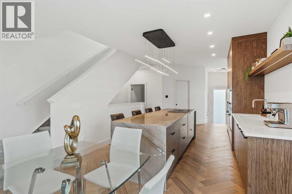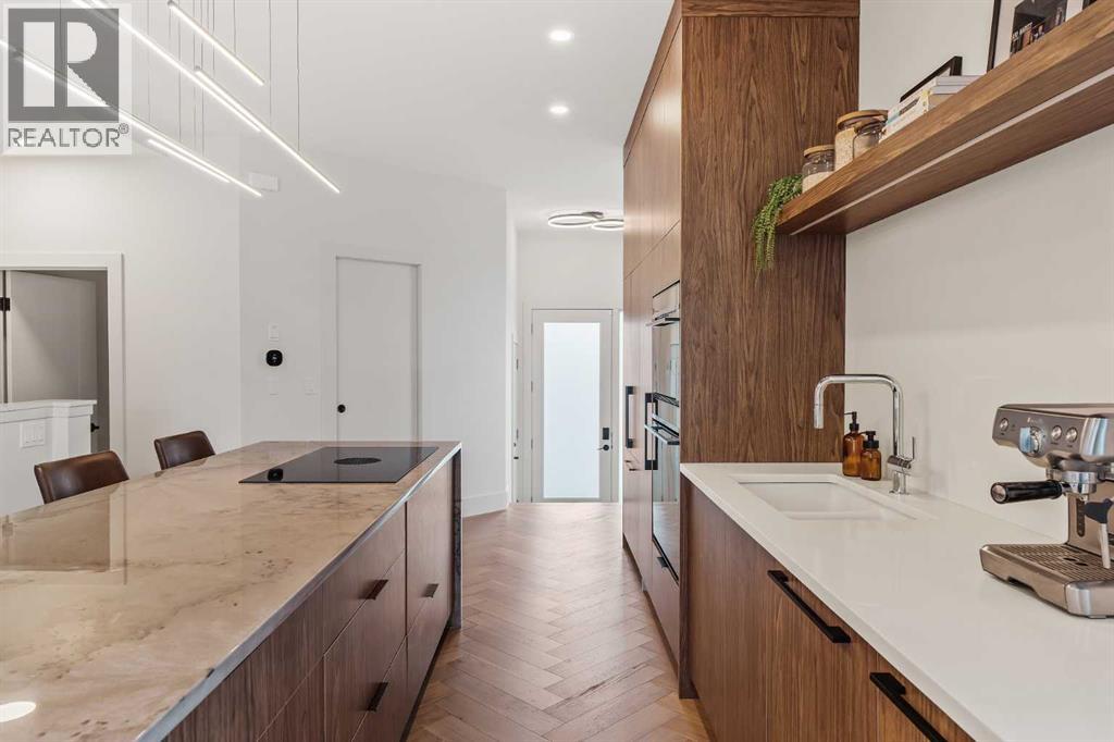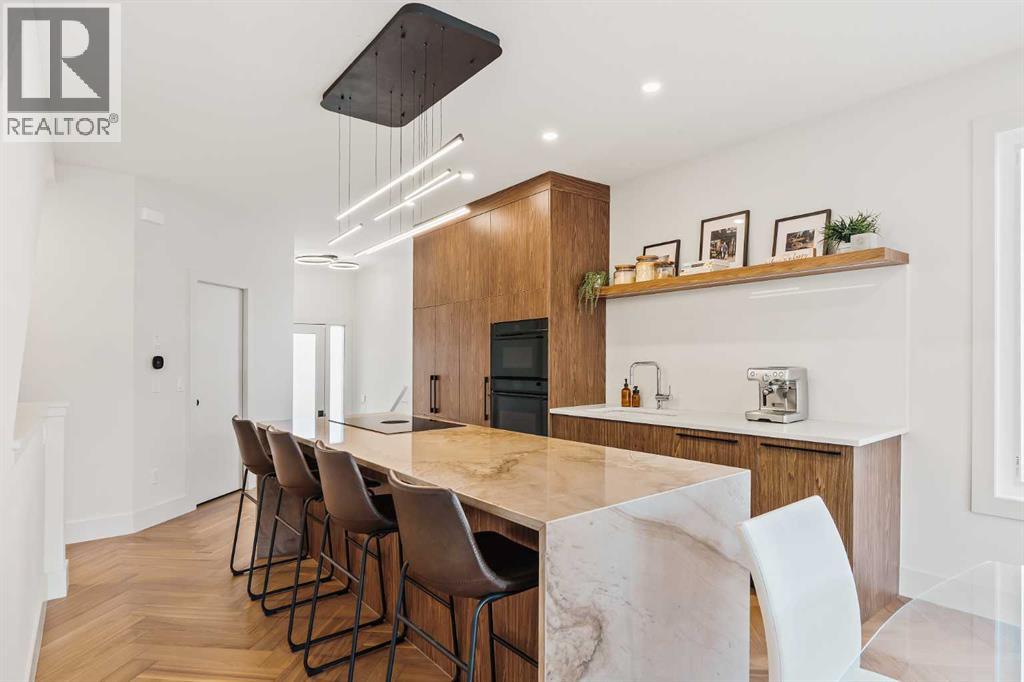 ***OPEN HOUSE Saturday October 11th from 11am - 1pm*** Form. Function. Flow. Welcome home to 514 19th Street NW. This 2 storey semi-detached custom home features 4 bedrooms, 3.5 bathrooms, and single attached garage. This home's design and lay-out is ideal for couples or young families. With each space flowing seamlessly into the next, and function at its helm, 514 is truly a peaceful haven. As you enter the home, your eyes are naturally drawn to the rear glass sliding patio doors, which extend the living space into the backyard during the warmer months. Upgraded built-in Fisher & Paykel appliances, and thoughtful cabinetry, all add to the everyday ease of being in the gourmet kitchen. The stunning quartzite waterfall island is a natural hub where family and friends will gather, keeping the host central to the party. The herringbone engineered hardwood floors direct you to the living room, where you can relax by the gas fireplace and cozy up with a book (or two). Lounge in your backyard and enjoy the warmth of the fire at the poured in place, custom concrete gas fire table. This home is drenched in sunlight throughout the day, with the primary bedroom awakened by the sunrise in the east, and the front of the home warmed by the sunset in the west. As you ascend to the upper level, the stairwell is brightened by 1 of 3 skylights. A flex space currently utilized as a playroom greets you at the top of the stairs, and can easily be transformed into an office, library, or upper family room. Two well sized bedrooms and a four piece bathroom, where the 2nd skylight is located, complete the west end of the second floor. Moving to the rear of this level, you will find the sanctuary of the primary bedroom. Upon entering, the room is flooded with natural light through the large bright windows. The vaulted ceilings provide a sense of spaciousness, while the fireplace adds warmth and intimacy. Subtly tucked behind pocket doors can be found the walk-in closet, stacked washer and d ryer, and spa inspired primary ensuite where the 3rd skylight illuminates the space. Luxuriate in baths in the freestanding tub, and wash away the day's stresses in the glass enclosed shower. Continue your evening by heading to the lower level, and enjoy the custom built-in bar. The 4th bedroom, four piece bathroom, lounge area, and utility room complete this floor. This home is fantastically located within West Hillhurst: walk in any direction and within 5 minutes you will find a green space and/or playground, the West Hillhurst Community Association, Bowview Outdoor swimming pool (now open!), Dairy Lane Cafe + Pocket Coffee, Queen Elizabeth schools, Made by Marcus, Amato Gelato, and quick access to Memorial Drive, Crowchild Trail, or 16th Avenue to get you anywhere in the city. The 5 and 10 year Alberta New Home Warranty Program are applicable. This home is truly a standout gem that must be seen in person to be fully appreciated. (id:53676)