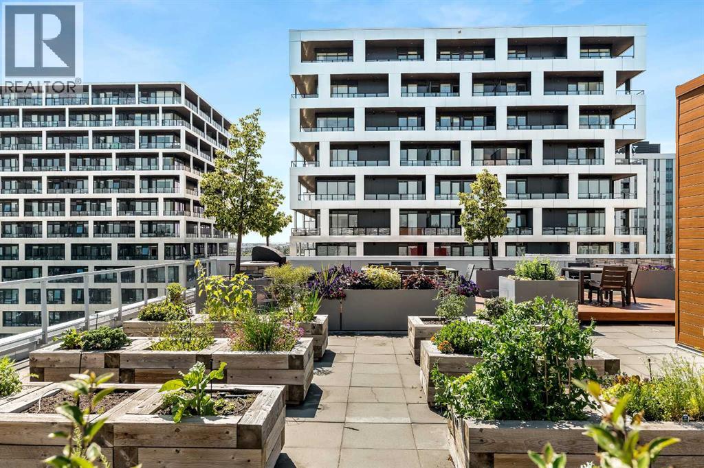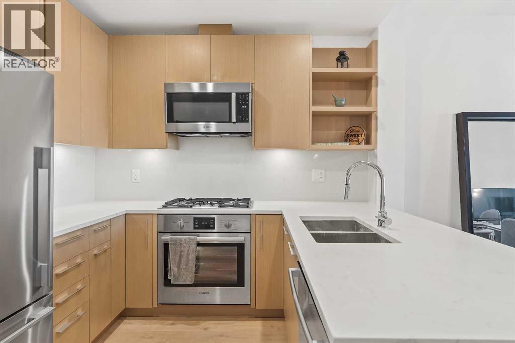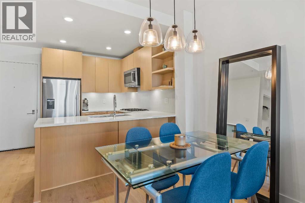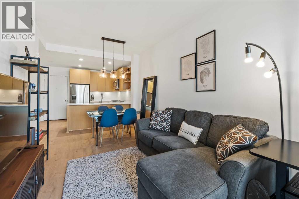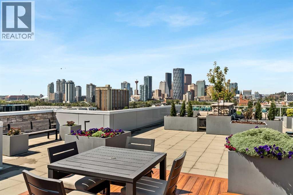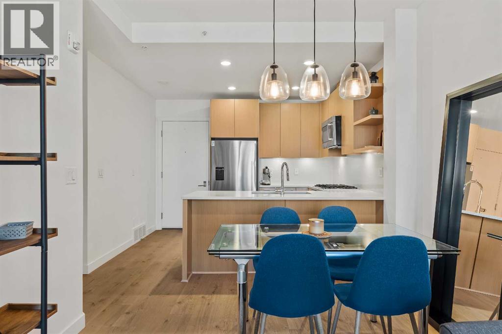 Live in style in the heart of Bridgeland! This well designed one bedroom features wide plank flooring, quartz counters, Bosch stainless steel appliances, and a spacious open layout. The balcony includes custom tile flooring and partial cover for year round use. The bedroom offers a walk through closet and a large bathroom with an extended vanity, stand up shower, and separate soaking tub. Enjoy in-suite laundry with extra storage, titled underground parking, and an extra secure storage locker located just across the hallway on the fifth floor. Radius is a LEED certified concrete building with concierge, rooftop terrace, garden plots, spin room, dog and car wash stations, bike workshop, and two full gyms with a yoga studio. Steps from the C Train, River Pathways, and some of Calgary’s best spots including Shiki Menya, UNA Pizza, OEB Breakfast, Lil' Empire, Village Ice Cream, and Phil and Sebastian Coffee. This is the best one bedroom floor plan in the building and has been meticulously cared for by its original owner, pride of ownership is evident throughout. This building has an excellent board and a considerable reserve fund, and would make an excellent investment whether you are a first time homebuyer, downsizer or investor. Quick possession available. (id:53676)