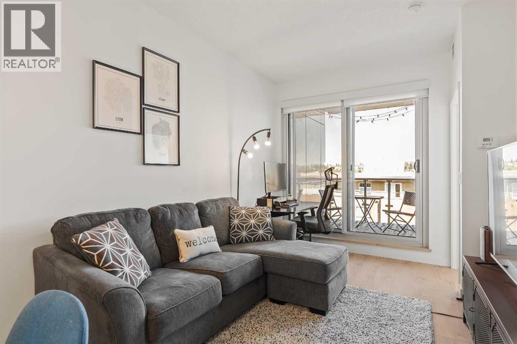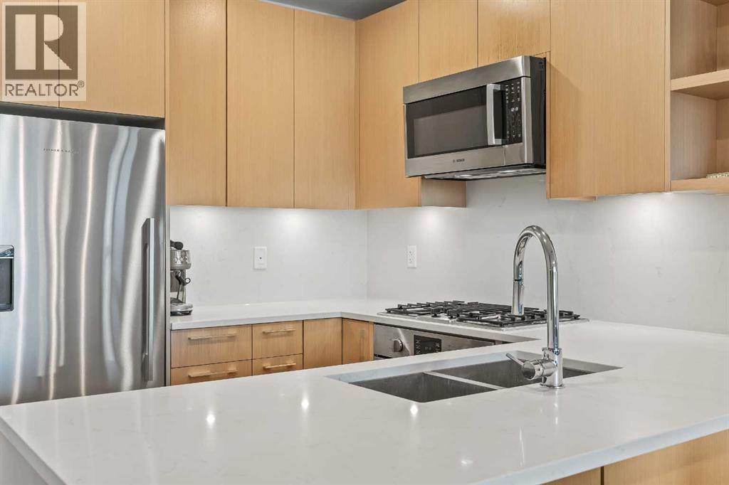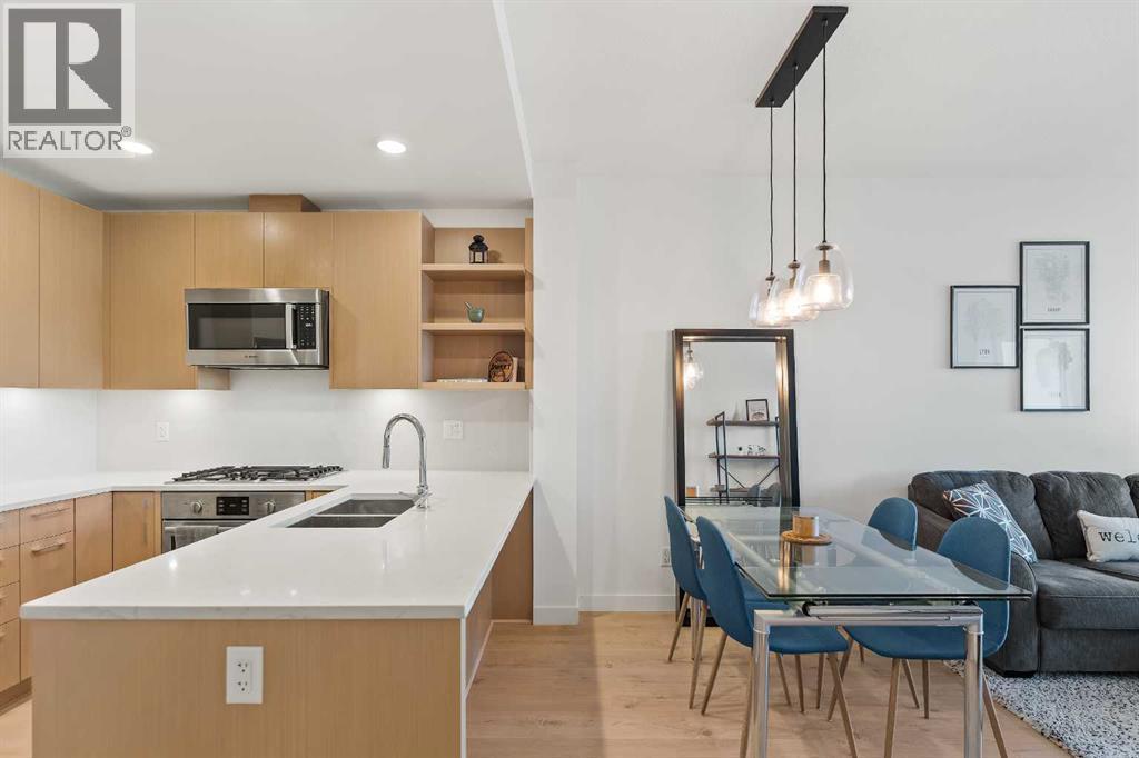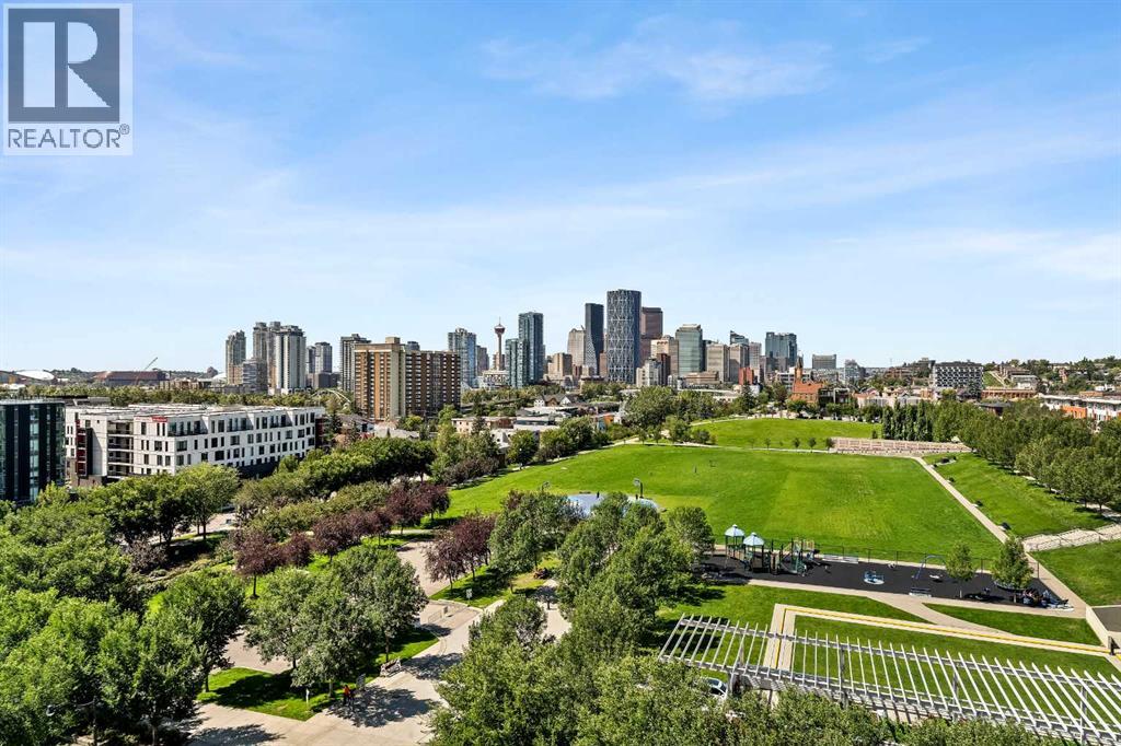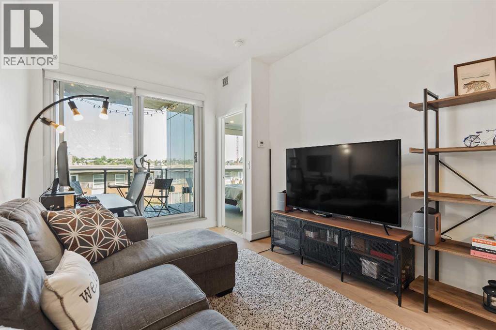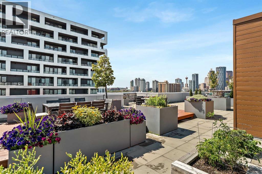 Live in style in the heart of Bridgeland! This well designed one bedroom features wide plank flooring, quartz counters, Bosch stainless steel appliances, and a spacious open layout. The balcony includes custom tile flooring and partial cover for year round use. The bedroom offers a walk through closet and a large bathroom with an extended vanity, stand up shower, and separate soaking tub. Enjoy in-suite laundry with extra storage, titled underground parking, and an extra secure storage locker located just across the hallway on the fifth floor. Radius is a LEED certified concrete building with concierge, rooftop terrace, garden plots, spin room, dog and car wash stations, bike workshop, and two full gyms with a yoga studio. Steps from the C Train, River Pathways, and some of Calgary’s best spots including Shiki Menya, UNA Pizza, OEB Breakfast, Lil' Empire, Village Ice Cream, and Phil and Sebastian Coffee. This is the best one bedroom floor plan in the building and has been meticulously cared for by its original owner, pride of ownership is evident throughout. This building has an excellent board and a considerable reserve fund, and would make an excellent investment whether you are a first time homebuyer, downsizer or investor. Quick possession available. (id:53676)