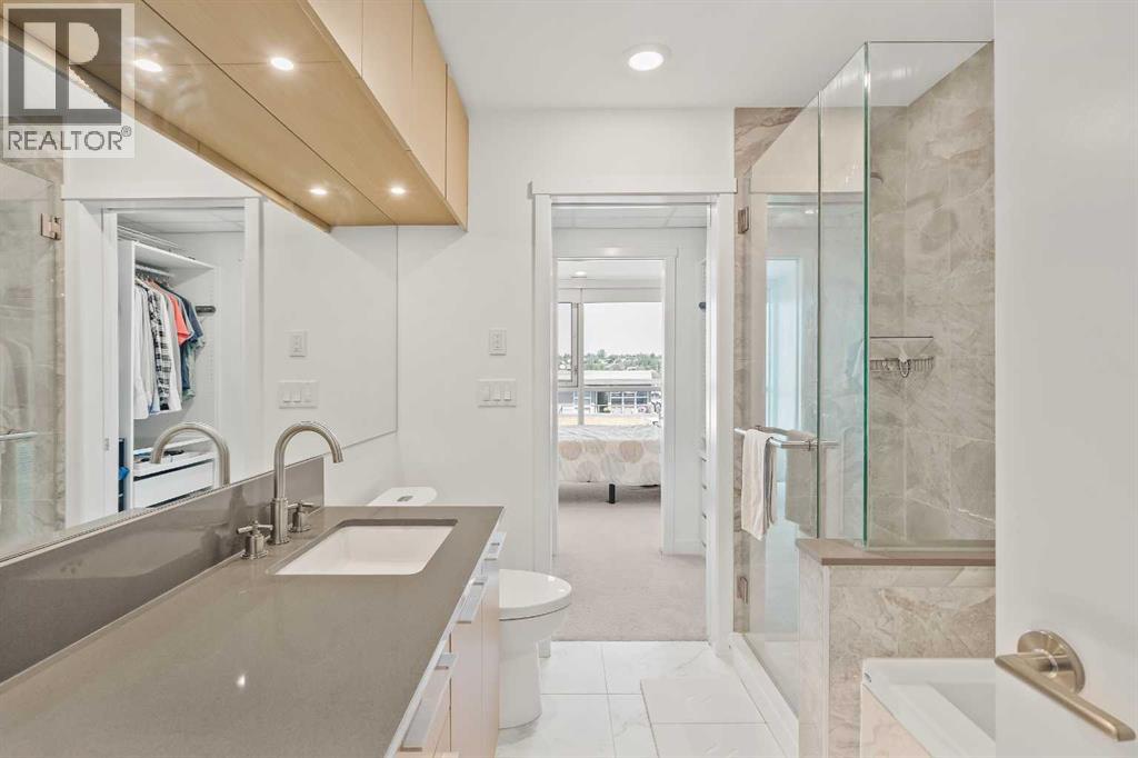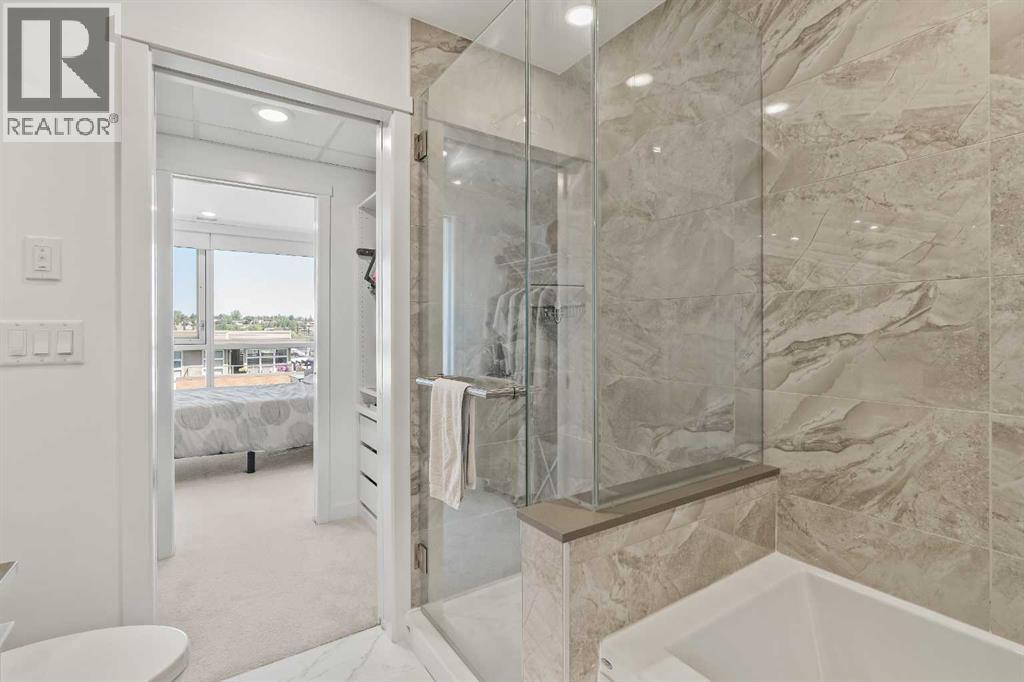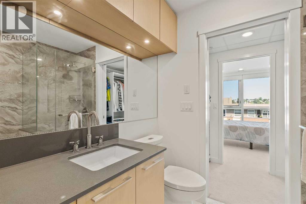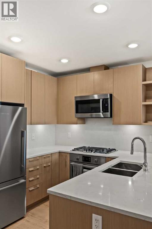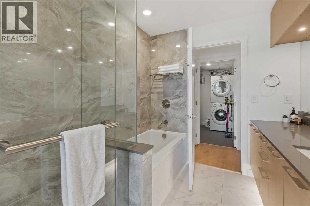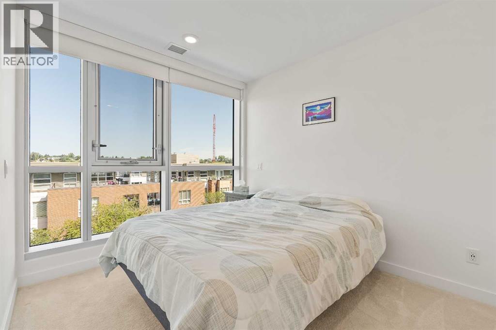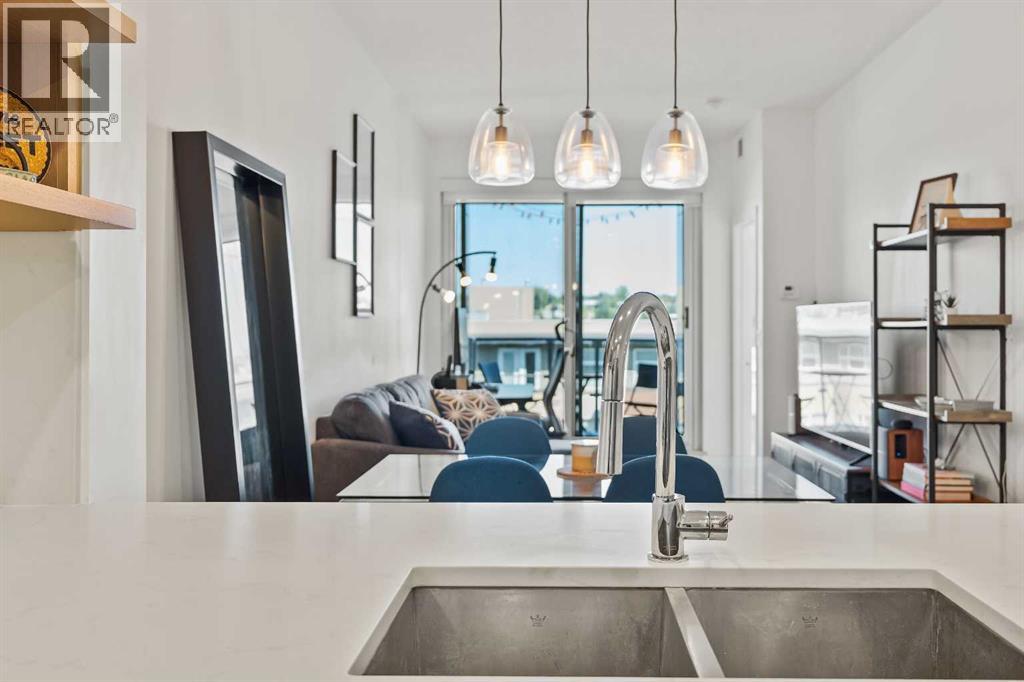 Live in style in the heart of Bridgeland! This well designed one bedroom features wide plank flooring, quartz counters, Bosch stainless steel appliances, and a spacious open layout. The balcony includes custom tile flooring and partial cover for year round use. The bedroom offers a walk through closet and a large bathroom with an extended vanity, stand up shower, and separate soaking tub. Enjoy in-suite laundry with extra storage, titled underground parking, and an extra secure storage locker located just across the hallway on the fifth floor. Radius is a LEED certified concrete building with concierge, rooftop terrace, garden plots, spin room, dog and car wash stations, bike workshop, and two full gyms with a yoga studio. Steps from the C Train, River Pathways, and some of Calgary’s best spots including Shiki Menya, UNA Pizza, OEB Breakfast, Lil' Empire, Village Ice Cream, and Phil and Sebastian Coffee. This is the best one bedroom floor plan in the building and has been meticulously cared for by its original owner, pride of ownership is evident throughout. This building has an excellent board and a considerable reserve fund, and would make an excellent investment whether you are a first time homebuyer, downsizer or investor. Quick possession available. (id:53676)