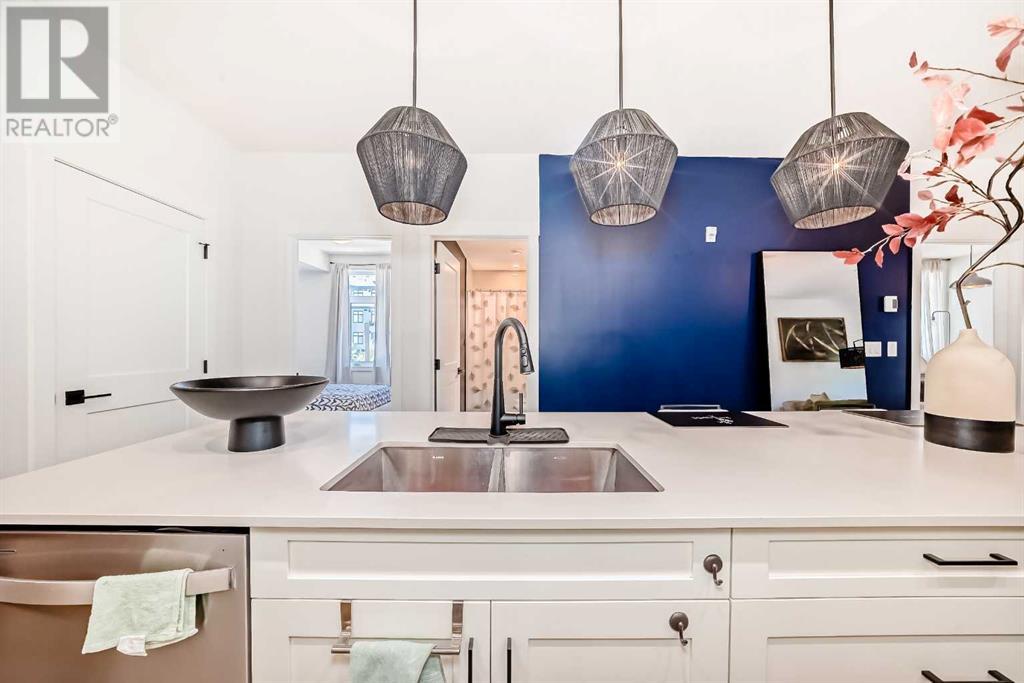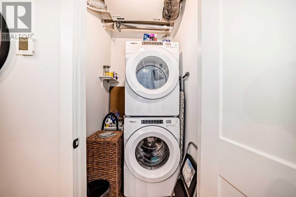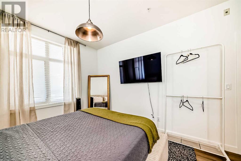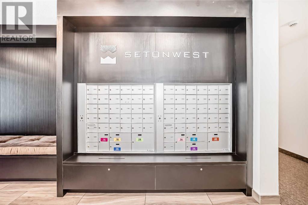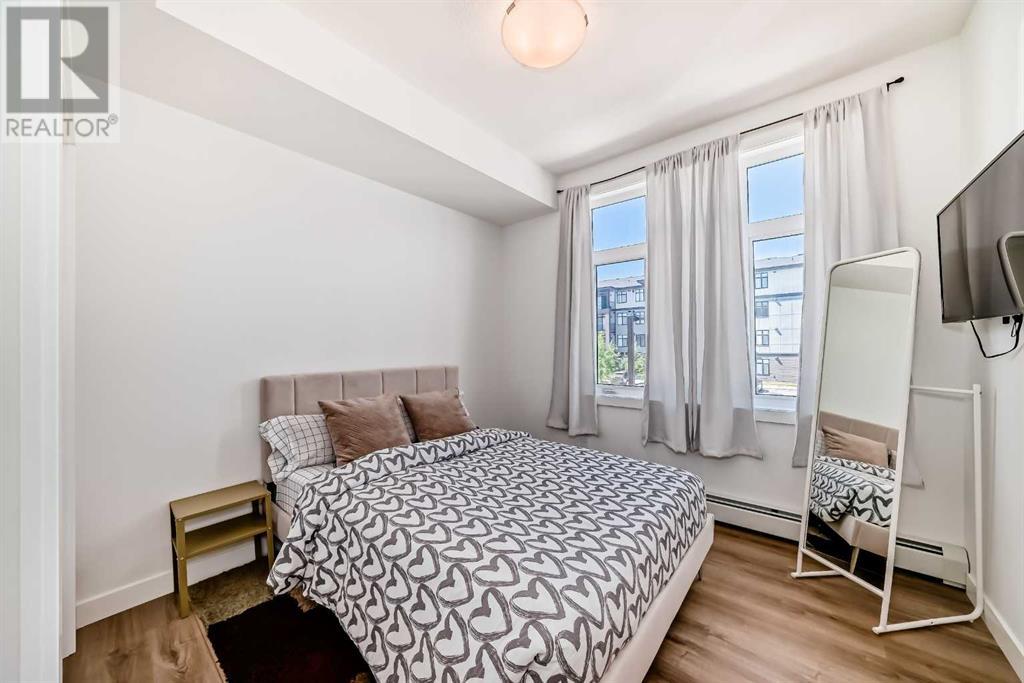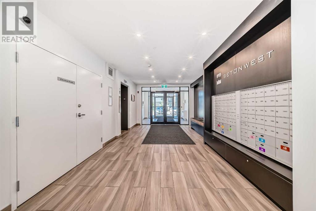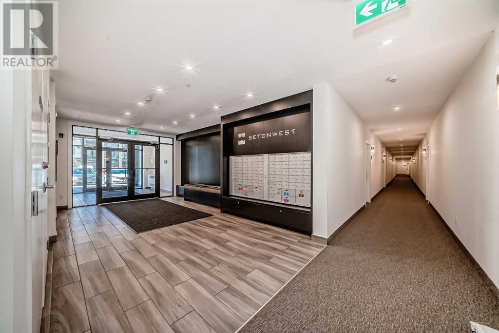 Welcome to this beautifully upgraded second-floor corner unit in the heart of Seton—offering over 957 sq. ft. of thoughtfully designed living space with premium builder enhancements throughout. Perfect for first-time buyers, professionals, or those looking to downsize without compromising on quality, this home offers a perfect blend of comfort, style, and location.Situated in the vibrant Seton West community, you'll enjoy unrivaled access to shops, restaurants, the South Health Campus, the YMCA, and the future Green Line LRT. With quick access to Deerfoot and Stoney Trail, commuting across the city is effortless.Inside, a welcoming foyer leads you into an expansive open-concept living area. The designer kitchen is a true centrepiece—featuring a custom-extended island, full-height quartz backsplash, built-in wall oven, and a chimney-style hood fan. Pot drawers, upgraded fixtures, and a sleek matte black faucet complete this culinary showstopper.The kitchen flows seamlessly into the spacious dining and living areas, enhanced by large windows and luxury vinyl plank (LVP) flooring that extends throughout, including both bedrooms. Step outside to your 130 sq. ft. private patio—ideal for morning coffee, summer BBQs (gas line included), or simply unwinding in comfort.The primary suite is a tranquil retreat with a large walk-in closet and a fully upgraded ensuite featuring dual under-mount sinks, a tiled walk-in shower, and quartz finishes. The second bedroom offers generous space and direct access to the main bathroom—perfect for guests or family.Additional features include central air conditioning, in-suite Samsung laundry, pot lighting, upgraded pendant fixtures, and a wall-mount TV package with hidden cable routing.This meticulously maintained home also comes with a titled underground parking stall (#605). Monthly condo fees include heat, water, building insurance, and more—ensuring both convenience and value.Enjoy a bright and balanced atmosphere with you r northeast-facing balcony, offering pleasant morning sunlight and cooler afternoons—ideal for outdoor living without the heat intensity of west-facing units.Move-in ready and better than new, this is your opportunity to enjoy a refined lifestyle in one of Calgary's most sought-after communities. Contact your favourite real estate agent today to schedule a private showing of this exceptional home! (id:53676)