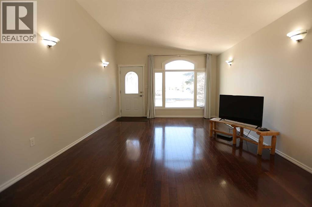 This solely owned 2 bedroom 2 bathroom barrier-free bungalow was built with accessibility and quality care in mind! Located in the heart of Consort, the convenience of location offers quick access to the local community centre, shopping, Gem Centre, and so much more. The value of craftsmanship can be found throughout the quality updates throughout, including- ICF construction, soundproofing, and energy efficiency. The thoughtful design was created with mobility and open-concept living in mind, with spacious 36 inch entries, stable walk ways, and an abundance of storage. Upon entry, you are greeted with vaulted ceilings, bright natural lighting, and the continuity of pleasing aesthetics, such as freshly painted walls. The living area showcases a large window, durable hardwood floors, and plenty of space for furniture. The kitchen offers a functional flow with an eat-in bar, full appliances, and pantry. The dining area can hold a sizeable table and offers direct access to the 10'x24' deck, with full metal railings. The primary suite is a private retreat, offering a walk-in closet and a well-appointed ensuite with an easy-access shower and built-in bench. A second bedroom and full bath provide flexibility for guests, family, or a home office. The home finishes with a full storage room, walk-in laundry that fit side by side laundry, and concrete crawl space. Outside, the fully fenced yard has been manicured with mature landscape, a 16' raised garden bed, and decorative front garden bed. Other perks include an extended dyed concrete driveway, large shed, and exterior outlets. Pride of ownership is evident throughout the property, and suitable for anyone looking for a move-in ready home! (id:53676)