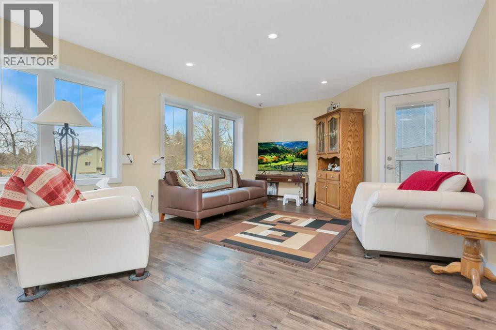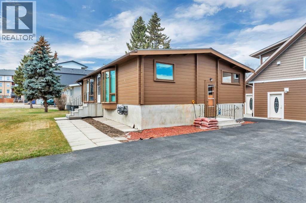 Situated on a spacious 9,750 sq/ft lot in the desirable West Village neighbourhood of Sylvan Lake, this unique property offers exceptional versatility and charm. The 1,208 sq/ft 1971 “log kit” bungalow is paired with a newer (2016) 921 sq/ft triple garage topped by a 1,104 sq/ft legal suite. The bungalow features two bedrooms plus an office with a closet, easily convertible back into a third bedroom. Warm log interior walls create a cozy, rustic ambiance throughout. Recent upgrades include a renovated main floor bathroom, new laminate flooring, and a new dishwasher. The largely undeveloped basement adds even more value, with a newly added bathroom and 1,062 sq/ft of potential additional living space. The garage is thoughtfully designed with a spacious entry, two separate parking areas—including a tandem drive-through bay—and a 7' x 13' storage room with its own garage door. The main level also includes a convenient half bath, mudroom, generous foyer, and laundry area. Upgrades include in floor heat provided by boiler system and reinforced concrete throughout. Above the garage, the bright and spacious one-bedroom legal suite features a den, ensuite bath, and abundant natural light. Exterior blind system controls heat and cold. Step out onto the private balcony to take in beautiful Sylvan Lake sunsets. With ample parking—including a double paved front driveway, drive-through garage access, and rear parking for four vehicles—this property is as practical as it is appealing. Mature landscaping enhances the setting, and the location is unbeatable: just 700 feet to the lakeshore at Lakefront Park or 700 feet to the golf course. Whether you’re looking for a summer retreat, income-generating property, or full-time residence, this home offers outstanding potential. Enjoy everything Sylvan Lake has to offer, year-round. (id:53676)