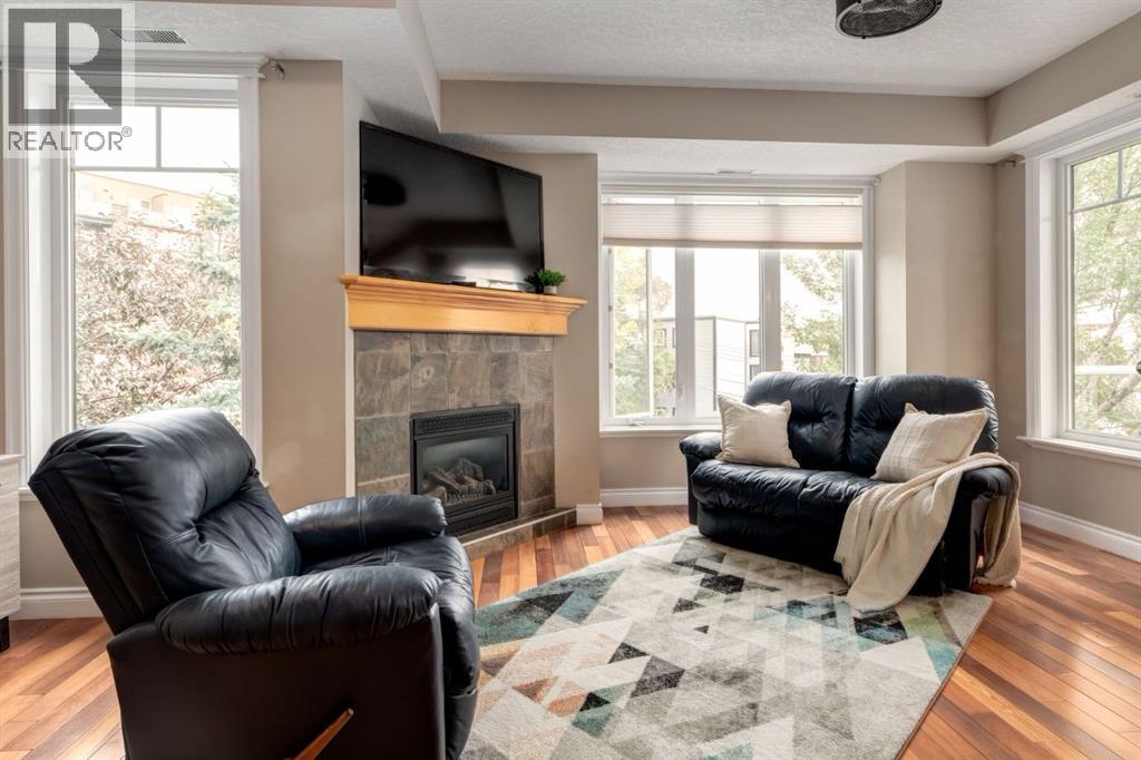 Discover the charm of Bridgeland living with this stylish upper-level townhome, perfectly suited for those who want convenience, comfort, and character all in one. Nestled on a quiet street just steps from some of Calgary’s best local cafés, restaurants, shops, and parks, this home puts the entire city at your doorstep.Inside, you’ll find two spacious bedrooms and two bathrooms, including a bright primary retreat with a 4-piece ensuite. The second bedroom comes complete with a Murphy bed, making it the ideal flex space for guests or a home office. The open-concept design creates a naturally bright and welcoming atmosphere—whether you’re enjoying a cozy night in by the gas fireplace or hosting friends on the balcony.Stylish finishes like granite counters, hardwood floors, and stainless steel appliances elevate the kitchen and living space, while in-suite laundry adds convenience. Heated underground parking and secure storage make city living stress-free. With easy access to downtown, the LRT, and the Bow River pathways, this townhome blends urban lifestyle with everyday comfort. (id:53676)