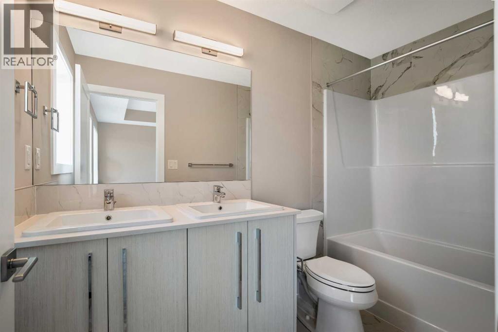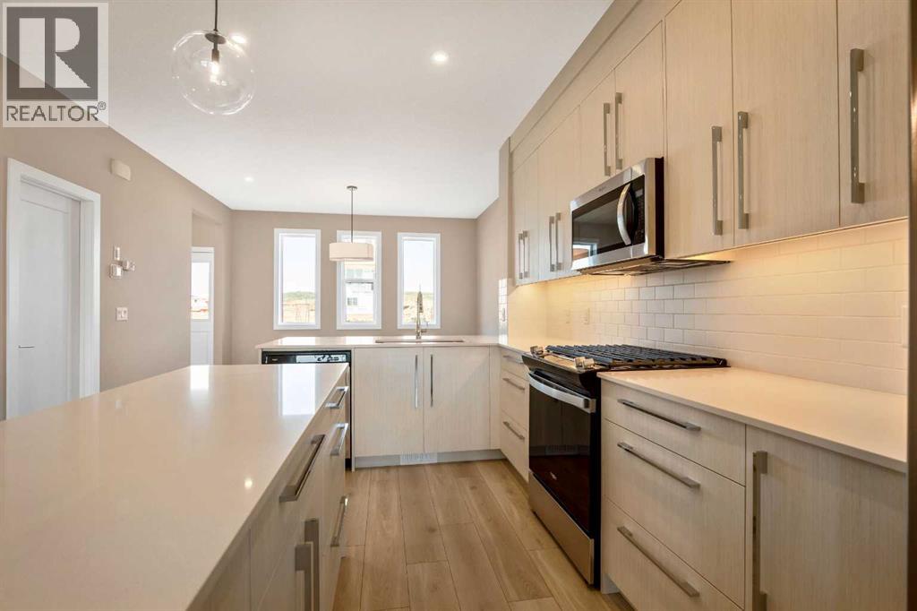 Located in the up-and-coming community of Creekstone in Pine Creek, this stylish half duplex combines modern living with smart investment potential. The property includes a fully legal 1-bedroom basement suite, making it an ideal choice for rental income or extended family living.The main home spans two levels and offers a thoughtfully designed layout featuring 3 bedrooms, 2.5 bathrooms, and both a family room and a bonus room. The heart of the home is a contemporary kitchen with upscale finishes including a gas range, stone countertops, and ceiling-height, soft-close cabinetry. A large dining area, mudroom, and powder room complete the main floor.Upstairs, the primary suite is a true retreat with a walk-in closet, and an elegant ensuite that boasts a deep soaker tub. Two additional bedrooms, a full bath, and upstairs laundry offer both function and flexibility. Downstairs, the legal suite impresses with 9’ ceilings, big windows, and premium touches like designer tile, wide plank flooring, and LED pot lighting. Upper unit will be vacant as of November 1, lower unit is rented with longterm tenants until July 2026. Surrounded by natural green spaces and future amenities, such as a school within walking distance. This home is a great opportunity to have a secured mortgage helper in the basement, or as a turn key rental property. Located in a fast-growing neighborhood in the most sought after SW quadrant in Calgarty! (id:53676)