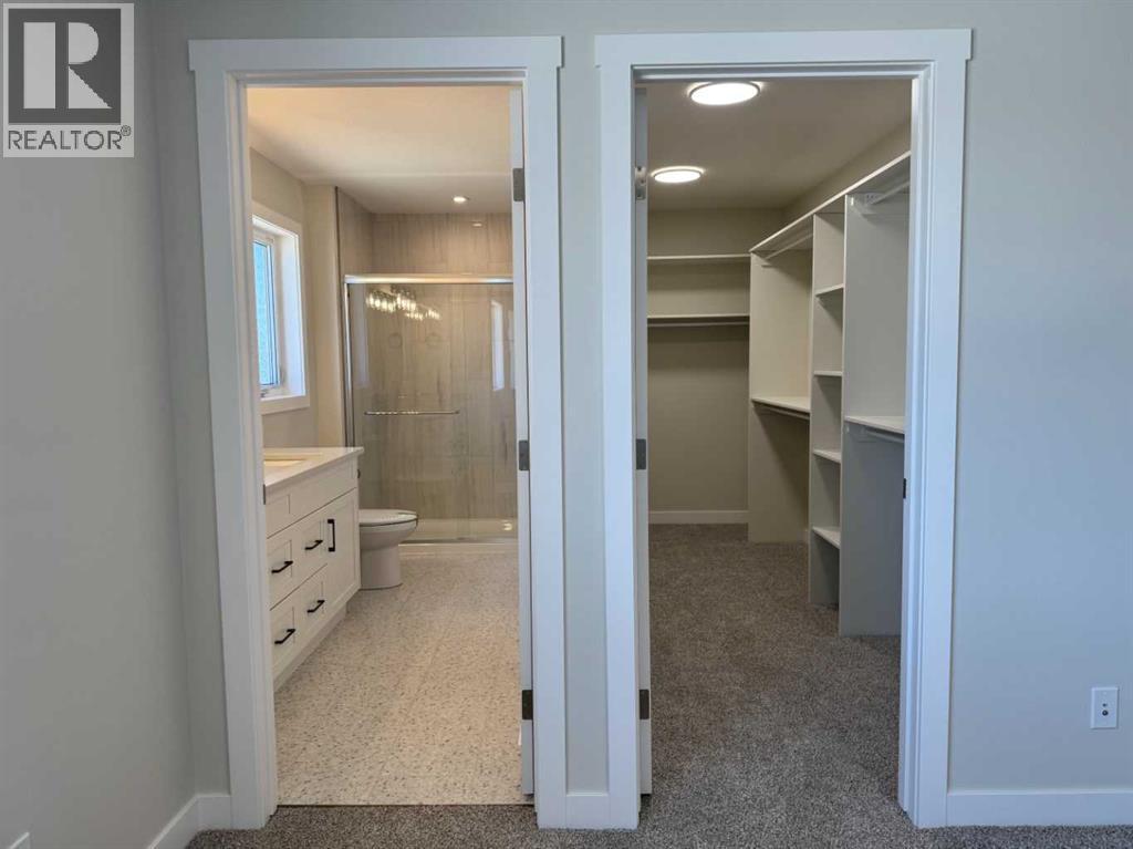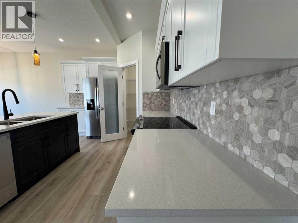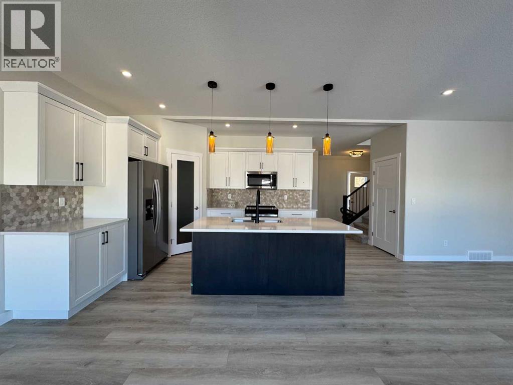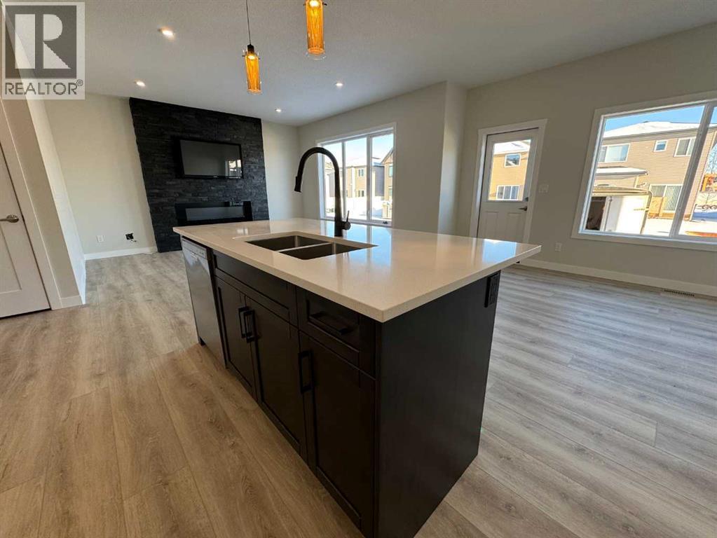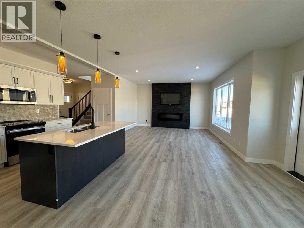 THIS MAGNIFICENT NEW BUILD TWO STOREY WITH AN UPPER LEVEL BONUS ROOM IS SITUATED ON A QUIET STREET IN THE MUCH SOUGHT AFTER AREA OF EVERGREEN, a subdivision that is designed for peace and seclusion with a water feature and an extensive green space for trails, biking and walking! Five minutes from the Riverbend Golf and Recreation Center and equal distance to shopping at Clearview Market Square and Timberlands Market with elementary and high schools close by. Fabulous floor plan and gorgeous finishings with crisp white linen paint throughout! Elegant and spacious entry leading to the rear EAST FACING OPEN PLAN LIVING/DINING/KITCHEN with 9 ft ceilings and luxury vinyl plank flooring throughout! The Chef's Dream Kitchen has white cabinetry/quartz countertops/center island with expresso stained maple cabinetry and breakfast bar/pantry and all stainless steel appliances including fridge with water and a view to the Living Room which has an Electric Fireplace with Floor-To-Ceiling Dark Grey Stone Surround. Directly across from the Kitchen is a good sized Dining Area with garden door access to the 14' x 10' deck with metal railings. There is a convenient MAIN FLOOR LAUNDRY and 2 PCE BATH! The upper level presents the BONUS ROOM, a very spacious Primary Bedroom with a REMARKABLE OVERSIZED WALK IN CLOSET (12'11"x 5'1") and stunning 3 PCE ENSUITE WITH DOUBLE SINKS AND A 5 FT SHOWER WITH FULL TILE SURROUND + two good sized secondary bedrooms and a 4 pce main bath. Quartz countertops in all bathrooms with tile flooring in the 4 pce bath and ensuite. .... Basement is open for development with roughed in underslab heat and roughed in for an additional 4 pce bath. THIS GORGEOUS HOME IS IMMEDIATE POSSESSION! The Annual HOA Fee for the year 2024 was $125 + GST ($131.25)...... The 2025 Annual HOA Fee is set at $130 + gst = $136.50. (id:53676)