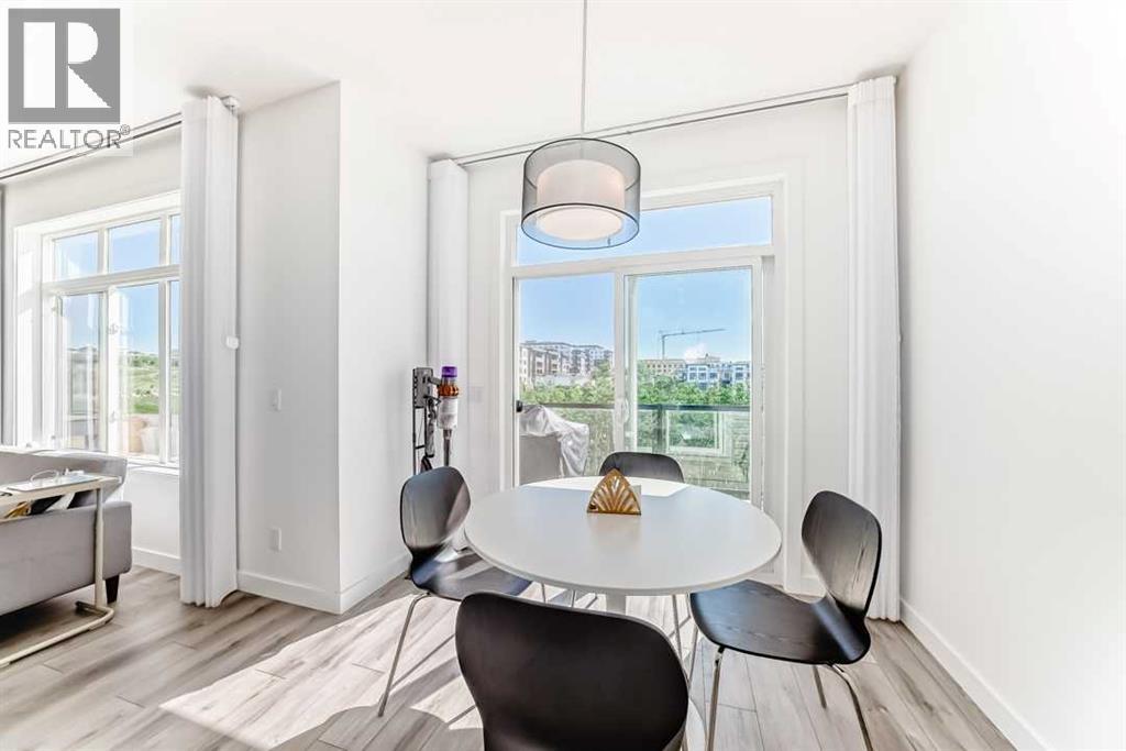 Welcome to Green Space View — a stunning 4-bedroom, 3.5-bath home with a walkout basement in the prestigious Aspen Springs community of Springbank Hill. Built in 2022 and still covered by the New Home Warranty, this thoughtfully designed residence offers nearly 2,000 sq. ft. of total living space and backs directly onto serene green space. Enjoy an east-facing backyard that bathes in the morning sun, creating the perfect setting for coffee on the deck and peaceful starts to your day. The main floor boasts 9 ft ceilings, an elegant white interior palette, luxury vinyl plank flooring, and an open-concept layout ideal for both daily living and entertaining. The gourmet kitchen features crisp white cabinetry, quartz countertops, tiled backsplash, high-end stainless steel appliances including gas cooktop, built-in oven and microwave, extra-wide refrigerator, and a large central island. The bright dining area opens to the upper deck through patio doors, while the spacious living room offers plenty of natural light. A mudroom and 2 pc powder room complete the main level. Upstairs, you’ll find three generously sized bedrooms, a 4-piece main bath, and a convenient laundry room. The serene primary suite is a true retreat, featuring a luxurious 5 pc ensuite with dual sinks, a soaker tub, separate glass shower, and a large walk-in closet. The fully finished walkout basement adds incredible versatility, with a large family/recreation room, a fourth bedroom, and a 3 pc bath, perfect for guests, as a home office or the teenager that wants their privacy. Step outside to your private covered patio and enjoy direct access to the walking path and green space beyond. Attached front drive double garage.. Enjoy the convenience of walking to Aspen Landing Shopping Centre, top tier schools including Rundle College, Webber Academy, and Ambrose University - all within 2.5 km! Dining options just steps away within the complex. Easy access to Westside Rec Centre, multiple golf courses, and ne arby country clubs enhances your active lifestyle. Elegant, modern, and move-in ready, this exceptional townhome truly offers the best of low-maintenance luxury living with nature at your back door and amenities just minutes away. (id:53676)