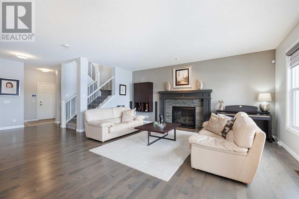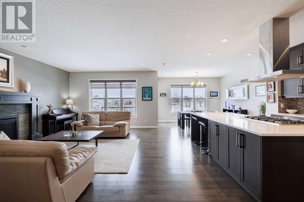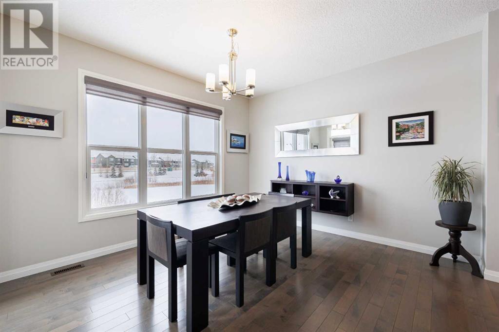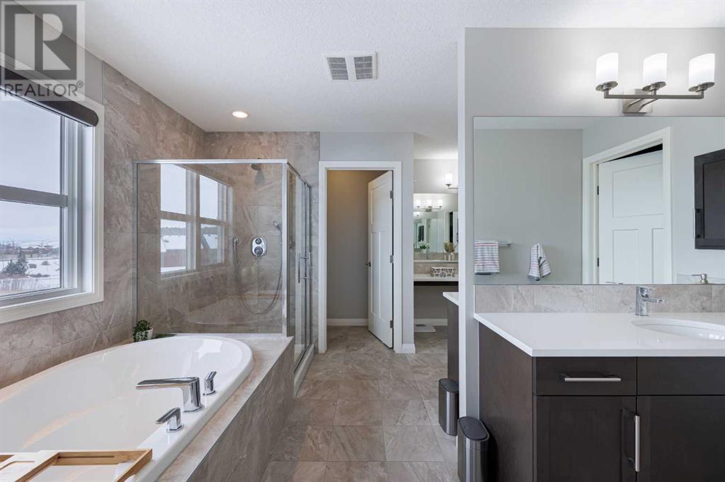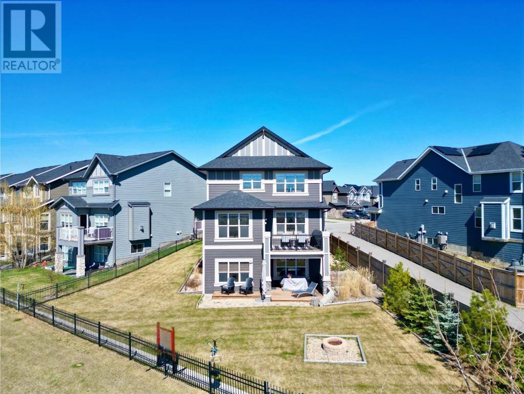 Nestled in the heart of Sunset Ridge, this exquisite home sits on an expansive 6,800 SQFT pie-shaped lot—one of the largest in the area—backing onto serene ponds and picturesque walking paths. Offering a rare blend of privacy and breathtaking scenery, this residence is a true sanctuary, boasting a southwest-facing backyard that captures mesmerizing mountain and sunset views. Upon arrival, the home’s stunning curb appeal is immediately apparent. Yet, it is the rear of the property that truly commands attention. Overlooking vast green spaces, tranquil ponds, and distant peaks, this residence stands apart with its spacious design and strategic placement, offering a level of independence rarely found in similar homes. Inside, elegance meets functionality with 9ft ceilings and numerous upgrades throughout the home. The chef’s kitchen, where a massive quartz-topped island with an eating bar serves as the perfect gathering spot. Stainless steel appliances, a gas cooktop, a generous pantry, and ceiling-height cabinetry elevate the space, while abundant natural light accentuates its sophisticated finishes. Adjacent to the kitchen, the bright and airy eating nook invites you to enjoy meals with a view. Large windows frame the sweeping landscape, and direct access to the back deck makes alfresco dining effortless. The inviting living room is equally captivating, with a stone-surround fireplace and wooden mantle providing warmth and charm. A 2pc powder room and access to the double attached garage complete this main level. Upstairs, the luxurious primary retreat is a masterpiece of comfort and tranquility. This private haven features sweeping mountain views, his-and-her walk-in closets, and a spa-like 5-piece ensuite with dual vanities, a soaking tub, an oversized shower, and a private water closet. Two additional bedrooms, a stylish 4-piece bathroom, an upper-level laundry room, and a versatile sitting area—ideal as a playroom or flex space—complete this thoughtfully designed floor. The fully finished lower level extends the home’s living space with a spacious family room offering walkout access to the lower patio. The massive backyard, a true rarity in the neighbourhood, provides ample space for outdoor entertainment, gardening, and relaxation, all while enjoying the spectacular natural surroundings. A generous additional bedroom, a sleek 3-piece bathroom, and a flexible office or bonus space ensure that this level meets all your family’s needs. Designed for year-round comfort, this home is equipped with air conditioning! Sunset Ridge is one of Cochrane’s most desirable communities, offering an unparalleled lifestyle with scenic pathways, parks, and close proximity to schools, shopping, and amenities. With its expansive lot, breathtaking vistas where you can watch your kids at the park, and meticulously designed interior, this property stands as a true gem in the community—offering an extraordinary blend of luxury, space, and serenity! (id:53676)