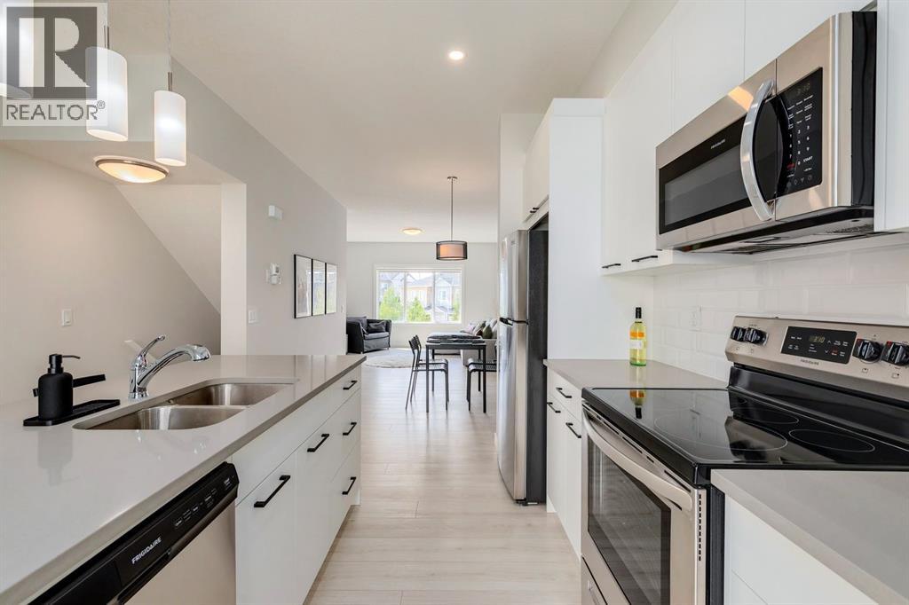 Best value in Canals Crossing! This beautifully maintained townhome, offered for the first time by the original owners, is centrally located in the Canals, close to downtown Airdrie, shopping, schools and endless walking paths. Here is your chance to own an immaculate townhome with one of the best locations in the development. Overlooking park and green-space. Built by Slokker Homes, this modern and stylish townhome is flooded with natural light from both the East and West. The ground floor features a spacious office, perfect for working from home. Upstairs, the main living area is open and functional, showcasing 9-foot ceilings, upgraded flooring. This contemporary kitchen features plenty of cupboard space, stainless steel appliances and large island. The upper level offers a comfortable primary bedroom complete with a 3-piece ensuite and dual closets, as well as a second bedroom and a 4-piece main bathroom. The laundry room is conveniently located on this floor as well. This beautiful home offers exceptional value and is sure to sell fast. Book your showing today! (id:53676)