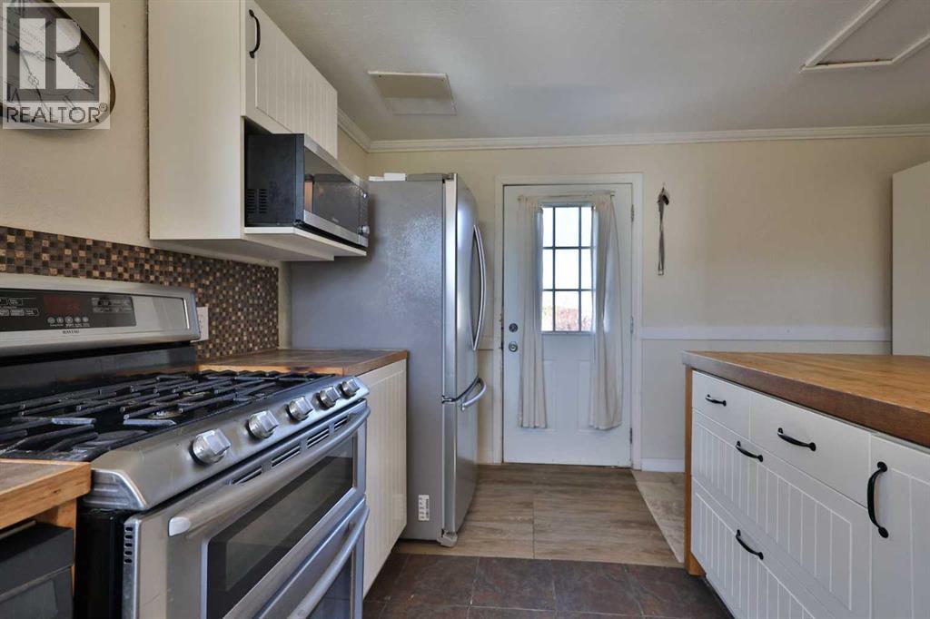 Tucked away on a quiet street on the peaceful west side of Cardston, this charming 3-bedroom, 1.5-bathroom home offers the perfect blend of comfort, space, and functionality! The fully fenced lot features a massive workshop that's a dream for car enthusiasts, hobbyists, or anyone with extra vehicles, plus there's tons of additional off-street parking for trailers, RVs, or guests! Inside, you'll love the bright and open layout with a spacious kitchen that includes stainless steel appliances and a large island — perfect for cooking, gathering, or just enjoying lazy morning breakfasts. The open-concept living and dining area is warmed by a stunning three-way natural gas fireplace, adding both style and cozy ambiance to your living space! Whether you're starting out, settling down, or looking for a place with room to grow and tinker, this westside gem has something for everyone! Call your REALTOR® and book your viewing today! (id:53676)