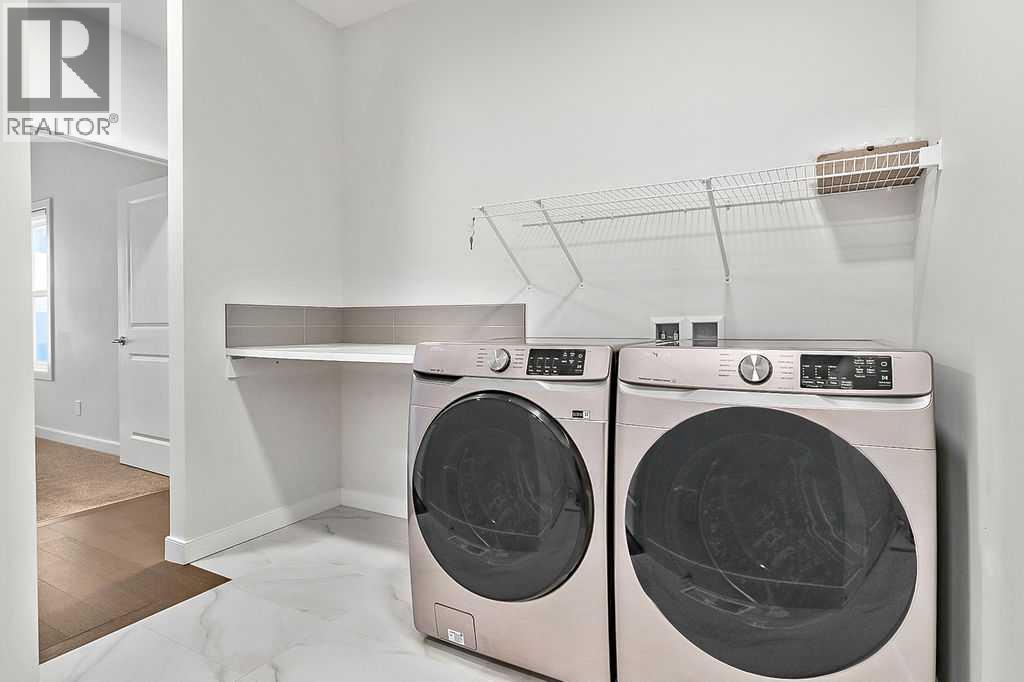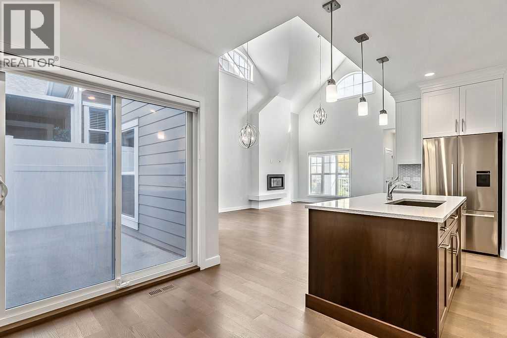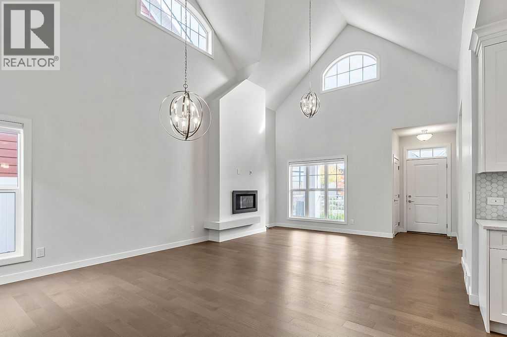 Looking for that perfect bungalow villa? Look no further! Located in the Parkhouses of Drake Landing, this is a stunning home built in the original phase of this complex by Lifestyle Homes. Although built in 2019, the home was not sold and occupied until September of 2022 after the project had gone into receivership. The complex is now complete and this is your chance to get into a stunning unit which shows like new way below the asking price of the new units which start at $715,900. Enter this immaculate home to beautiful hardwood, freshly painted walls, soaring vaulted ceiling, Hunter Douglas Silhouette blinds throughout, and you will think it is brand new! Extremely well taken care of with pride of ownership throughout. Beautiful location looking onto the courtyard with no houses behind. Open layout showcasing a stunning floor to ceiling feature gas fireplace in the living room, large windows with incredible natural light, dining room with access to the huge deck (17'x11') and access to the side yard with an apple tree, shrub, & plenty of space for you to add your personal touches. The chefs dream kitchen is unbelievable! Appliances include the very high end Fisher & Paykel built-in oven, refrigerator, microwave with convection, & cooktop. Rounding out that is the Miele dishwasher plus quartz countertops. Two spice pullouts on each side of the cooktop add to the functionality for the cook in the family! A corner pantry, breakfast nook & large island complete this stunning kitchen. The primary bedroom features a large ensuite with gorgeous o/s shower, 2 sinks, & walk-in closet. Another bedroom is at the front and could be used as an office if desired. The laundry room is large with Samsung appliances and leads to the double attached insulated garage. Lots of storage space & linen closet on the main floor as well. The basement has been left unspoiled for whatever the buyer desires and does include a rough-in bath. The vinyl front porch (15'9"x8'8") overlooks the courtyard and all the wild life that wander through including deer & rabbits. There is also a front garden just below the porch to enjoy and personalize. This is truly a community minded project with a gathering place where residents come together every Friday to visit around the firepit. This is also a great area to enjoy with visiting family & friends. Lots of visitor parking provided throughout the complex. A perfect lock & leave if you like to travel with landscaping & snow removal taken care of. Emergency ladders & escape hatches have been added for protection around the window wells and certified safety equipment is in place for safety of the occupants in the shower, etc. All the details taken care of so you can just move in and enjoy this friendly community spirited villa complex. A great opportunity to get in this area at a desirable price point. Close to all amenities including shopping, parks, golf, the incredible pathway system throughout Okotoks, and more. Come view today! (id:53676)