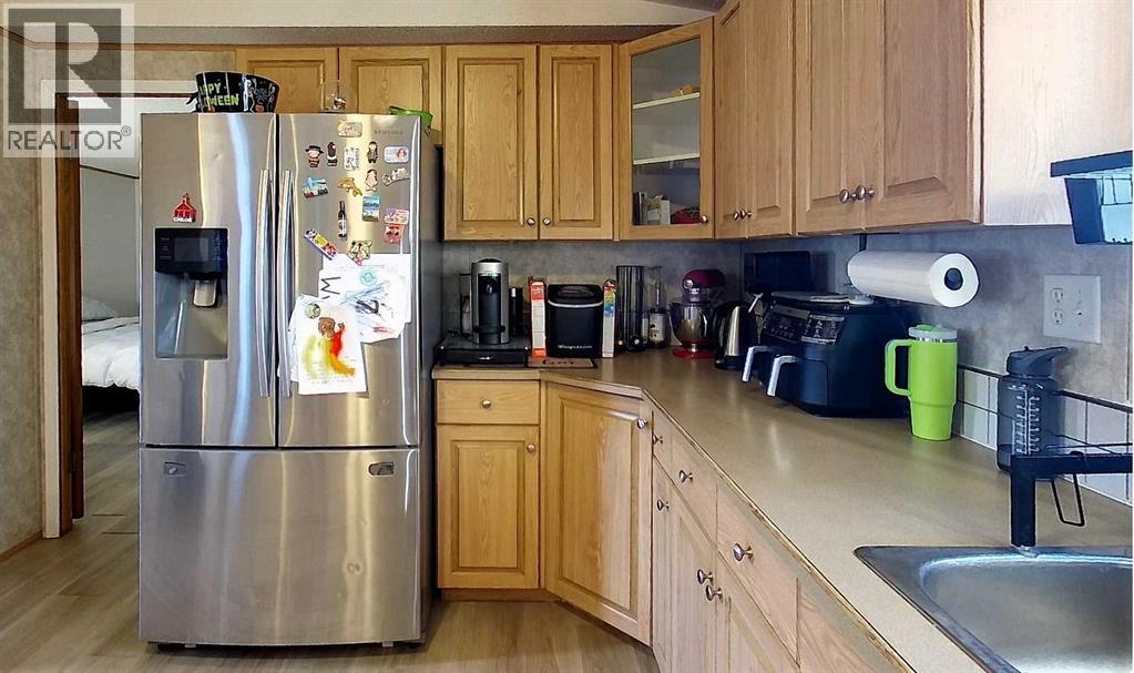 Rare opportunity to own two residences on 149.49 acres of productive, subdividable land just minutes from town, directly off pavement with no road bans. This exceptional property offers an ideal blend of comfortable living, income potential, & a fully developed livestock operation. The original 1.5-storey home features 4 bedrooms & 2 bathrooms, with two bedrooms on the main level & two upstairs. The main floor showcases hardwood flooring in living areas & tile in the kitchen and bathroom, complete with electric in-floor heat and hallway controls. The primary bedroom includes a sliding barn door leading to the bathroom. Upstairs offers newer glue-down LVP flooring in bedrooms and hallway, with a bathroom finished in linoleum. Major upgrades include an on-demand hot water system, forced-air furnace, updated electrical during the 2000 addition, and new shingles and siding (2019). Enjoy the covered front porch with swing, included with the home. A triple detached garage (built 2000) features in-floor heat, three automatic door openers, & an additional concrete pad with in-floor heat lines already installed, offering excellent expansion potential. The second residence is a 2006 modular home with its own power meter & natural gas service. It offers a spacious primary bedroom with ensuite, walk-in closet & jacuzzi tub, plus three additional bedrooms and a full bathroom. Updates include new LVP flooring throughout (2022), a new hot water tank (2022), new oven & range hood (2025), & a newer deck (2024). The mobile has consistently rented for $1,750/month since 2022 & is currently month-to-month, making it an excellent income property. Water infrastructure is extensive and well planned. The home well is approximately 120 ft deep with pressure tank & filtration, while the mobile is serviced by a separate 160 ft well with a 220V pump & VFD constant pressure controller. A seasonal 1.5” HDPE pipeline (nearly one mile) supplies water to 20 paddocks, with 11 strategically placed o utlets. A heated livestock waterer, frost-free hydrant, & fenced-off natural water source further enhance the operation. The land consists of approximately 150 acres of tame pasture, high-tensile electric fencing, a one-mile alleyway for livestock rotation. A stream runs nearly year-round and is fenced to protect water quality. Additional features include an electric powered driveway gate with lighting, multiple outbuildings, a campground area with outhouse near the stream crossing, natural gas servicing the house, mobile, garage, & barn, both septic systems under 20 years old. This is a one-of-a-kind, multi-use property offering residential comfort, agricultural efficiency, rental income! Adjacent 1/4 also available for purchase. (id:53676)