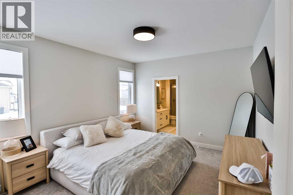 Seller will finish fence, install underground sprinklers, and sod to be fully landscaped! Check out this well designed bi level that is a must see! The main floor features an open floorplan with a lovely kitchen, dining room, half bath and a spacious living room. The kitchen features stainless steel appliances, a corner pantry, a good size island, and quartz countertops too! One of the best parts?! - Your primary bedroom is on the main floor! The primary features a nice size walk in closet, and an ensuite with double sinks, and a walk in shower as well! The laundry room is conveniently located on the main floor. Everything you need is close by! This home just keeps going, and features a second level built just a few stairs up with two bedrooms both with walk in closets, and there is a full four piece bath on this level too. The basement is freshly developed and is very spacious and open with two bedrooms, a huge family room, and another 4 piece bath as well as some great storage space. Outside you'll love the street view, and that the deck is already built for you to enjoy! Extensive concrete upgrades have recently been completed. One of the standout upgrades here is the concrete upgrade! The owners added full concrete along both sides of the home, creating a clean, low maintenance parameter and improved drainage. Out back, a gorgeous stamped concrete pad expands your outdoor living space - ideal for summer BBQ's, cozy evenings, or a future hot tub set up! Riverstone is a highly sought after community, with exceptional schools nearby, and this home is built just a short walk from a playground and park with a pond you can even fish in! Give your REALTOR® a call and come see this fabulous new home today! (id:53676)